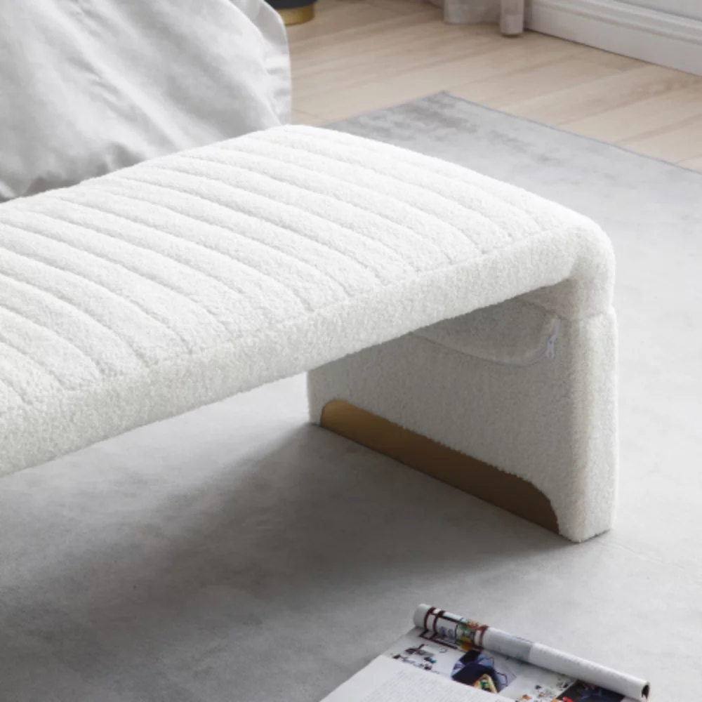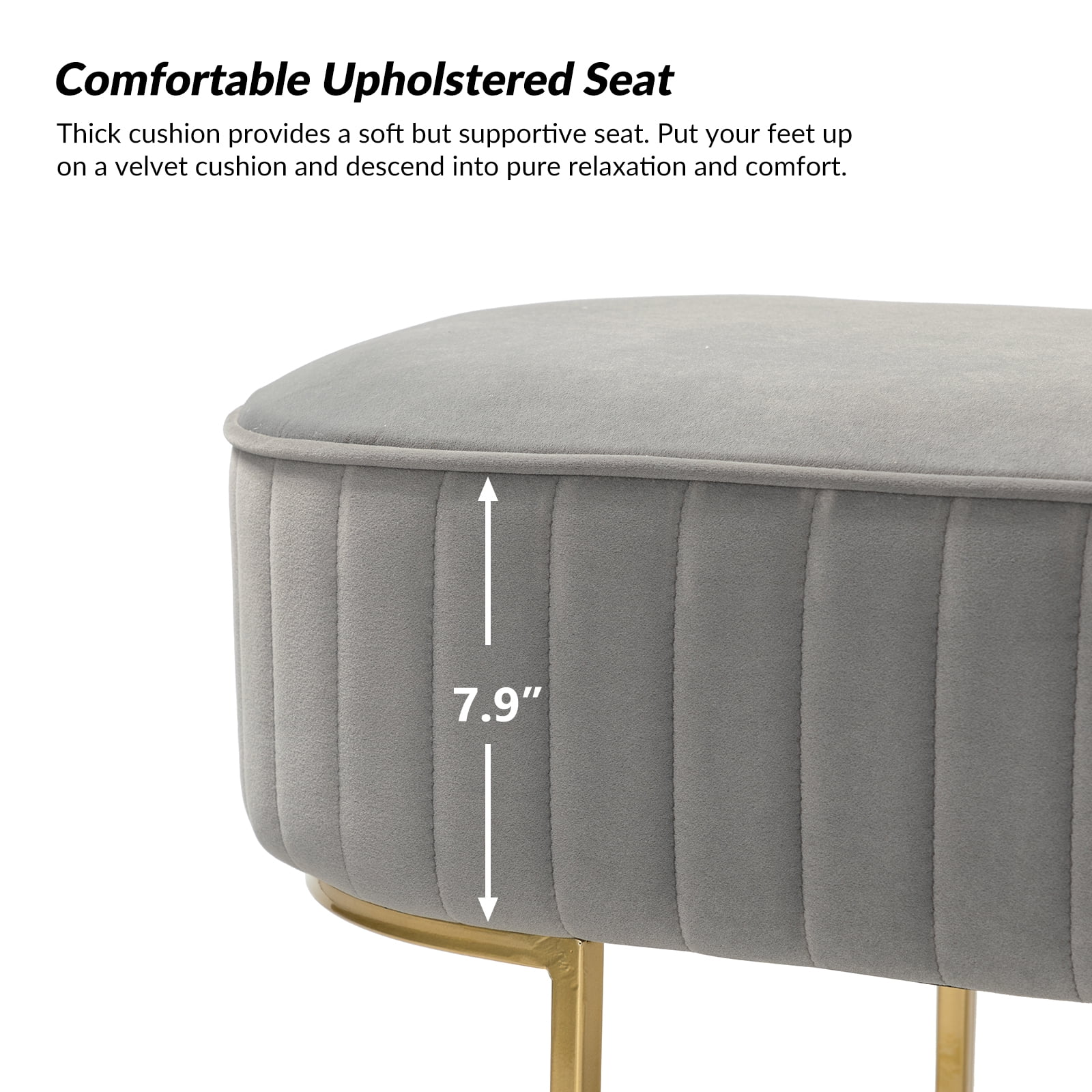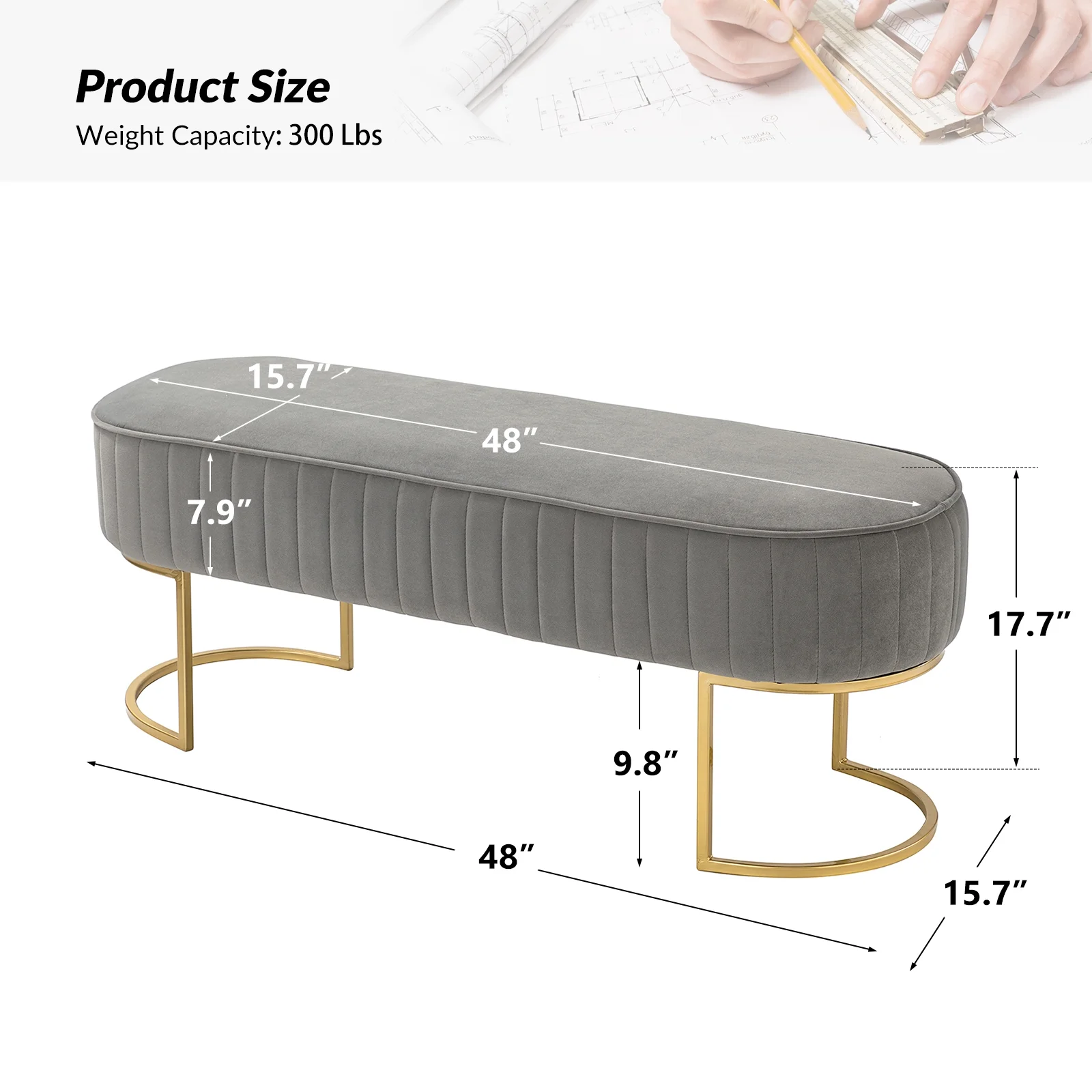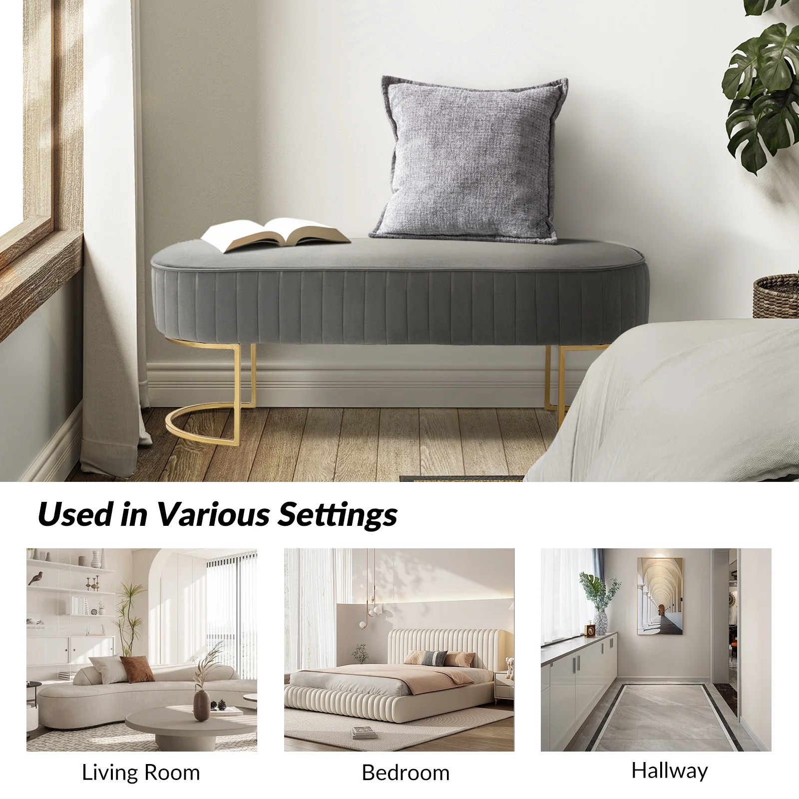 Velvet Upholstered Entryway Bench Bed Foot Stool with Horseshoe-shaped Metal Base Bedroom Grey