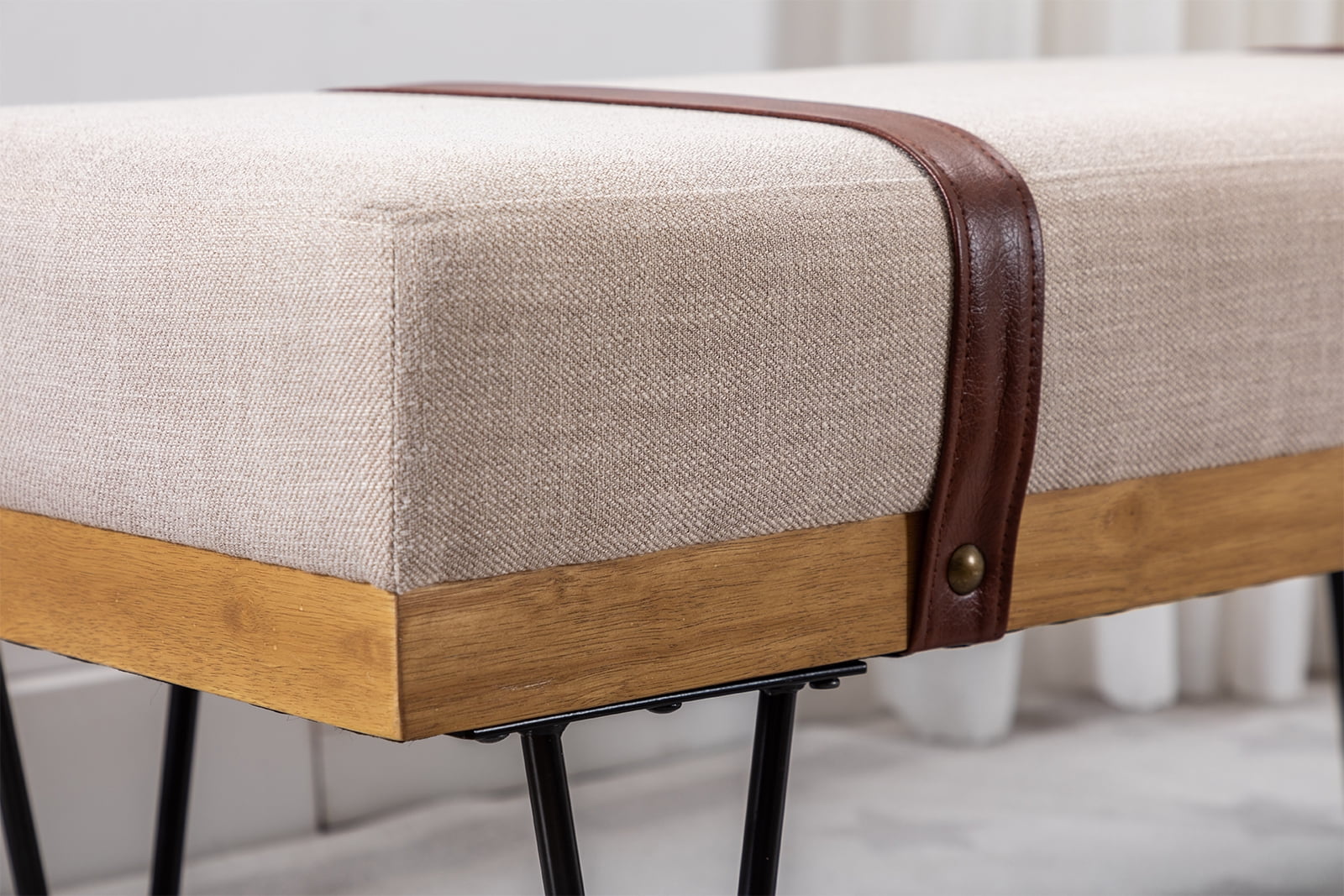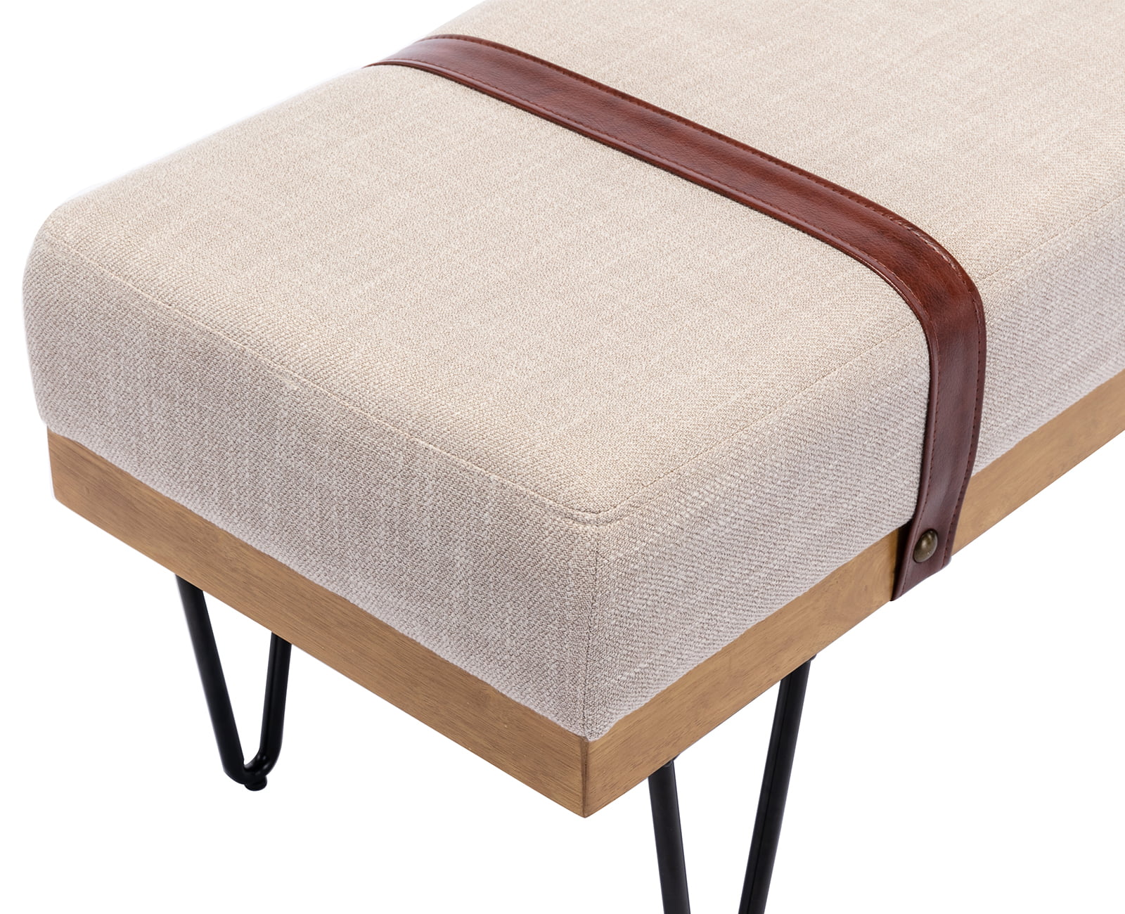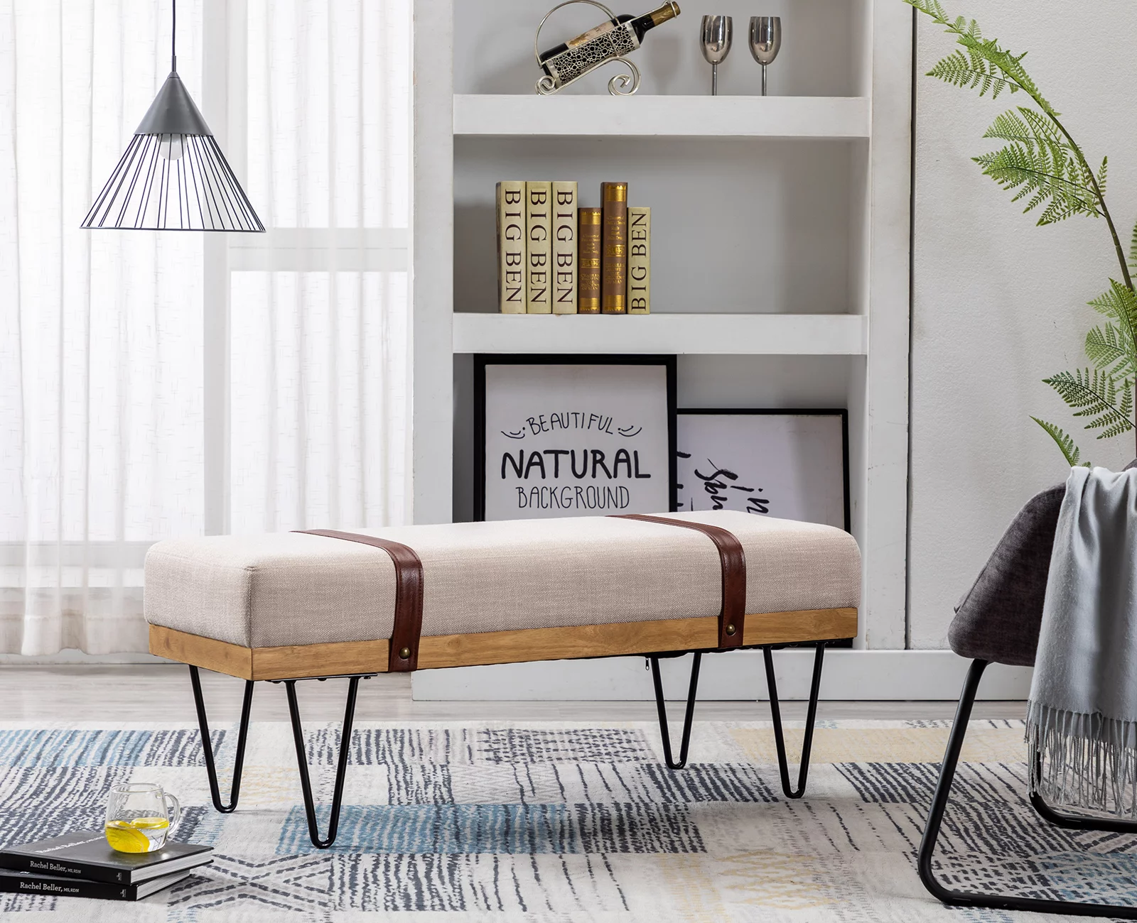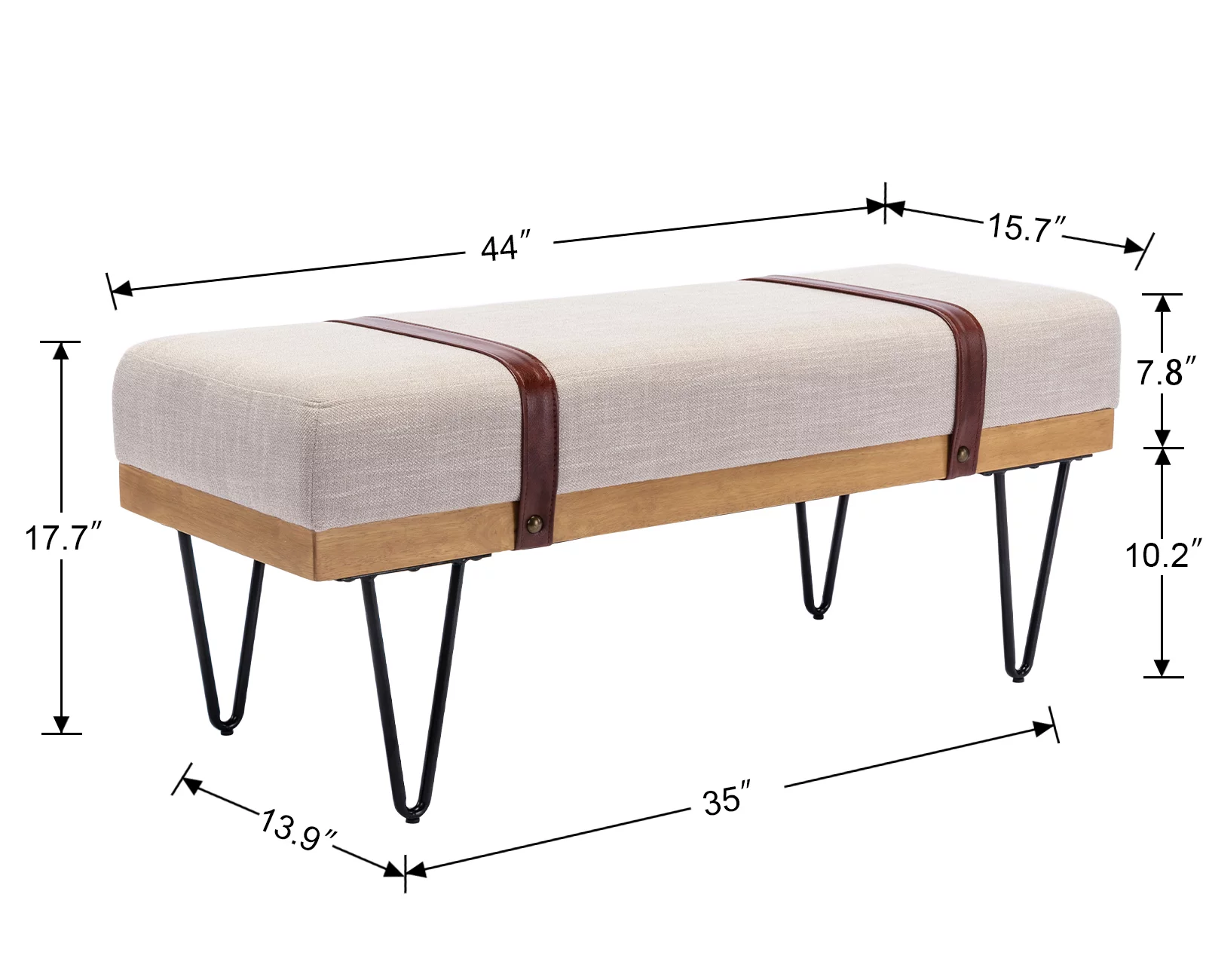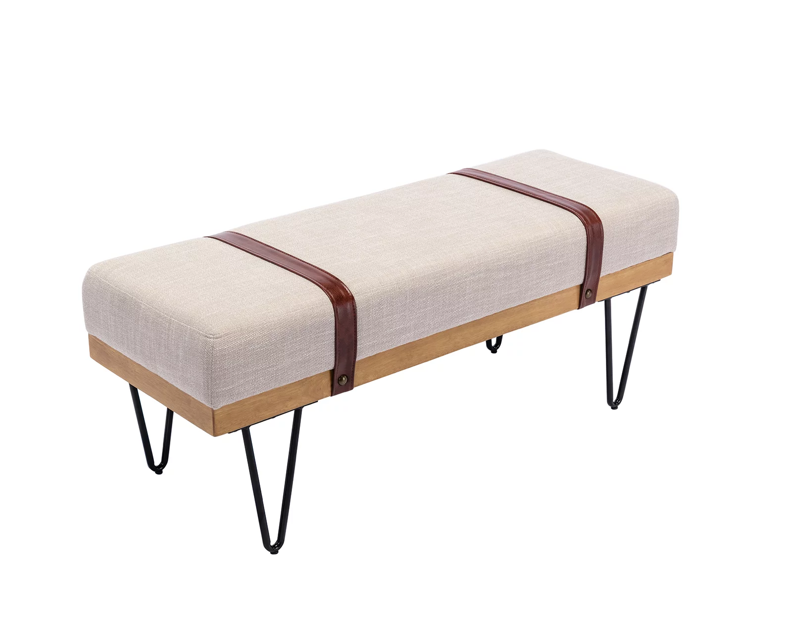 Velvet Upholstered Entryway Bench Bed Foot Stool with Horseshoe-shaped Metal Base Bedroom Grey
