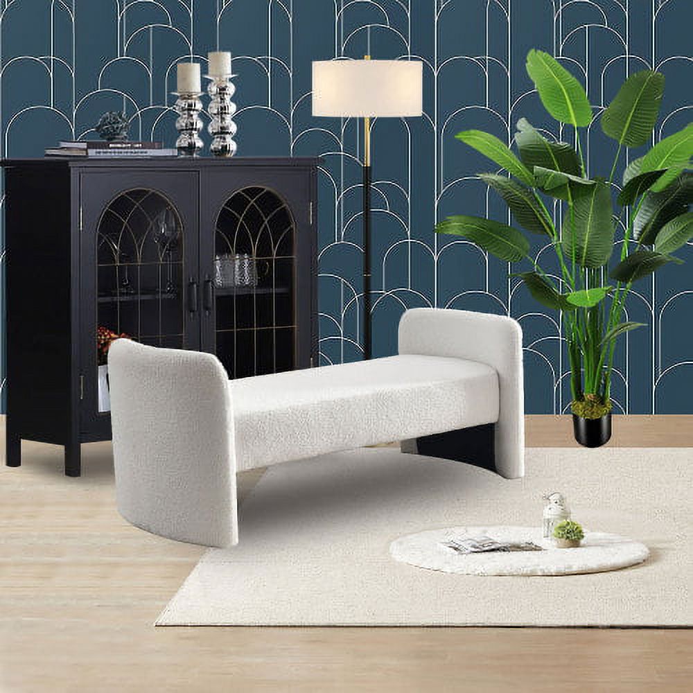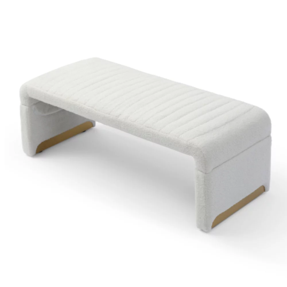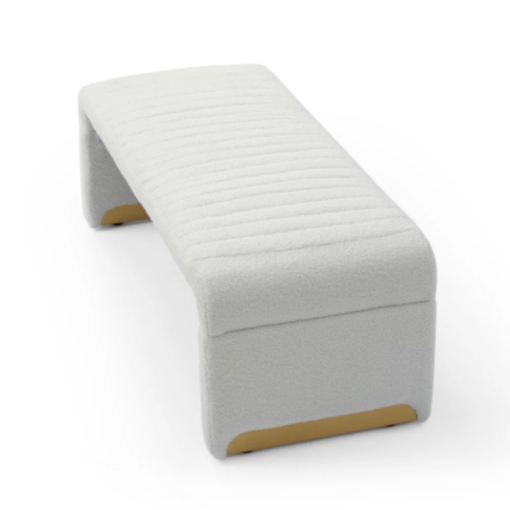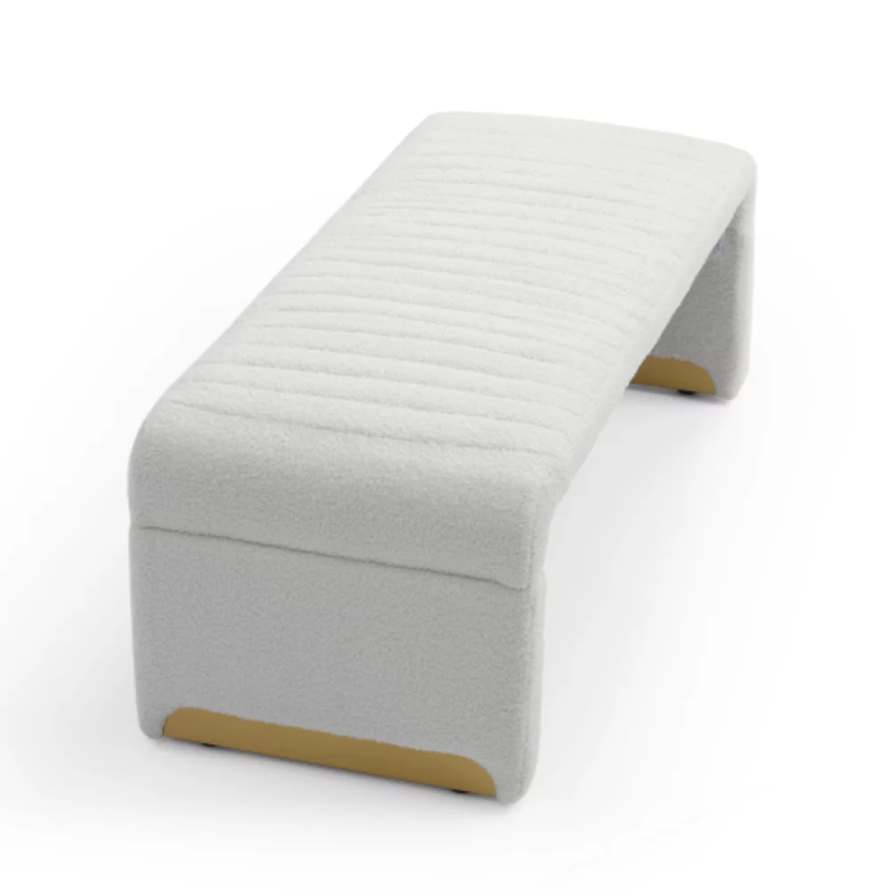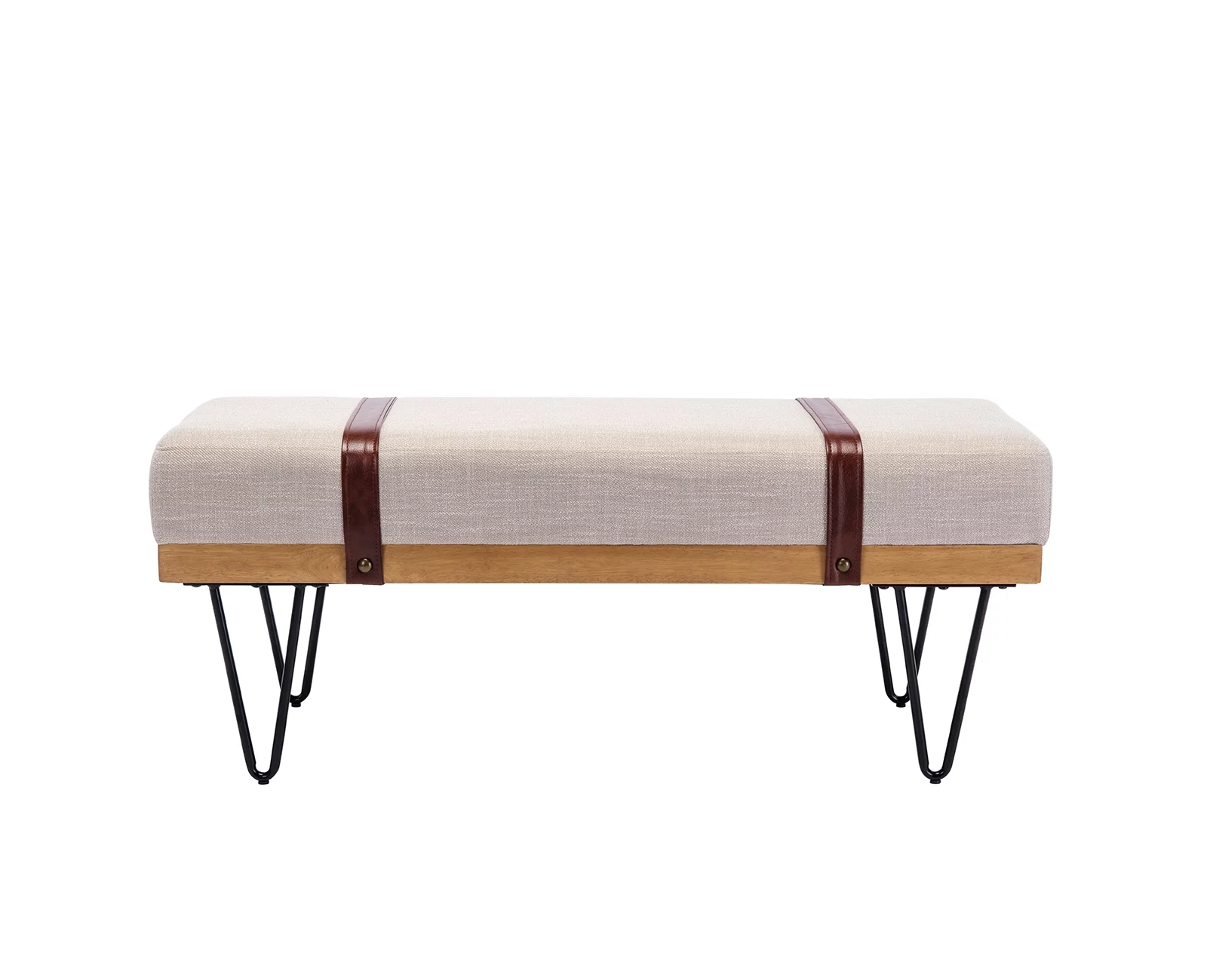 Velvet Upholstered Entryway Bench Bed Foot Stool with Horseshoe-shaped Metal Base Bedroom Grey