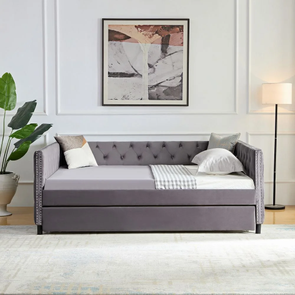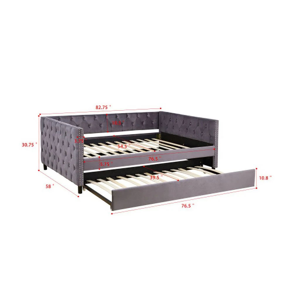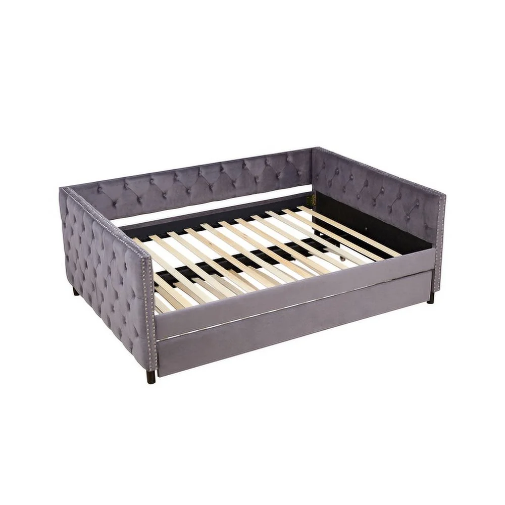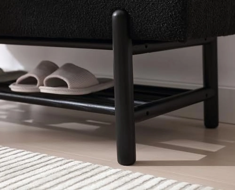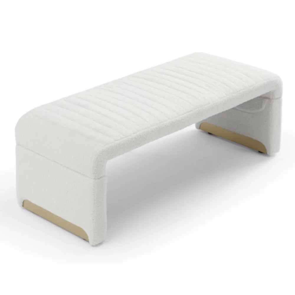 Velvet Upholstered Entryway Bench Bed Foot Stool with Horseshoe-shaped Metal Base Bedroom Grey