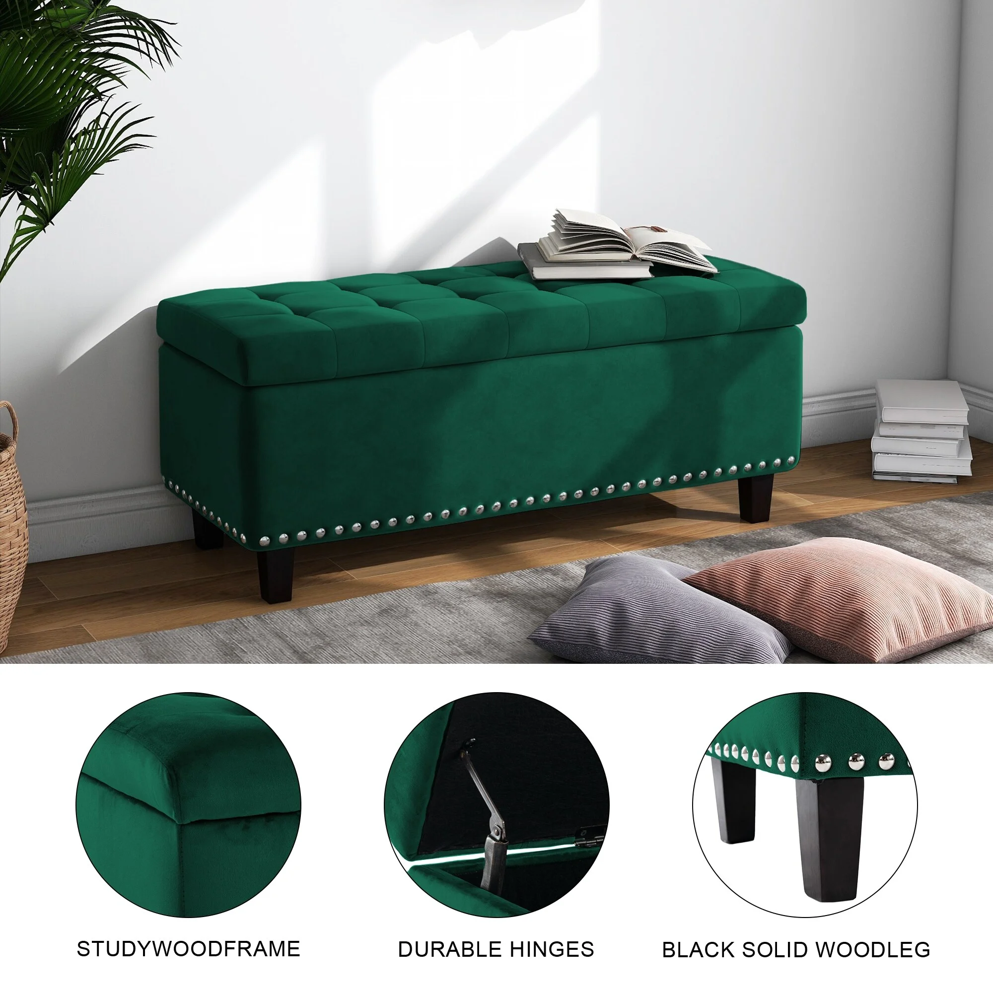 Jerry Guo 41.3" Vevlet Ottoman with Storage End of Bed Bench for Living Room Green