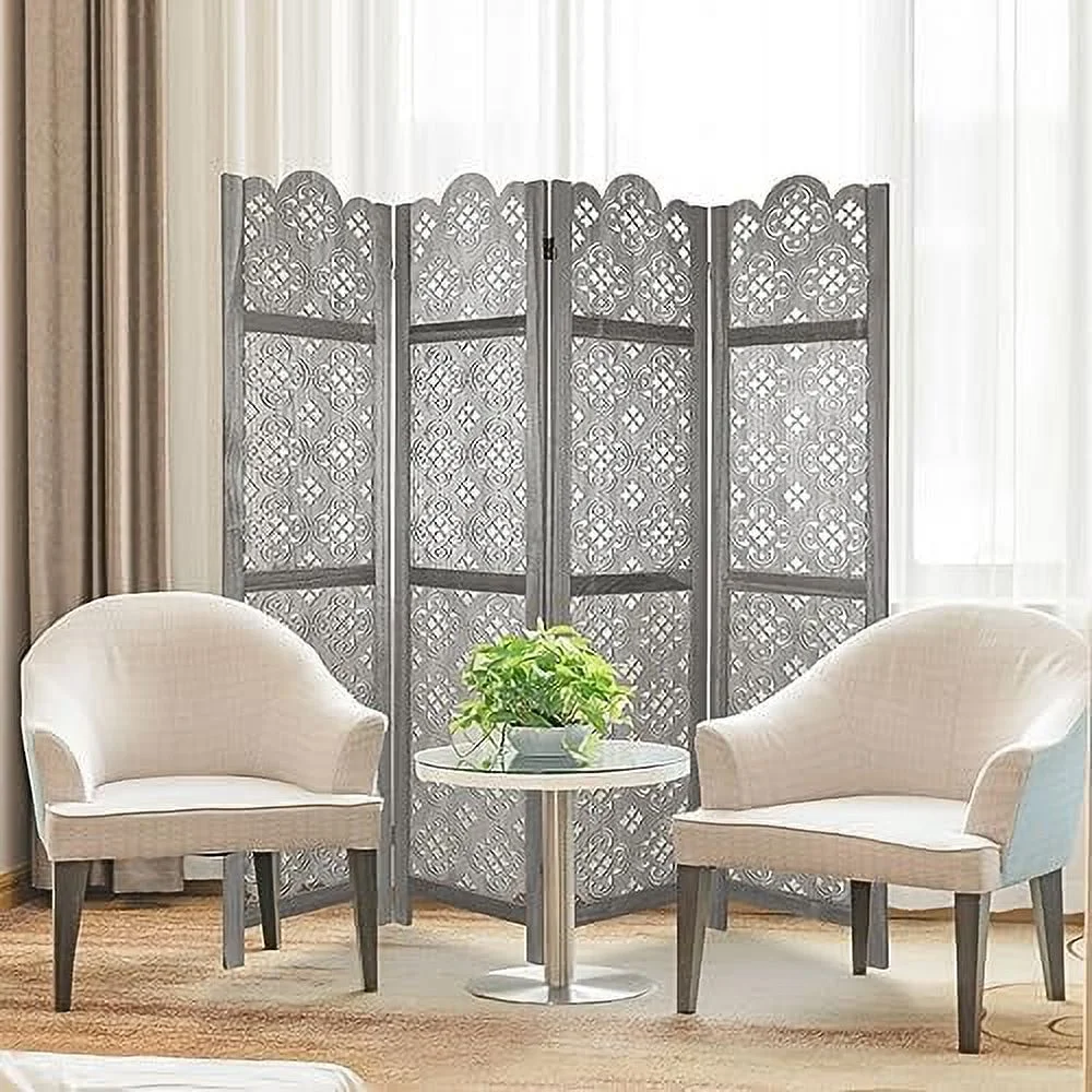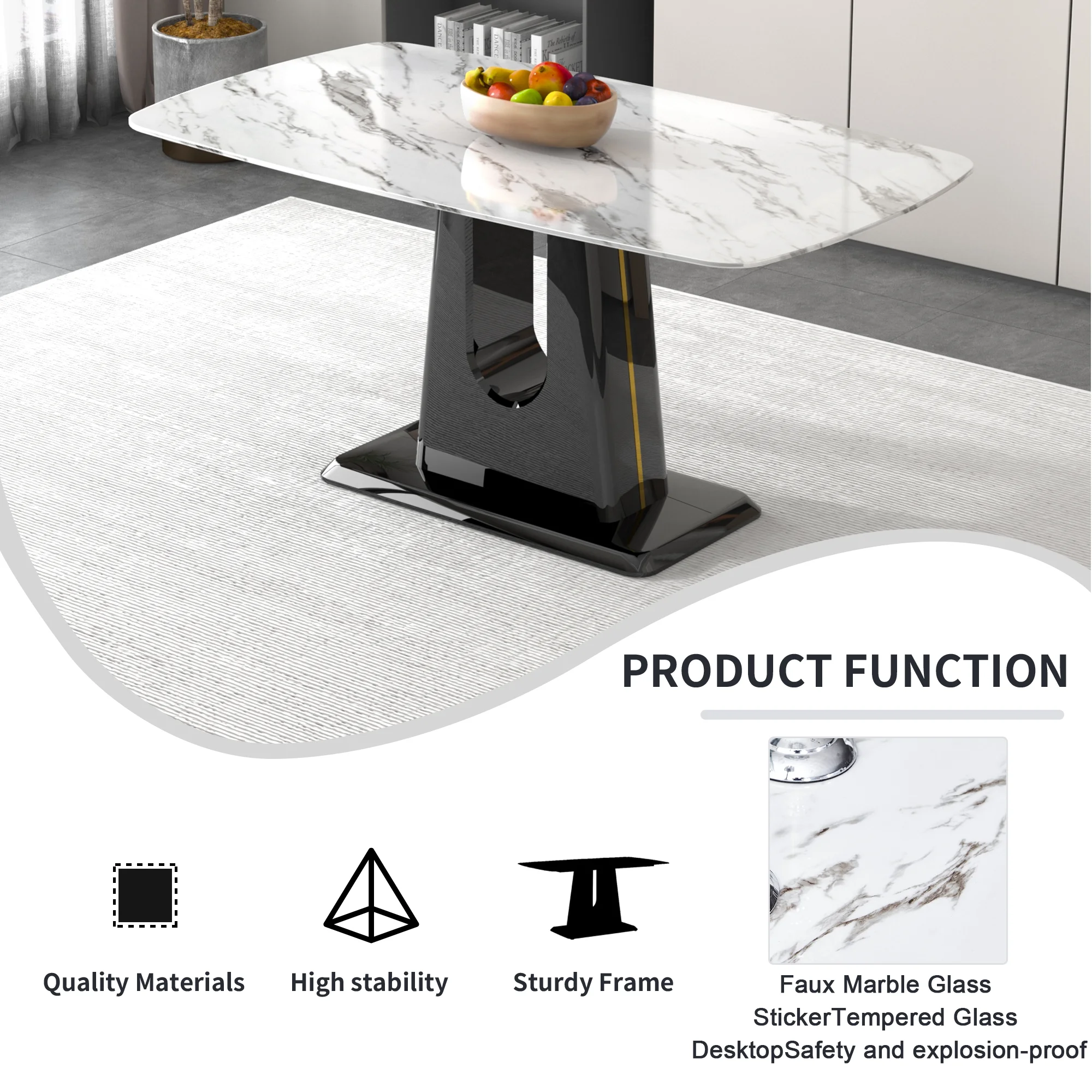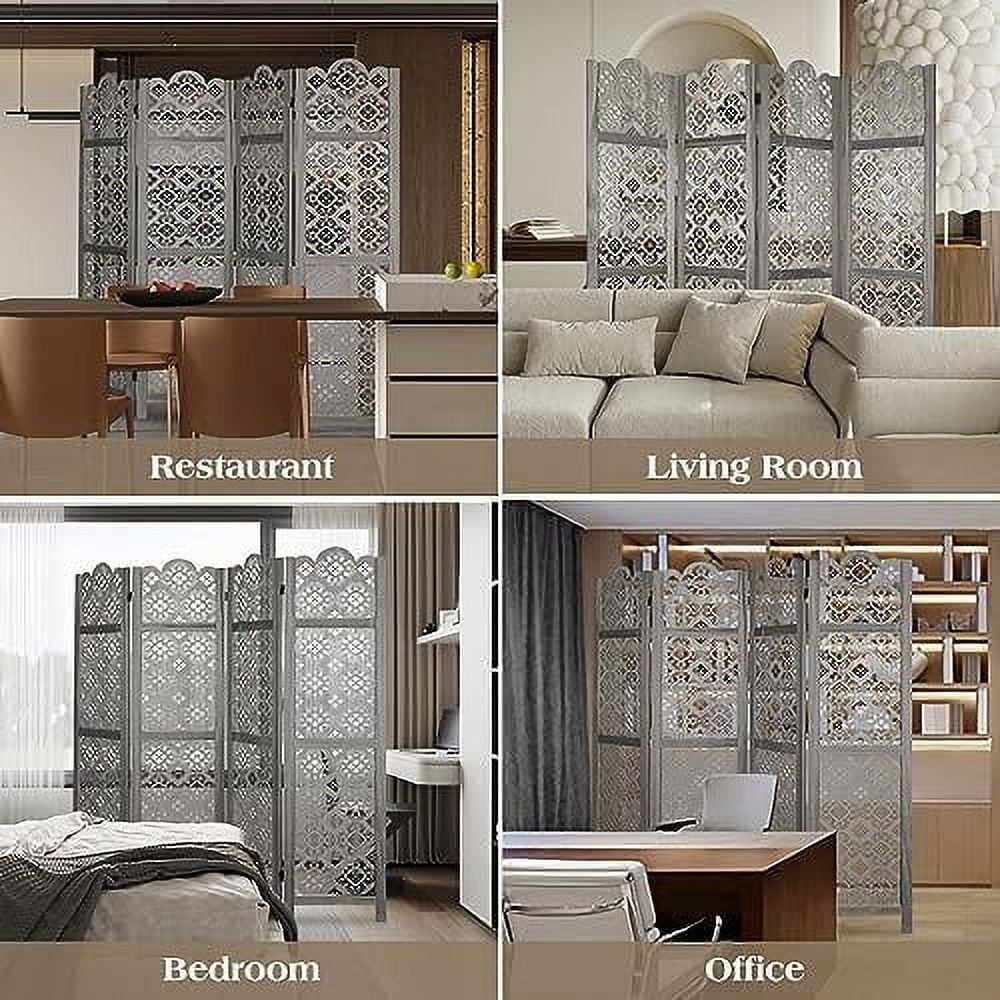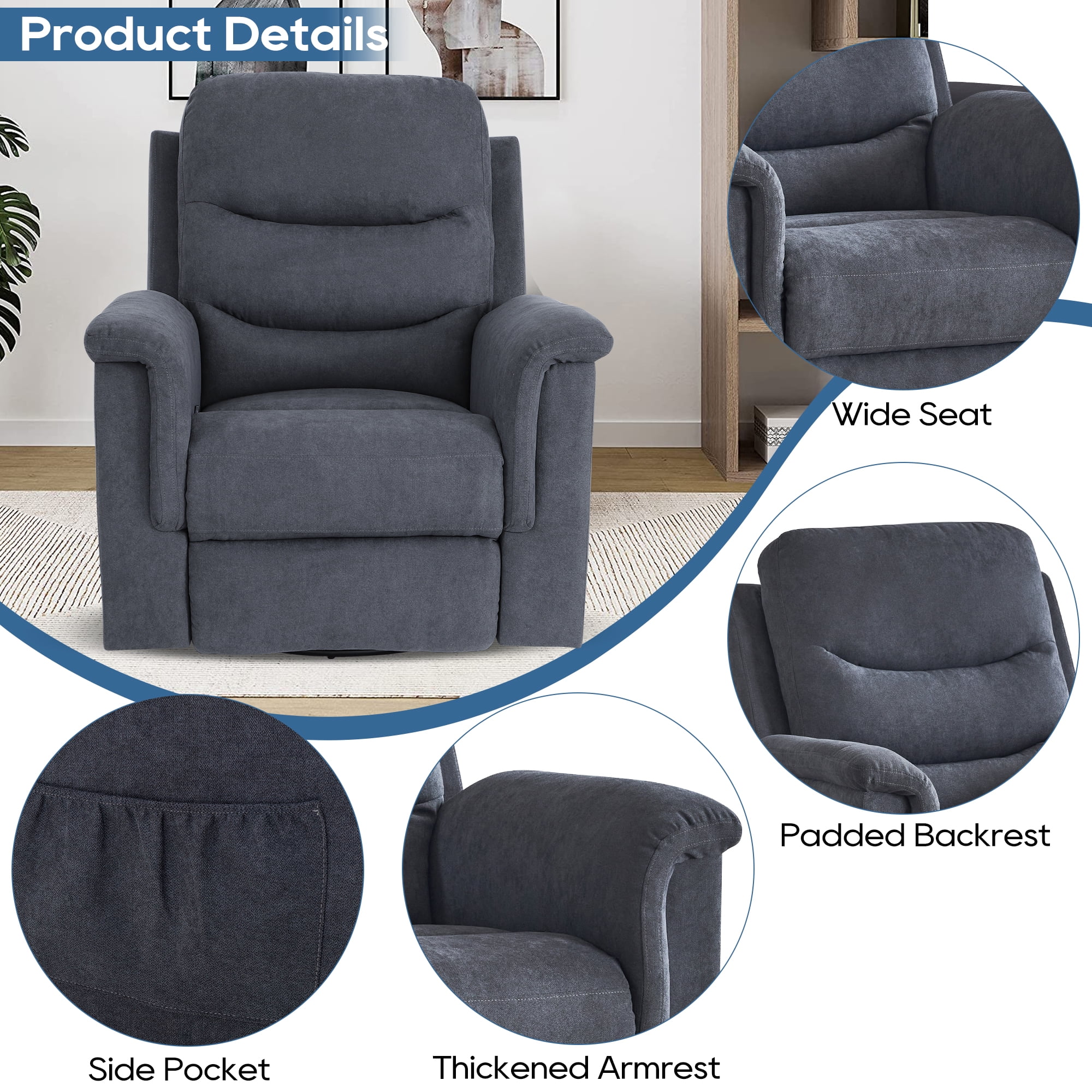 TREXM 5-Piece Retro Round Dining Table Set with Curved Trestle Style Table Legs and 4 Upholstered Chairs for Dining Room (Dark Gray)
