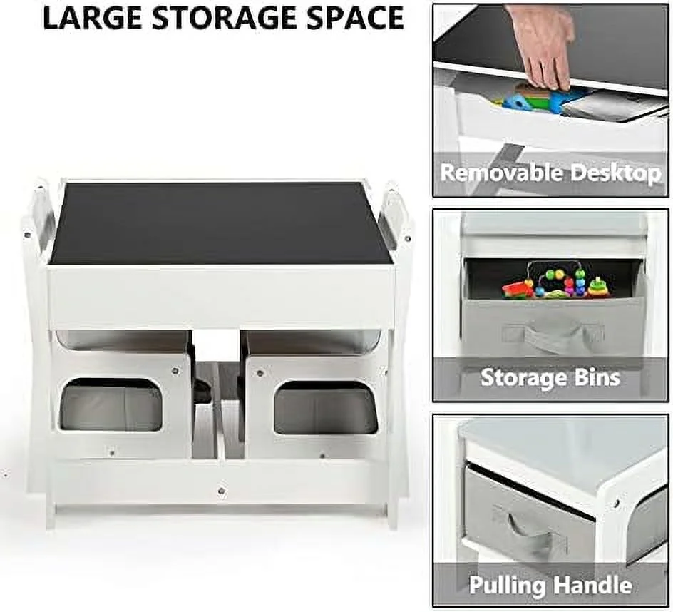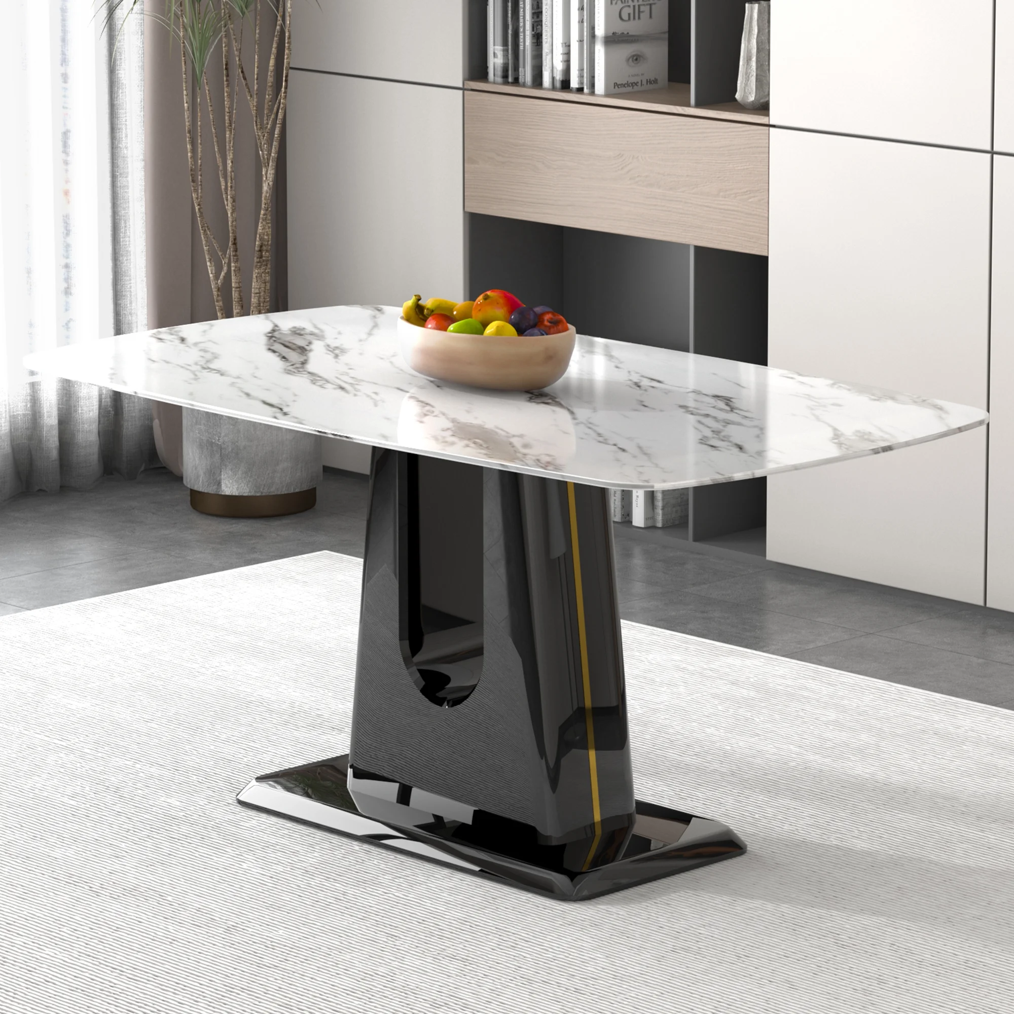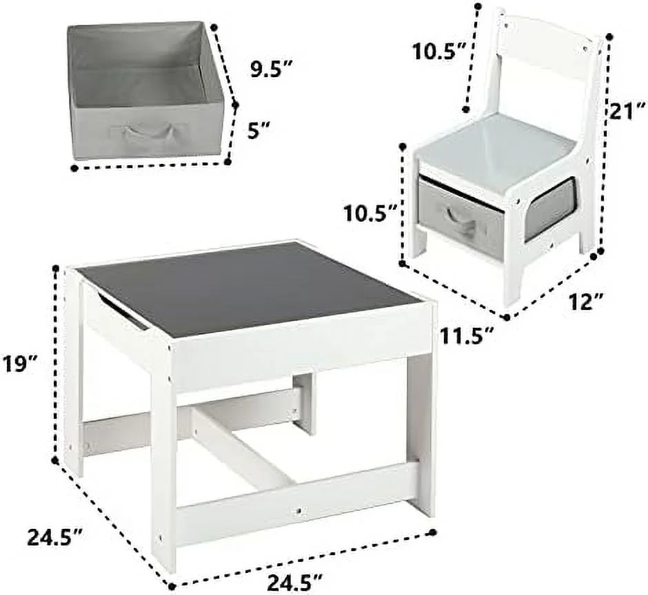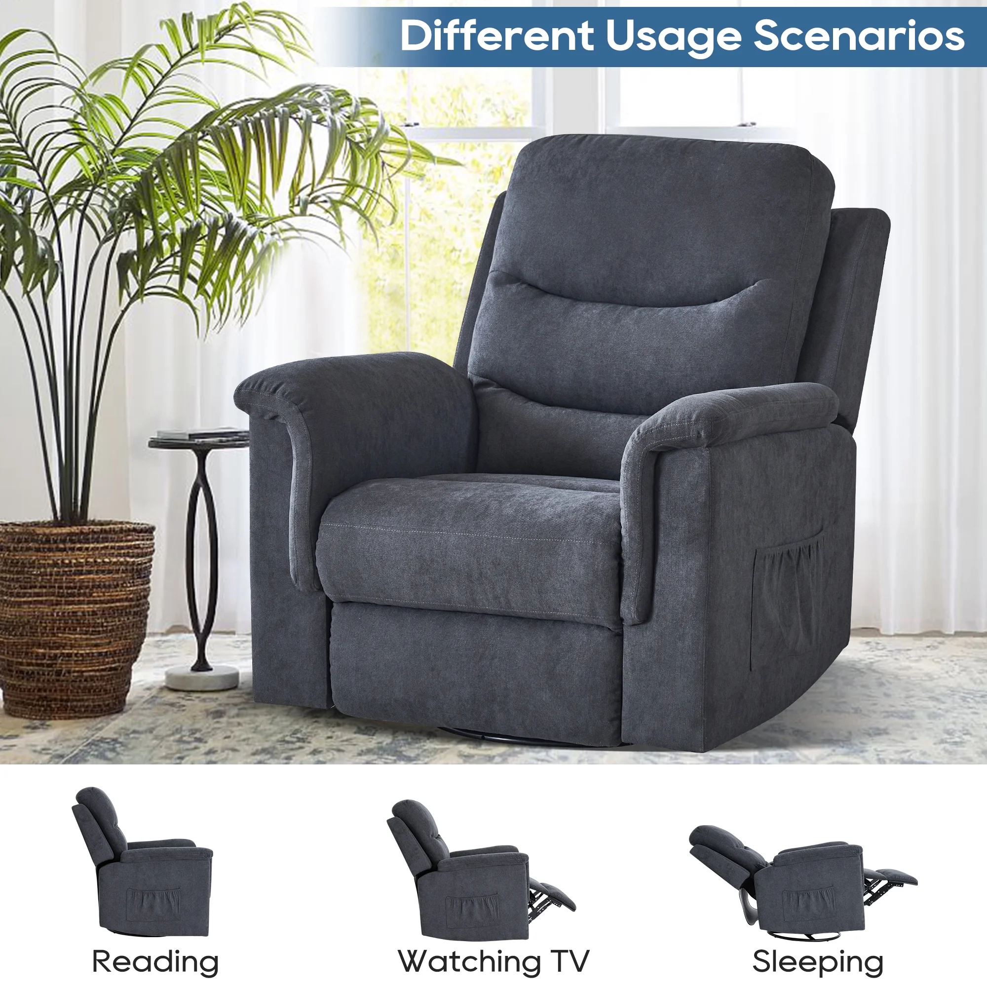 TREXM 5-Piece Retro Round Dining Table Set with Curved Trestle Style Table Legs and 4 Upholstered Chairs for Dining Room (Dark Gray)
