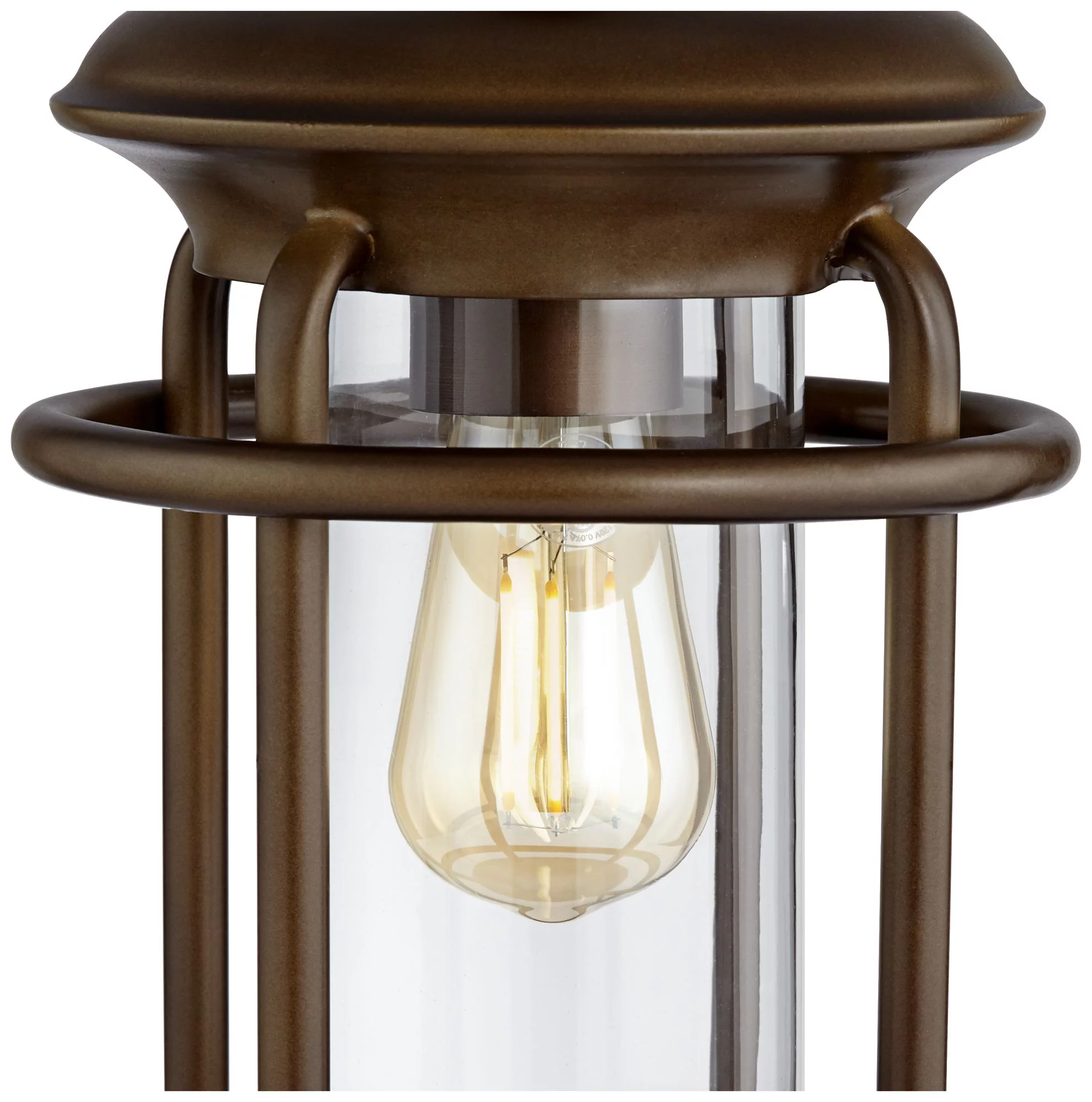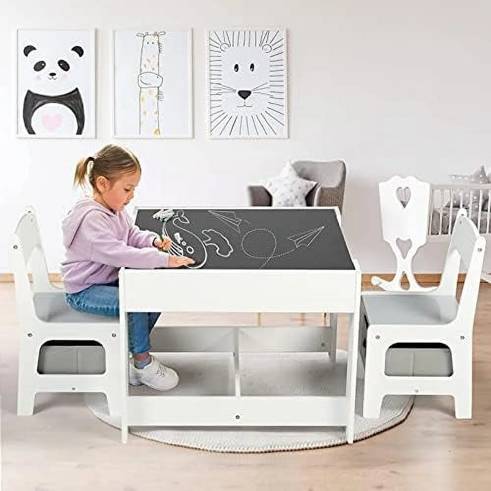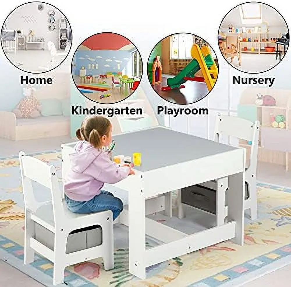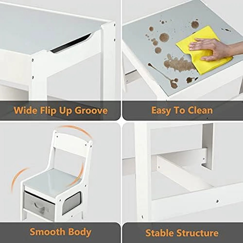 TREXM 5-Piece Retro Round Dining Table Set with Curved Trestle Style Table Legs and 4 Upholstered Chairs for Dining Room (Dark Gray)