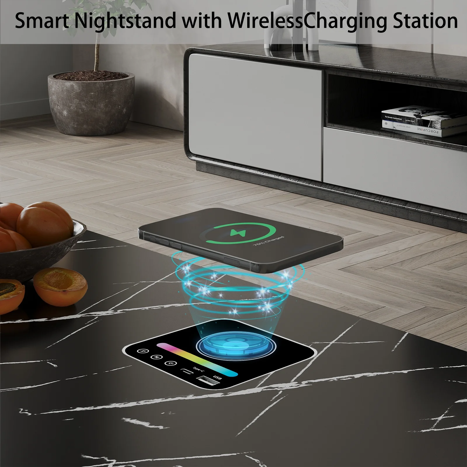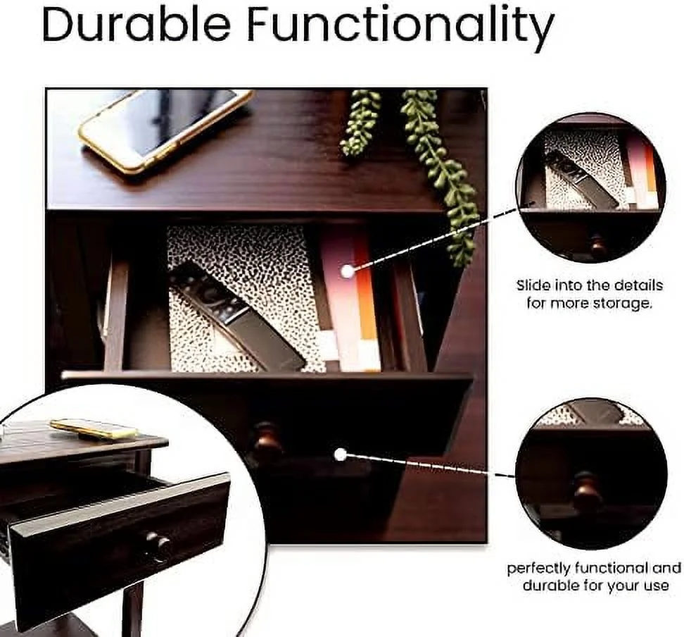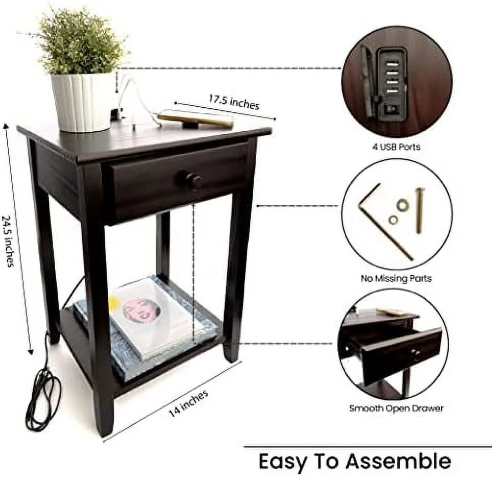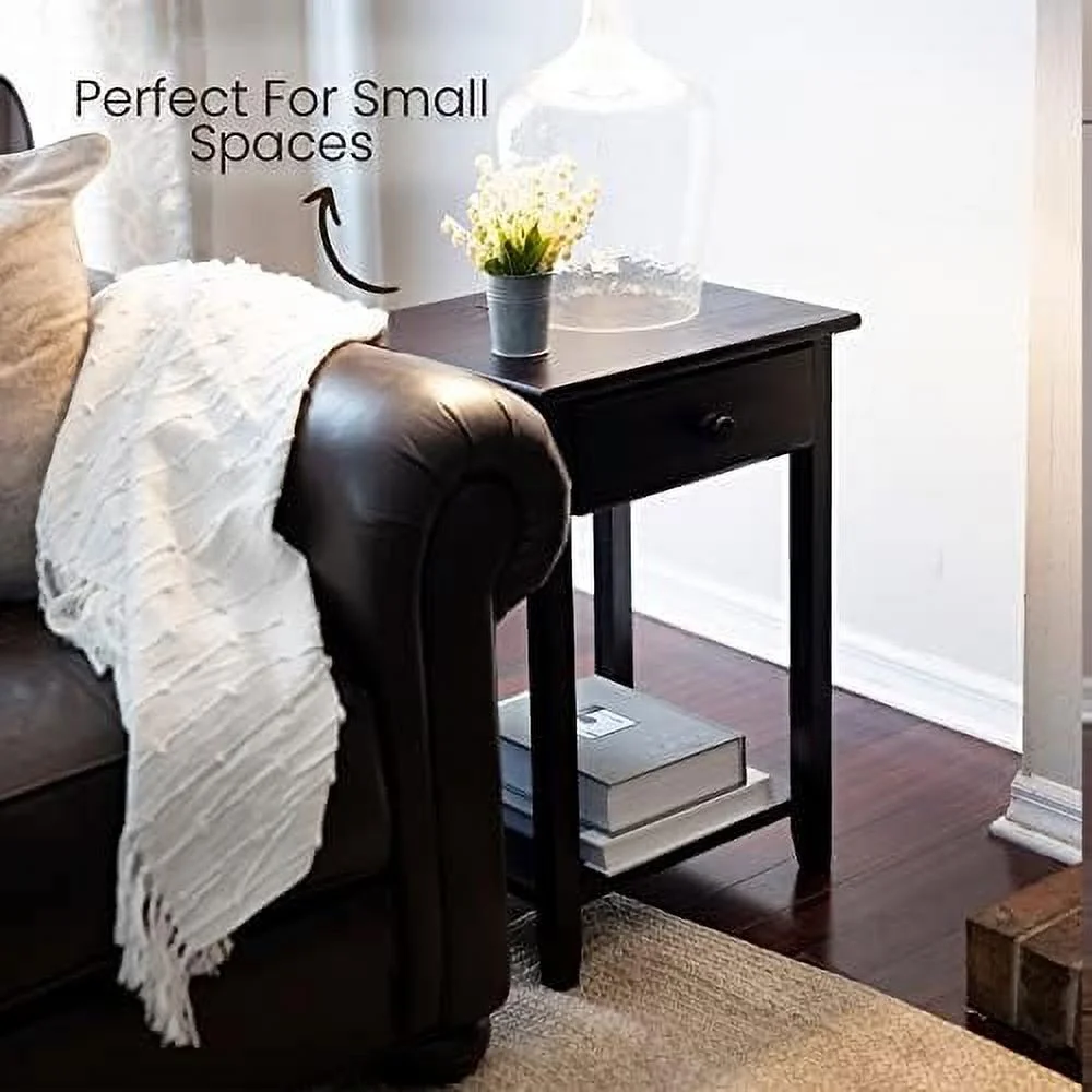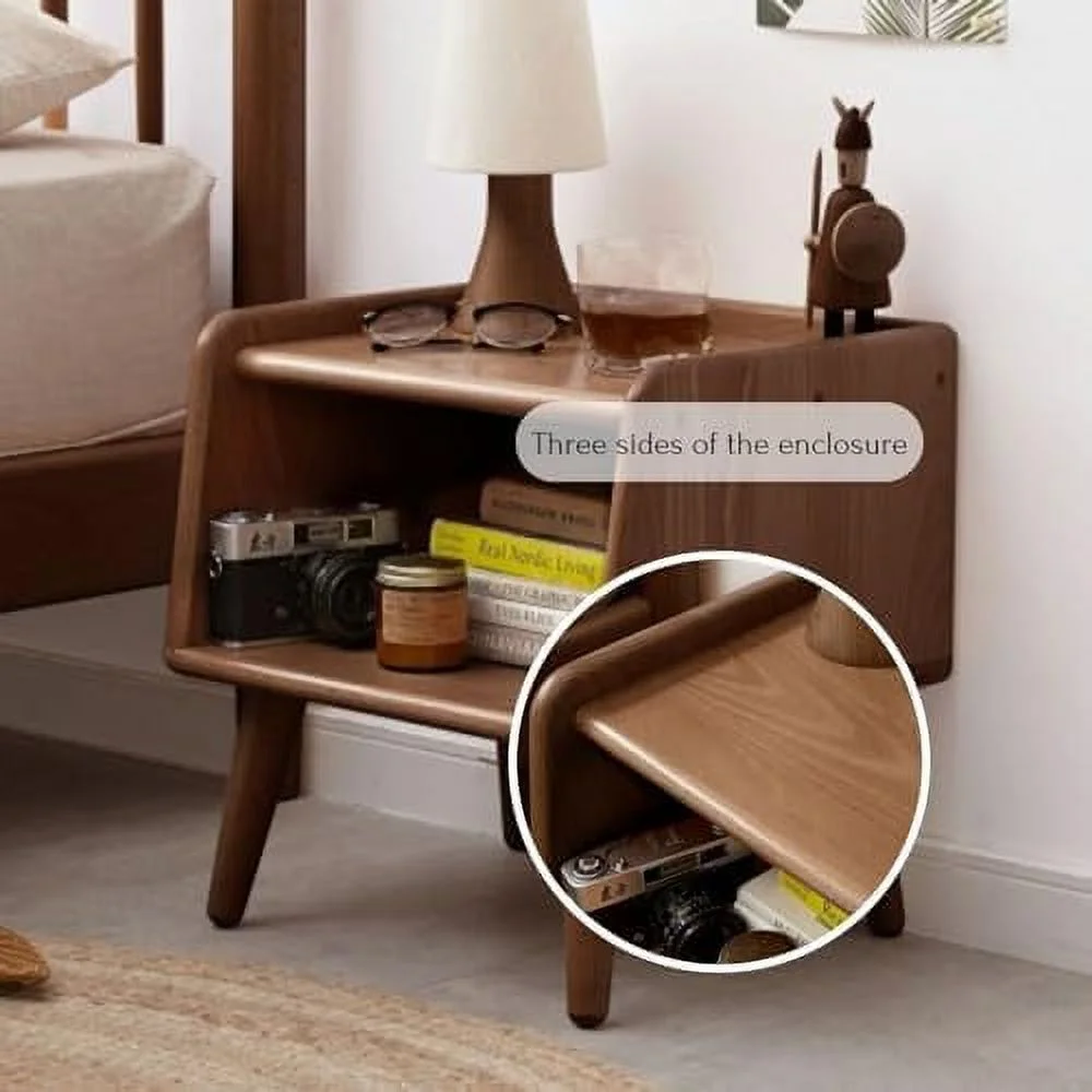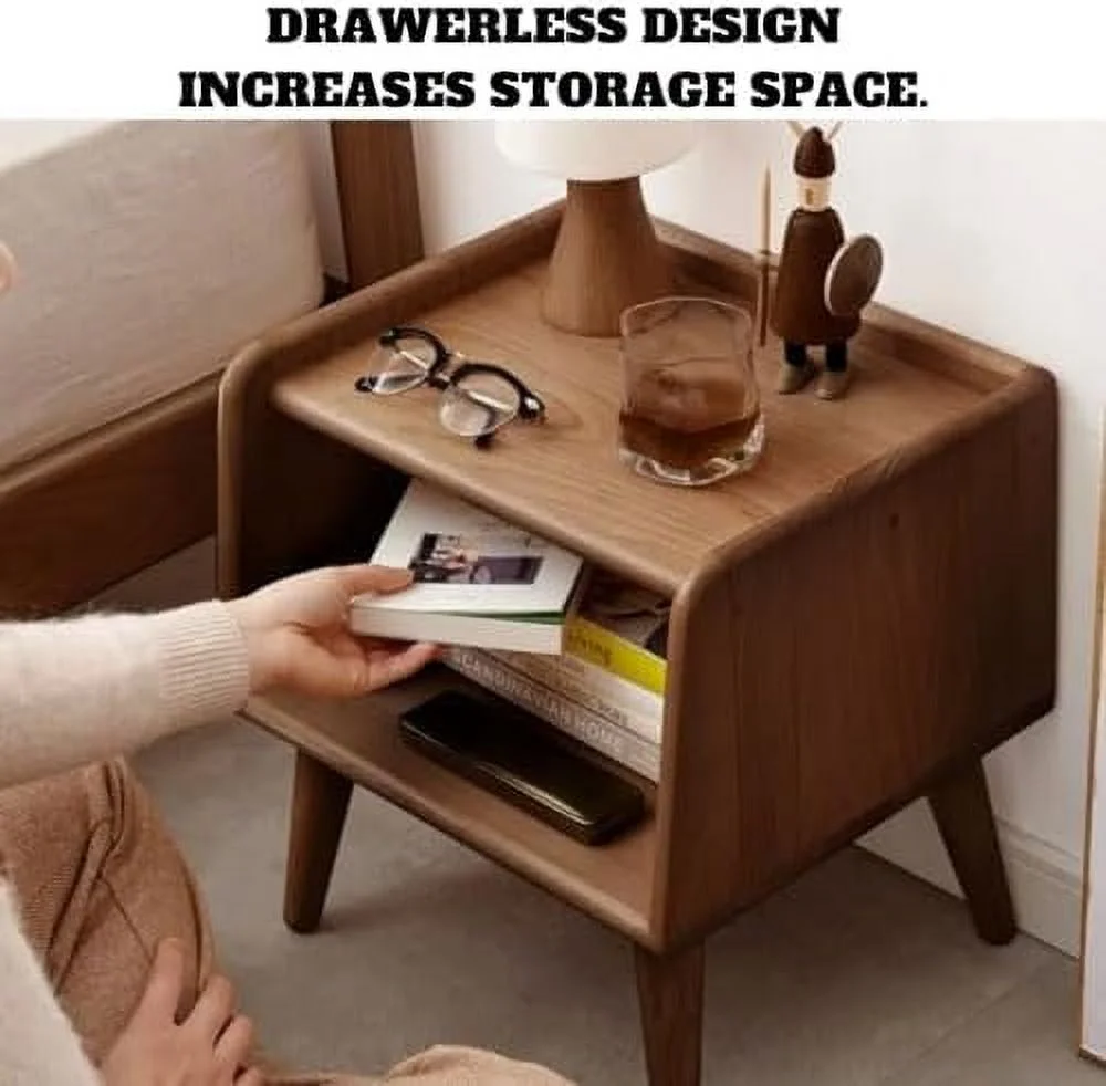 MQLIFEBOOM 100% Solid Wood Bedside Table Mid Century Modern Nightstand with Open - Medium Size for Bedroom (Walnut)