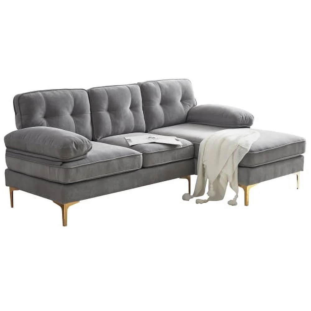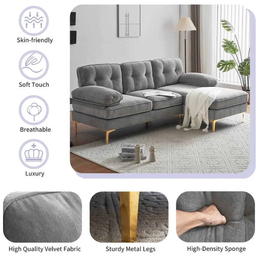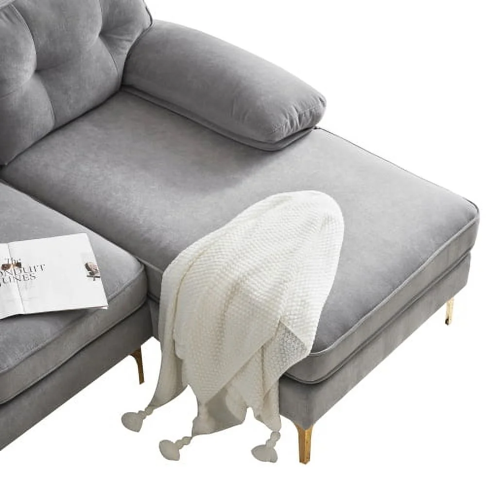 JHOOTUUO 83” Modern Sectional Sofas Couches Velvet L Shaped Couches for Living Room Bedroom Light Grey