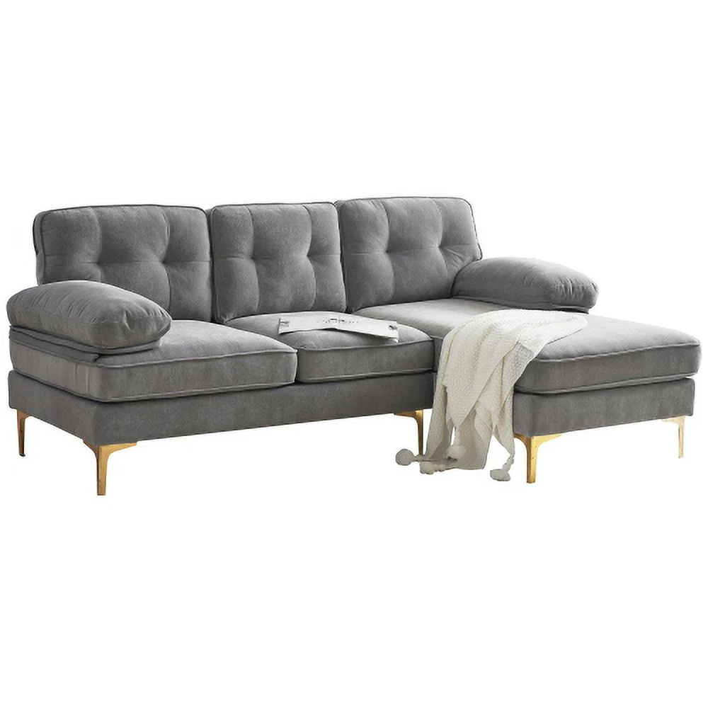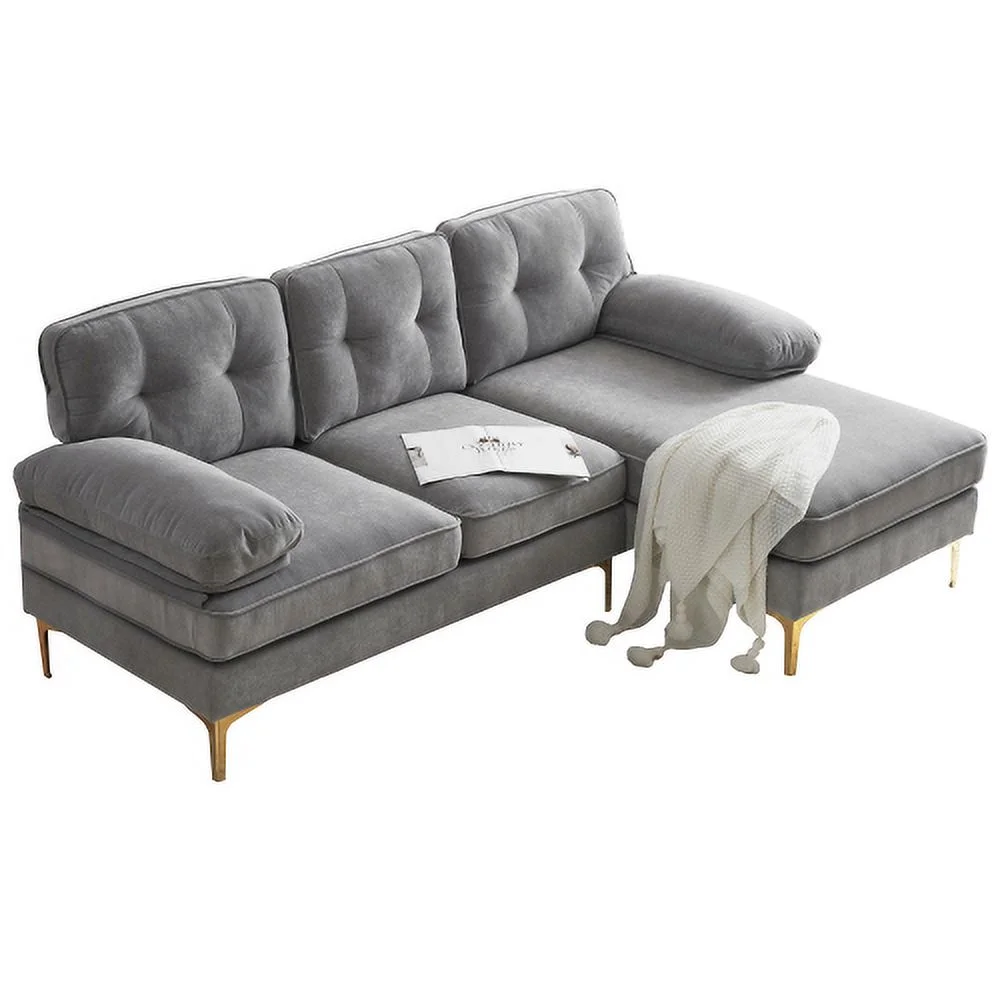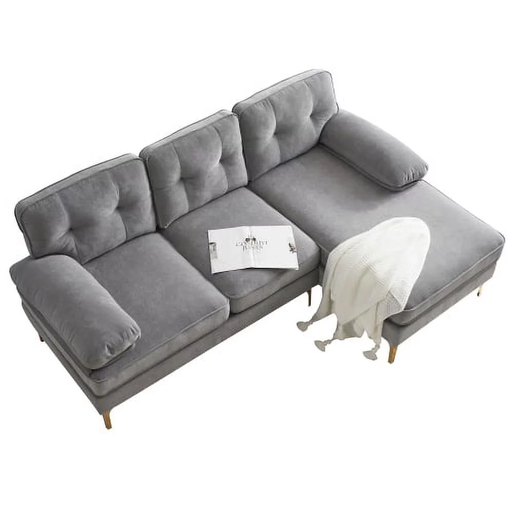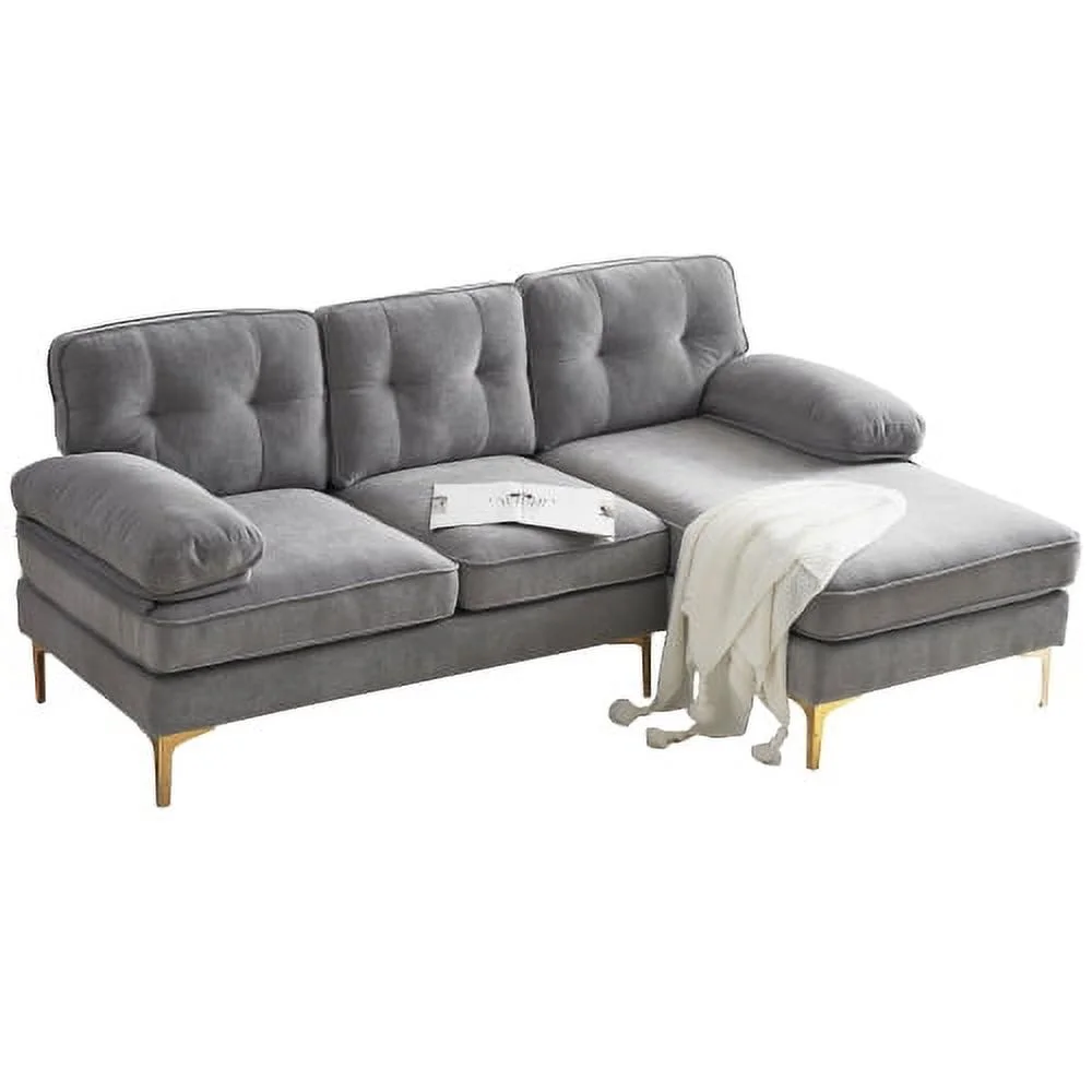 JHOOTUUO 83” Modern Sectional Sofas Couches Velvet L Shaped Couches for Living Room Bedroom Light Grey