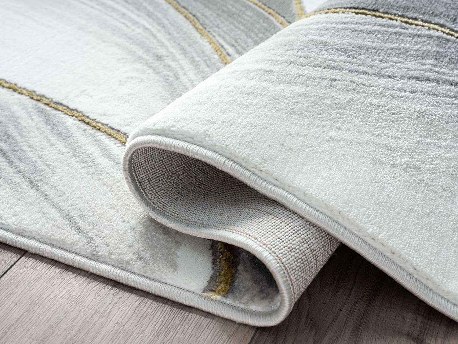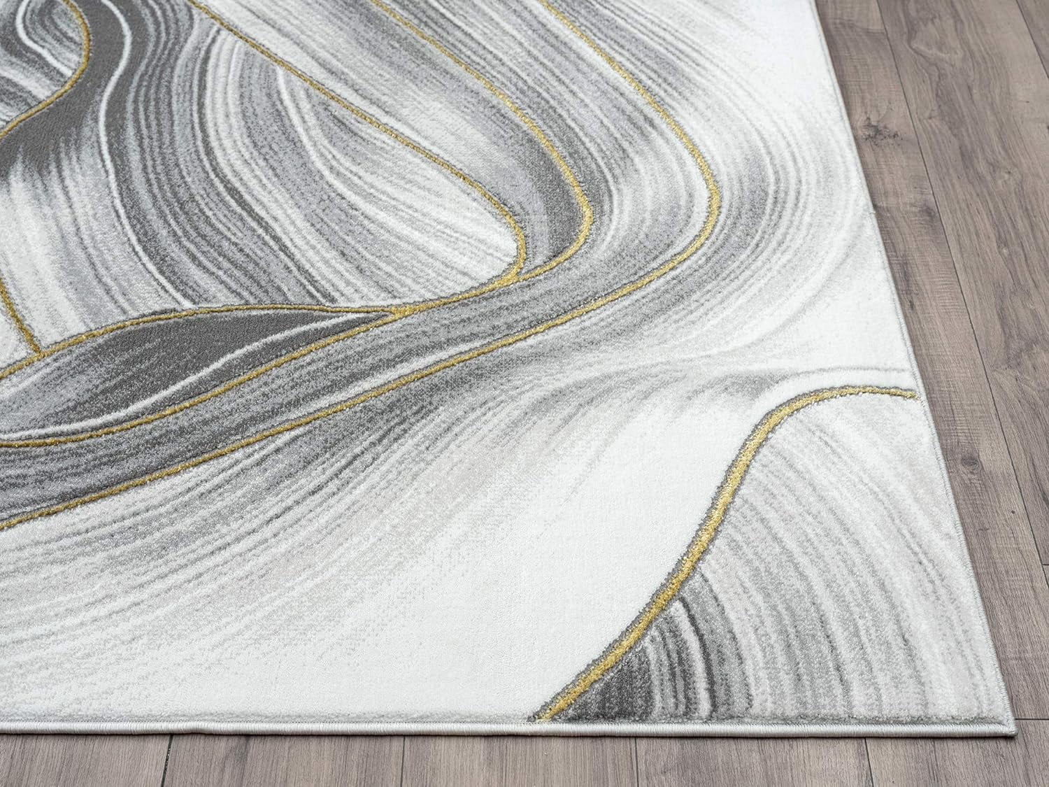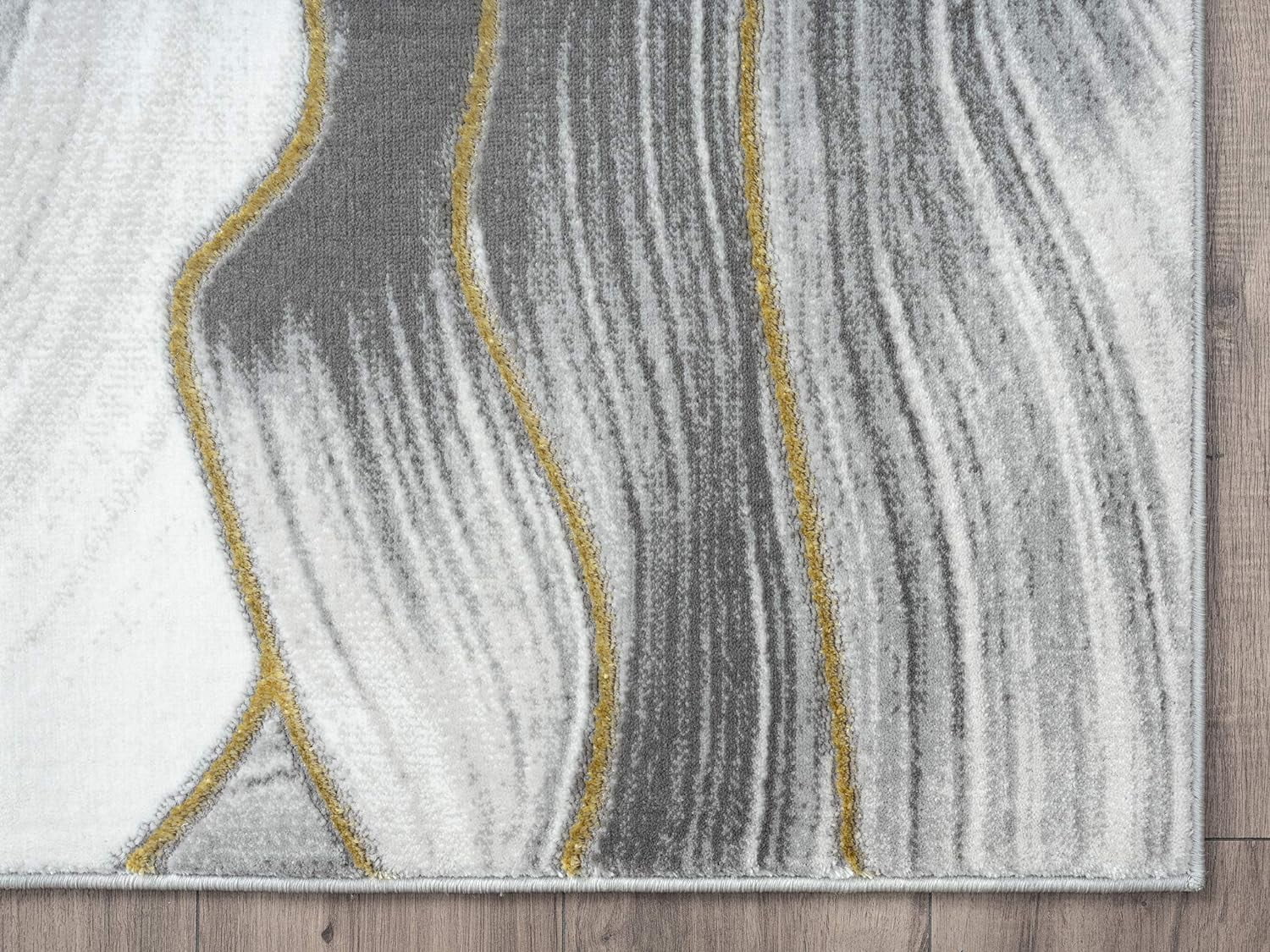 Grey & Metallic Contemporary Ribbon 4' X 6' Area Rug, Rugs Swirl Design Neutral Non-Shed Bedroom Rug