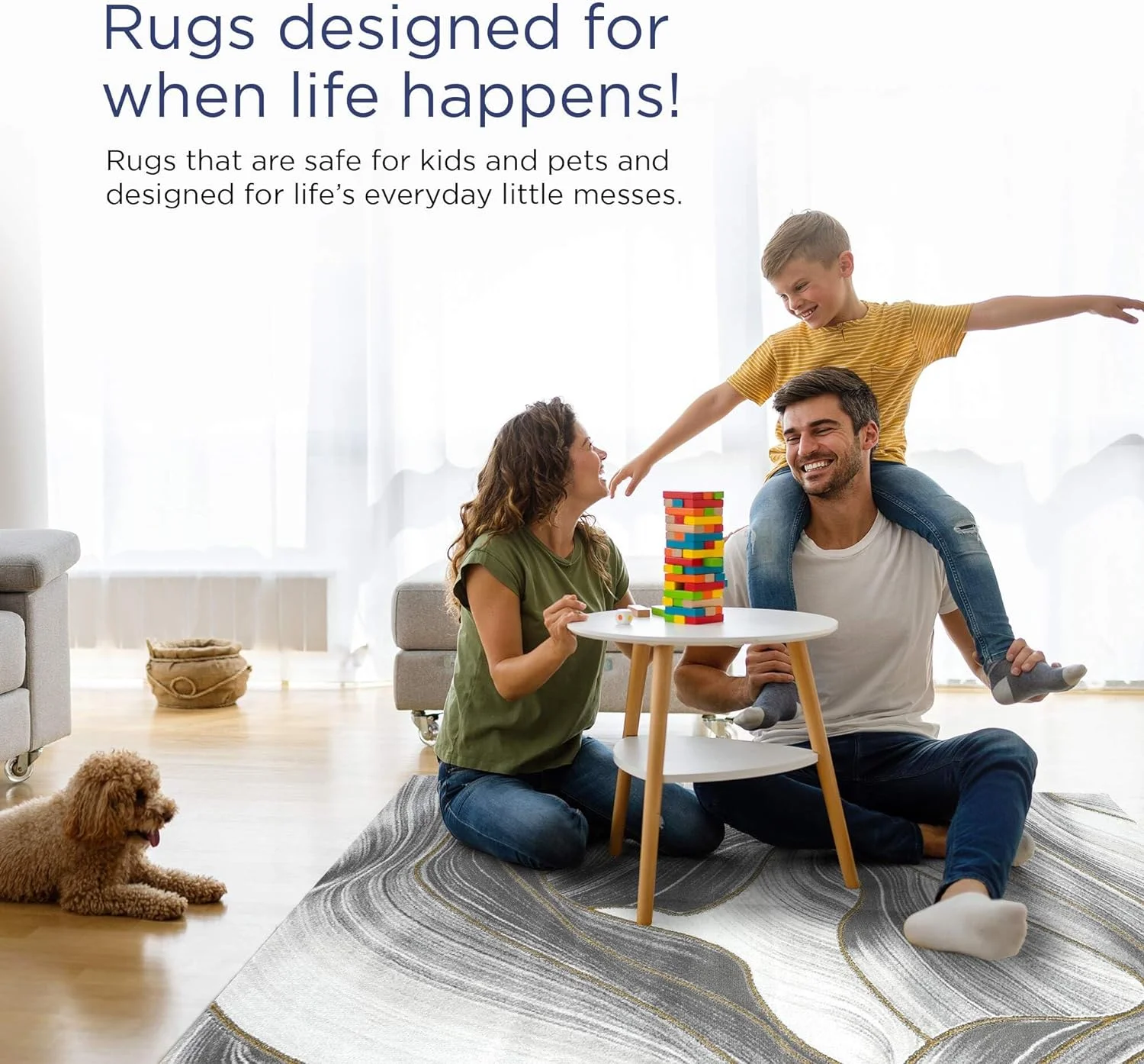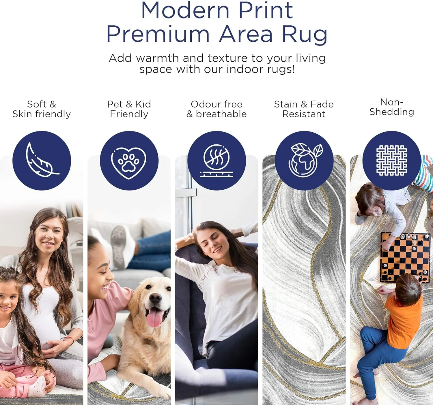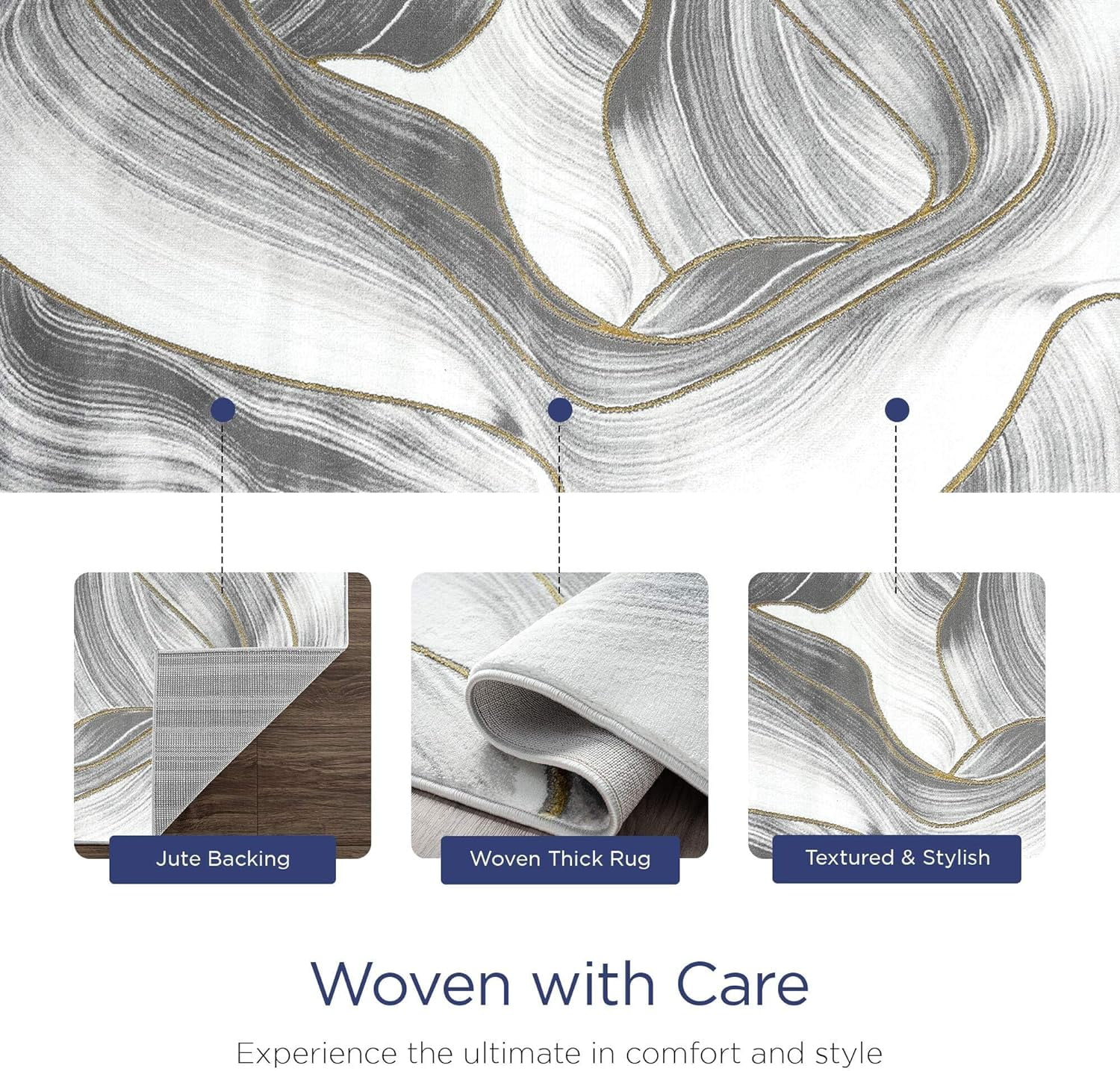 Grey & Metallic Contemporary Ribbon 4' X 6' Area Rug, Rugs Swirl Design Neutral Non-Shed Bedroom Rug