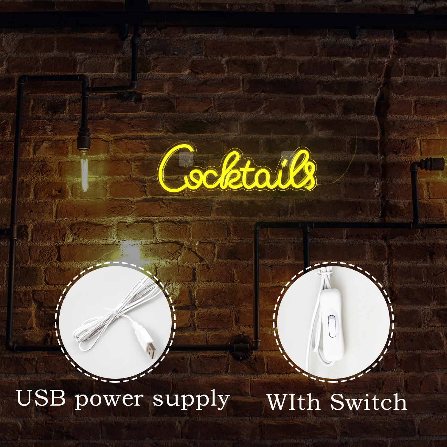 Hello Rosa Cocktails LED Neon Light Signs USB Power for Home Bedroom Party Beer Bar Cafe Man Cave Decoration