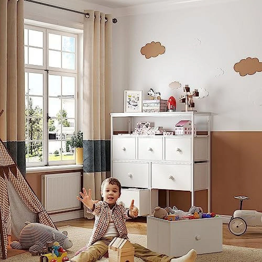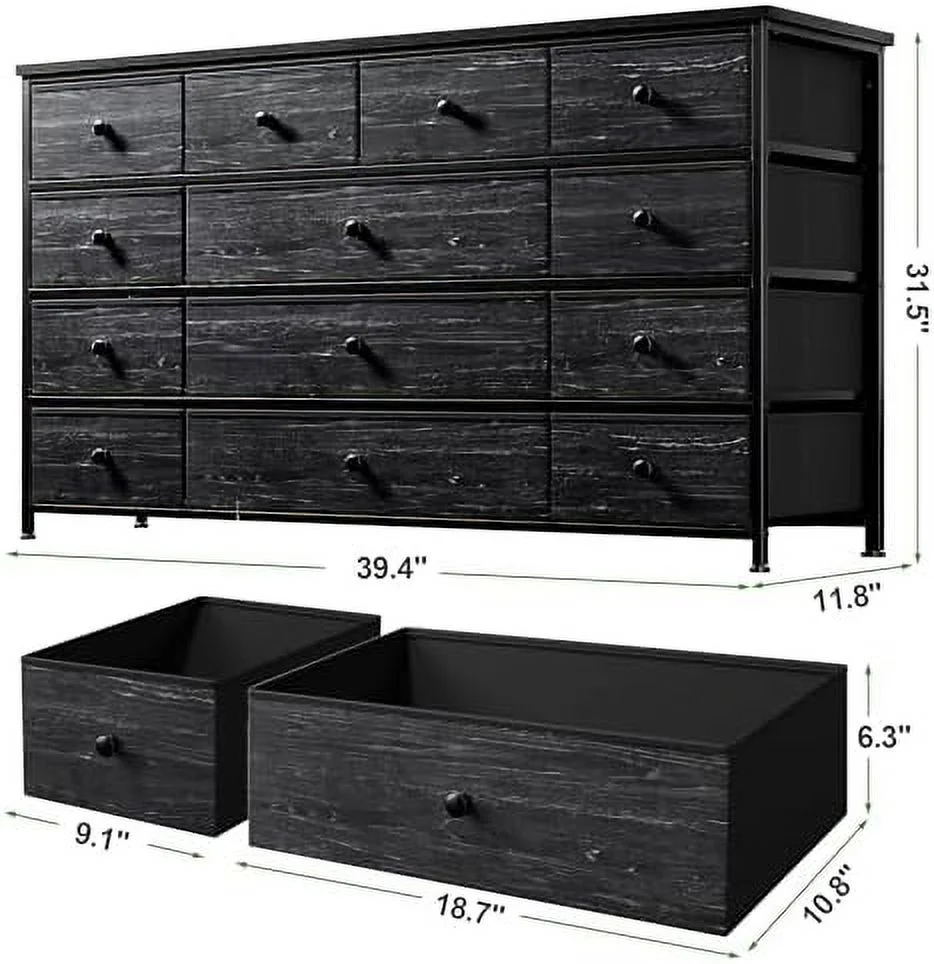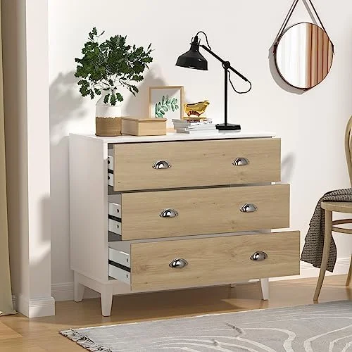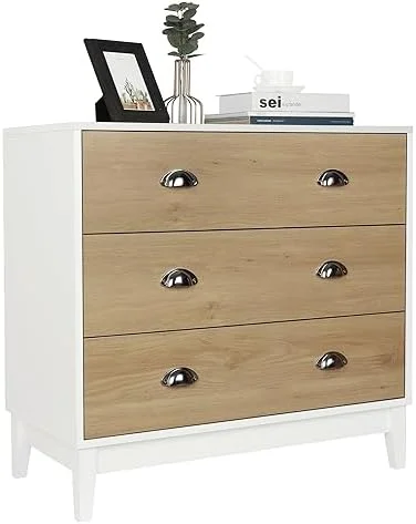 Anmytek Bedroom Dresser 3-Drawer Wooden Chest of Drawers Herringbone Accent Chest Storage Nightstand 31.5"W X 29.35"H