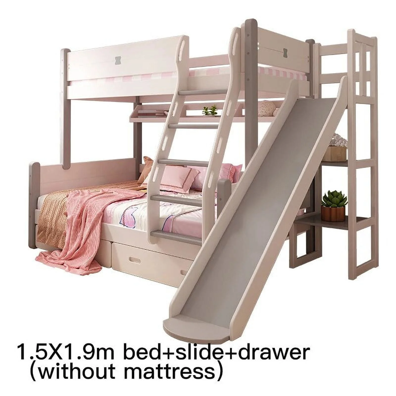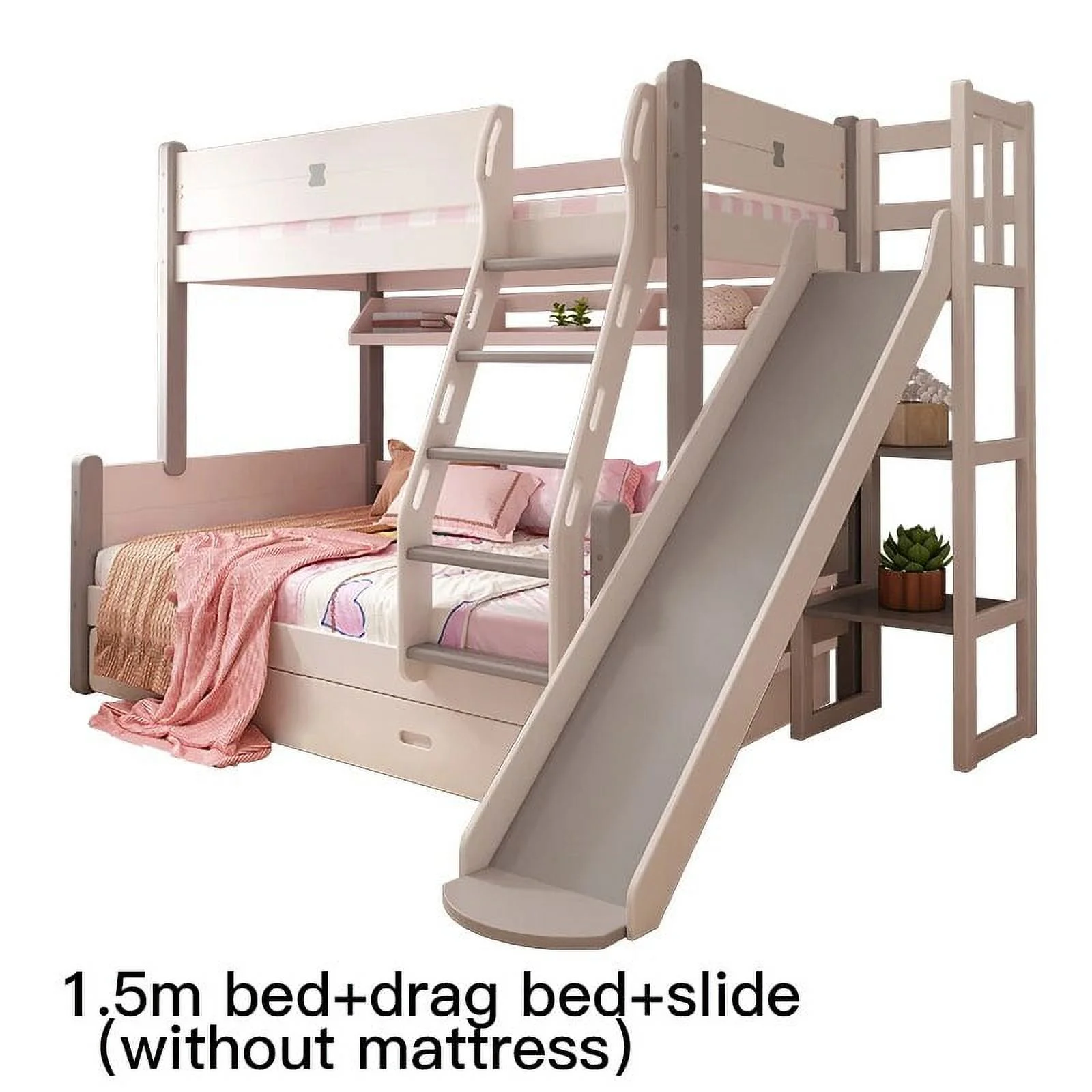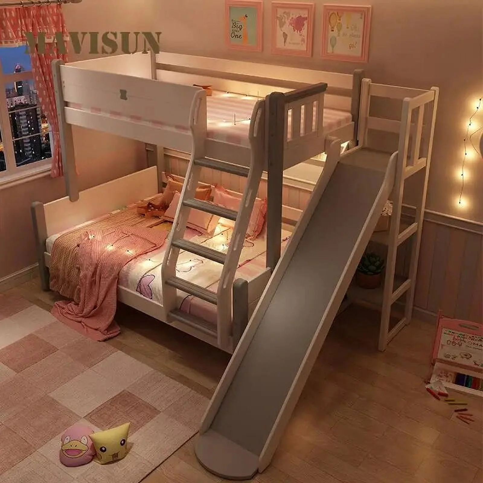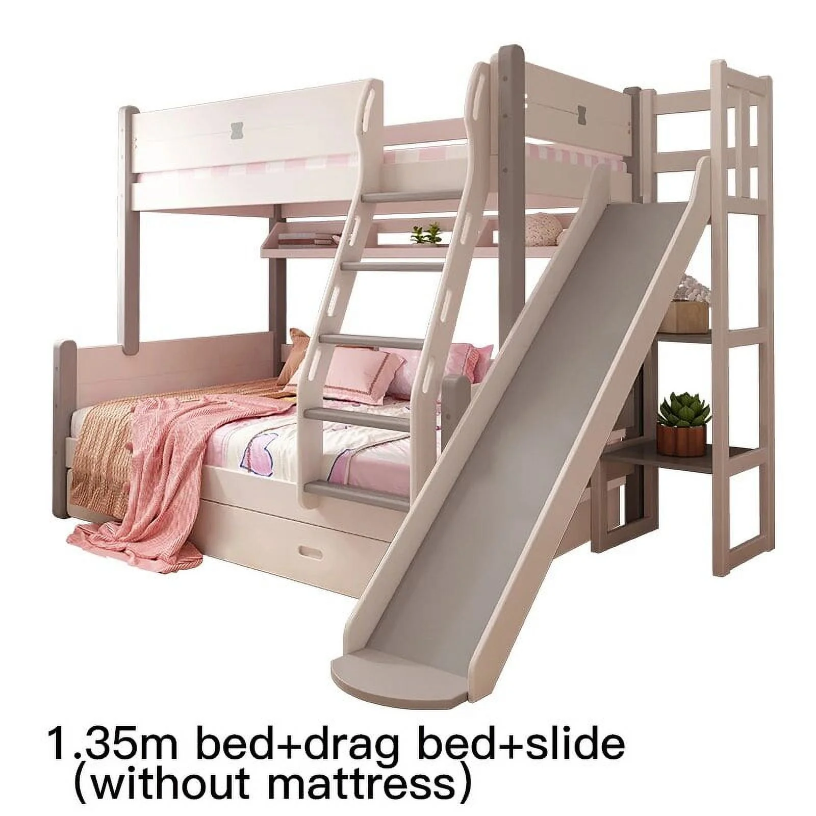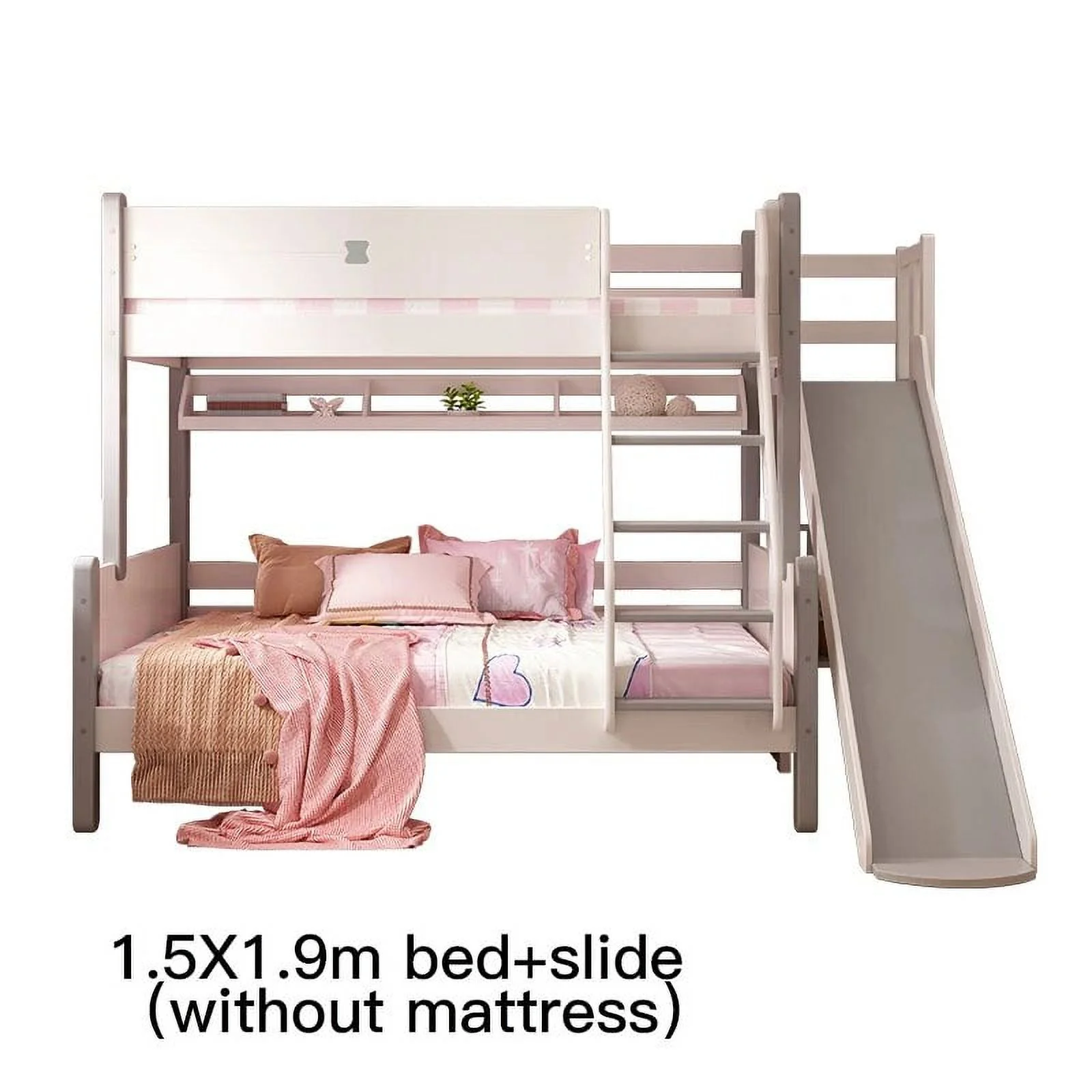 Nordic Style Small Apartment All Solid Wood Bunk Bed With Slide Princess Up Down Children Bedroom Bed Multifunctional Furniture