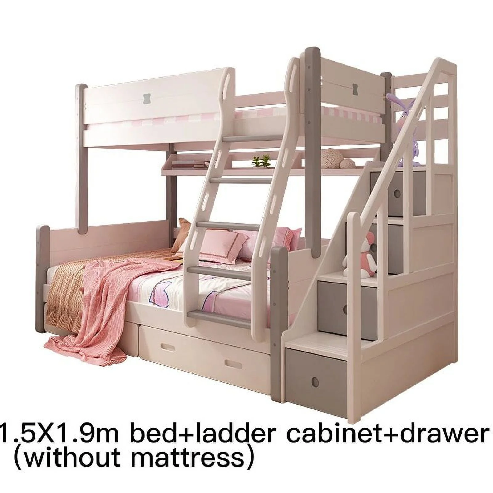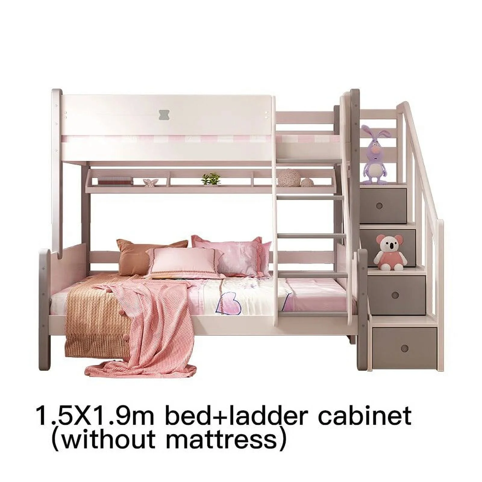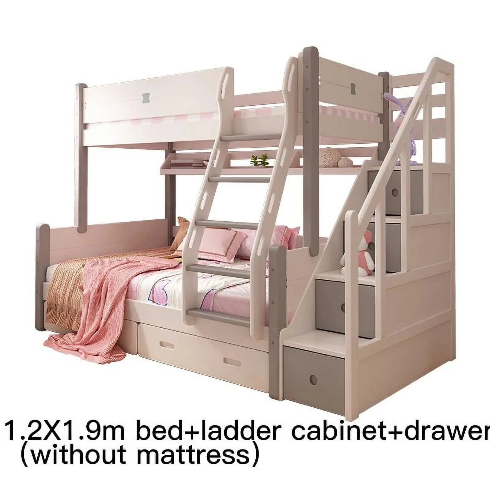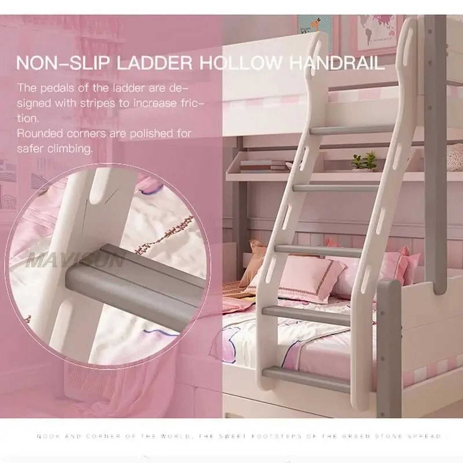 Nordic Style Small Apartment All Solid Wood Bunk Bed With Slide Princess Up Down Children Bedroom Bed Multifunctional Furniture