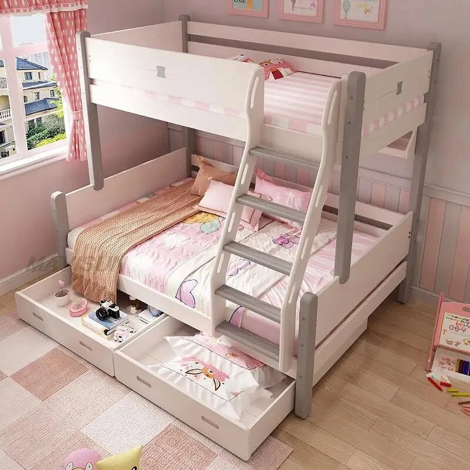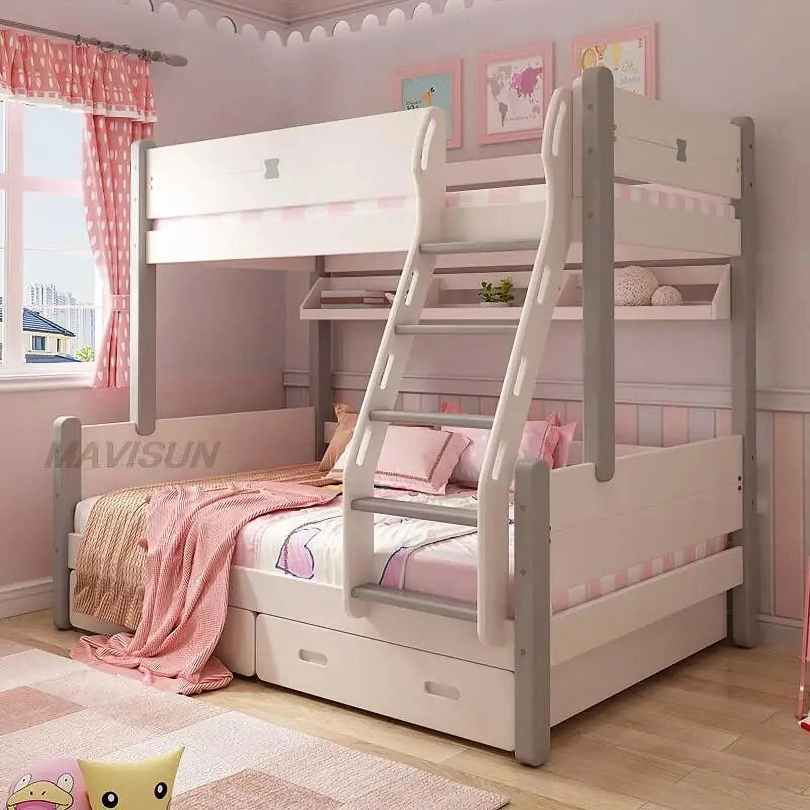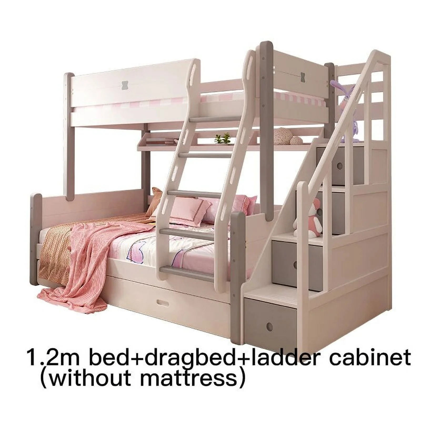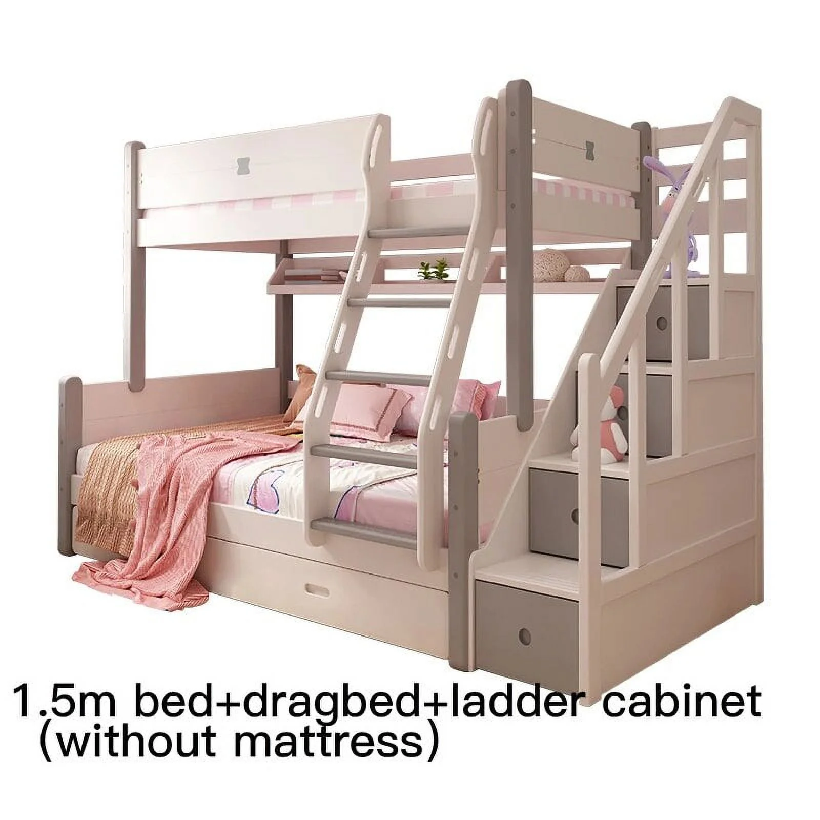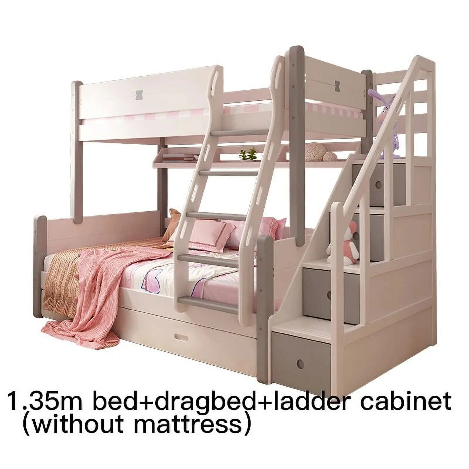 Nordic Style Small Apartment All Solid Wood Bunk Bed With Slide Princess Up Down Children Bedroom Bed Multifunctional Furniture