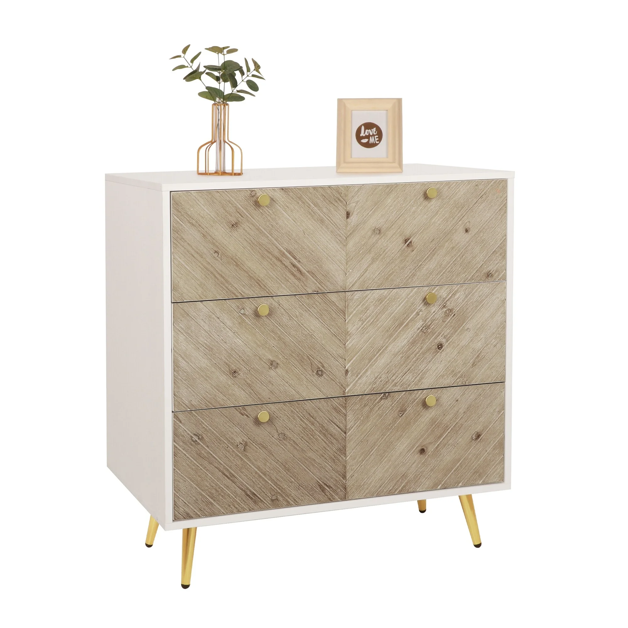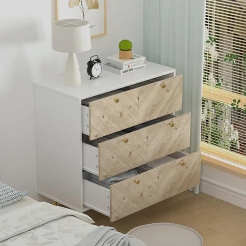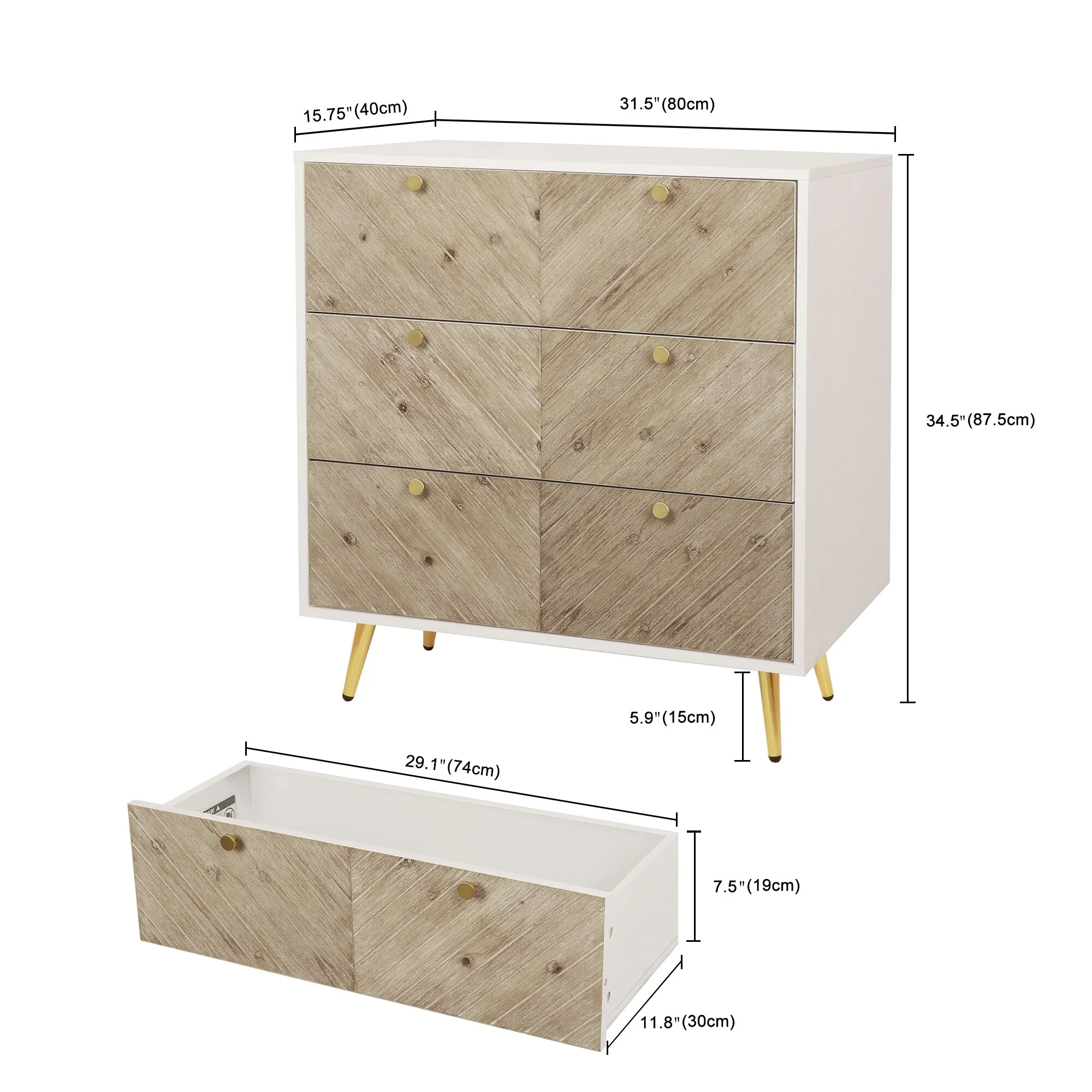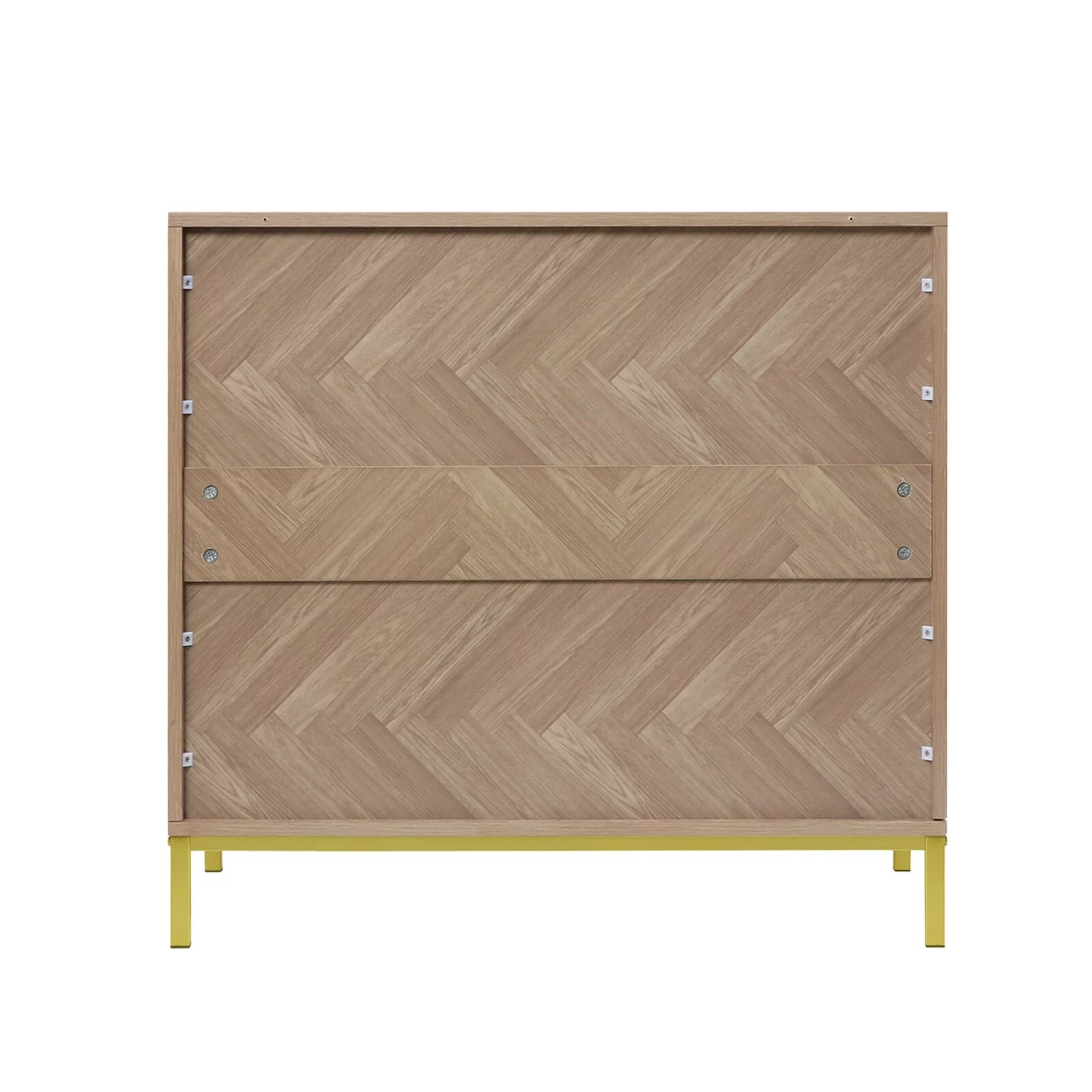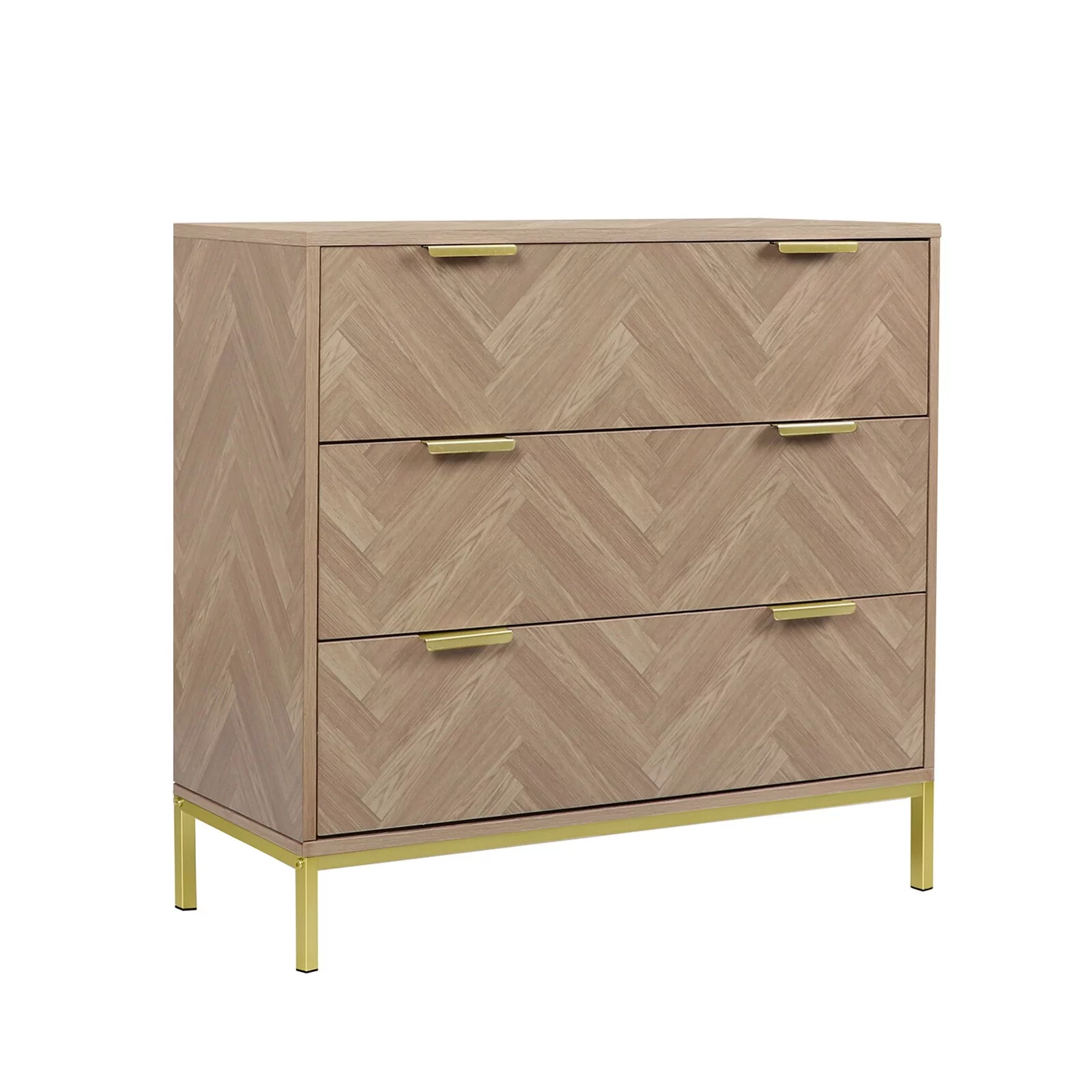 Anmytek Modern 3-Drawer Dresser Herringbone Bedroom Dresser Chest of Drawer with Gold Legs