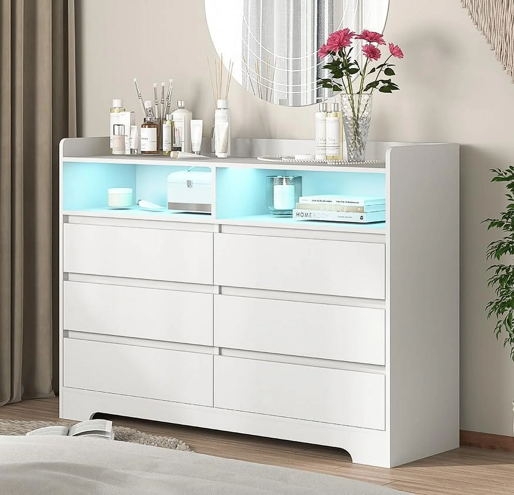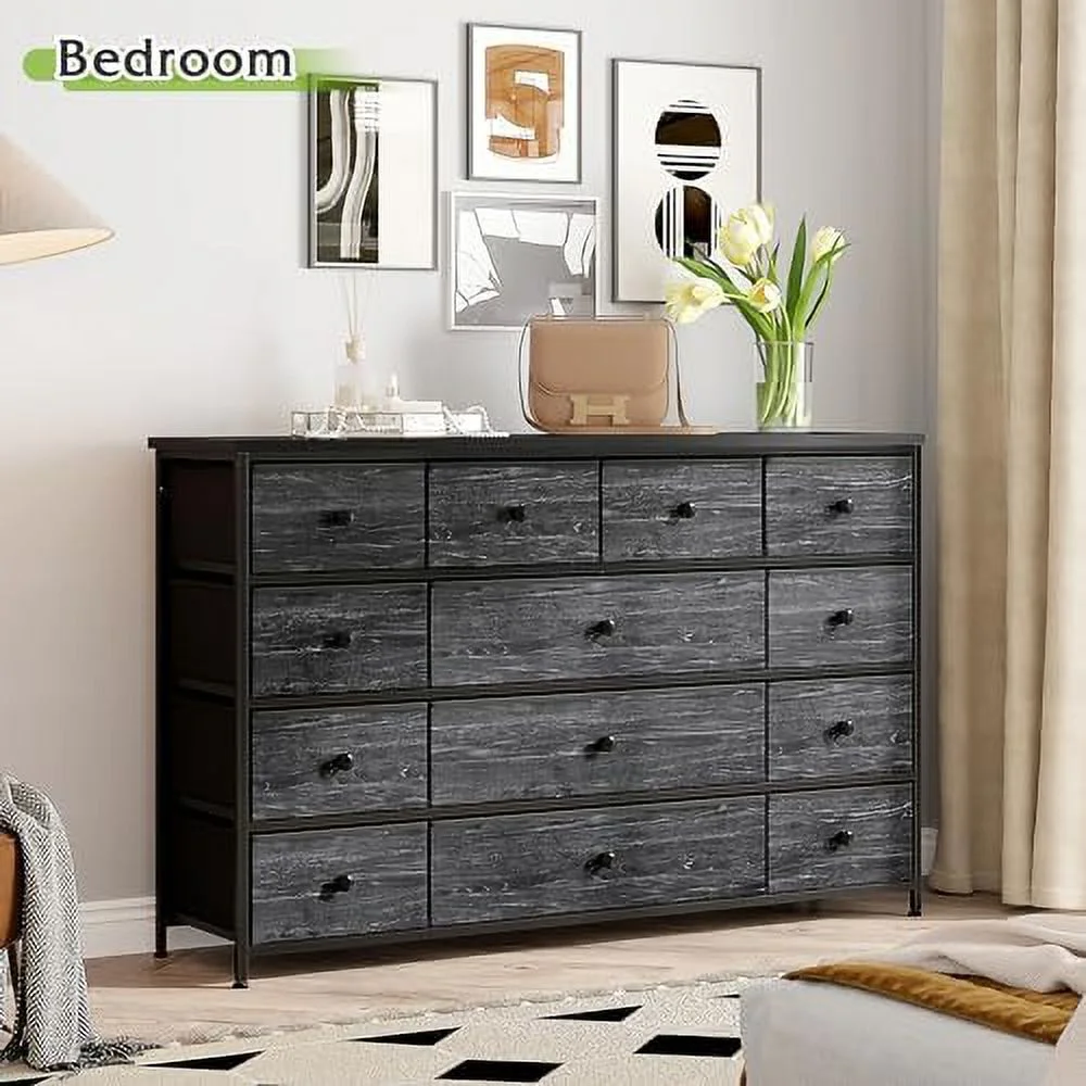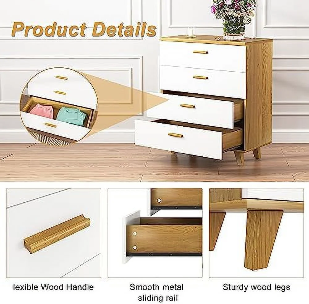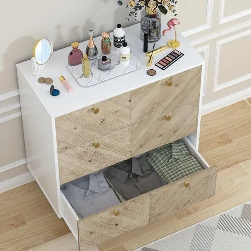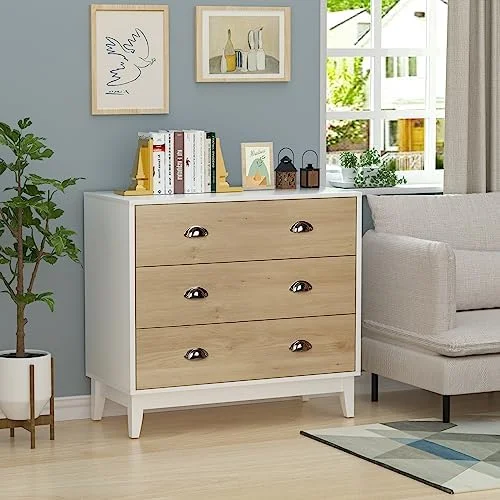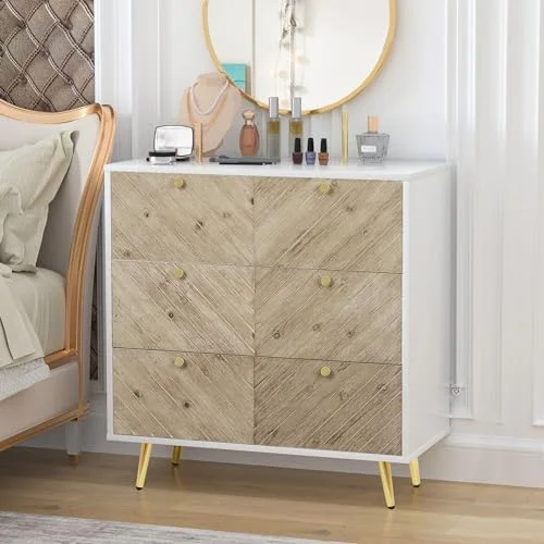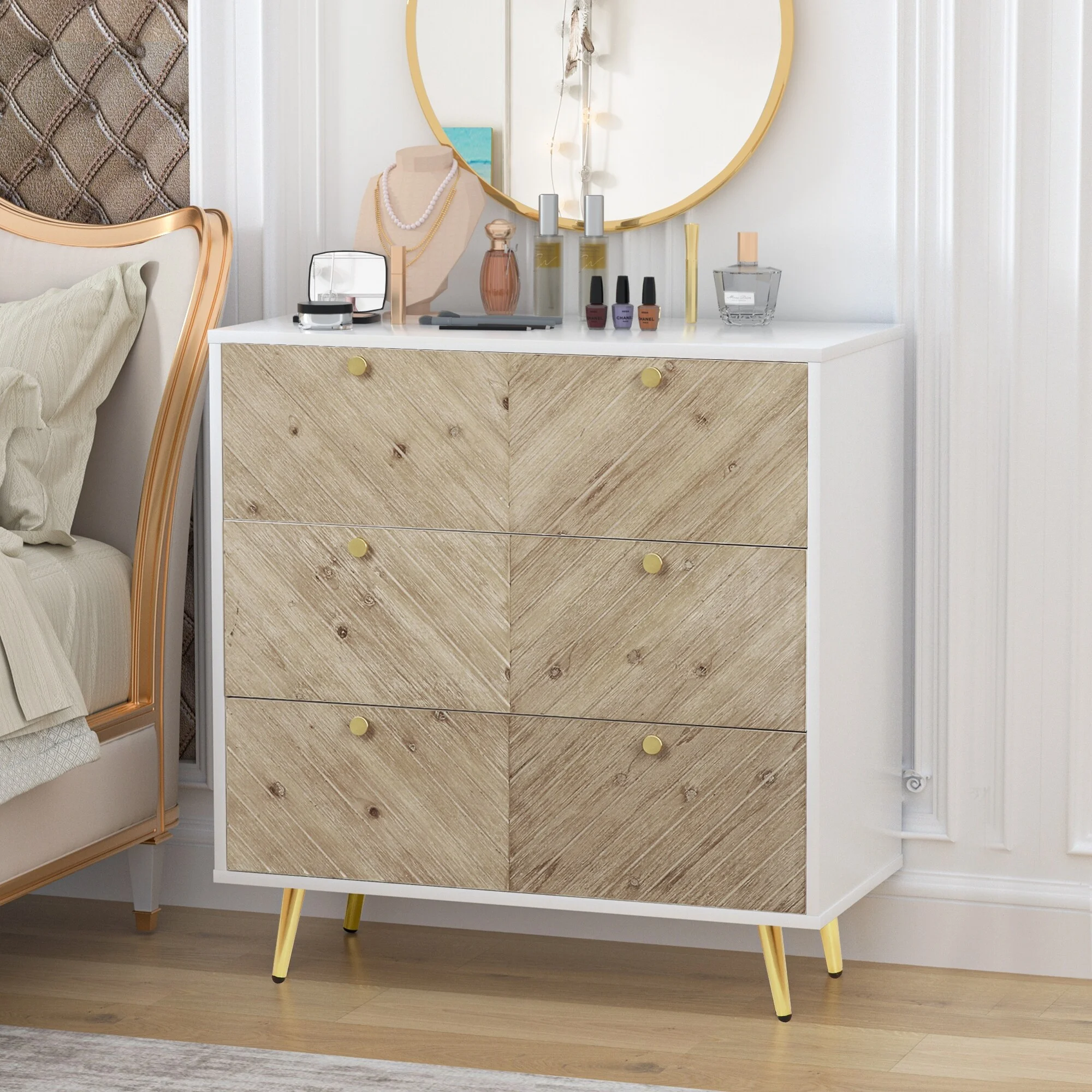 Anmytek Modern 3-Drawer Dresser Herringbone Bedroom Dresser Chest of Drawer with Gold Legs