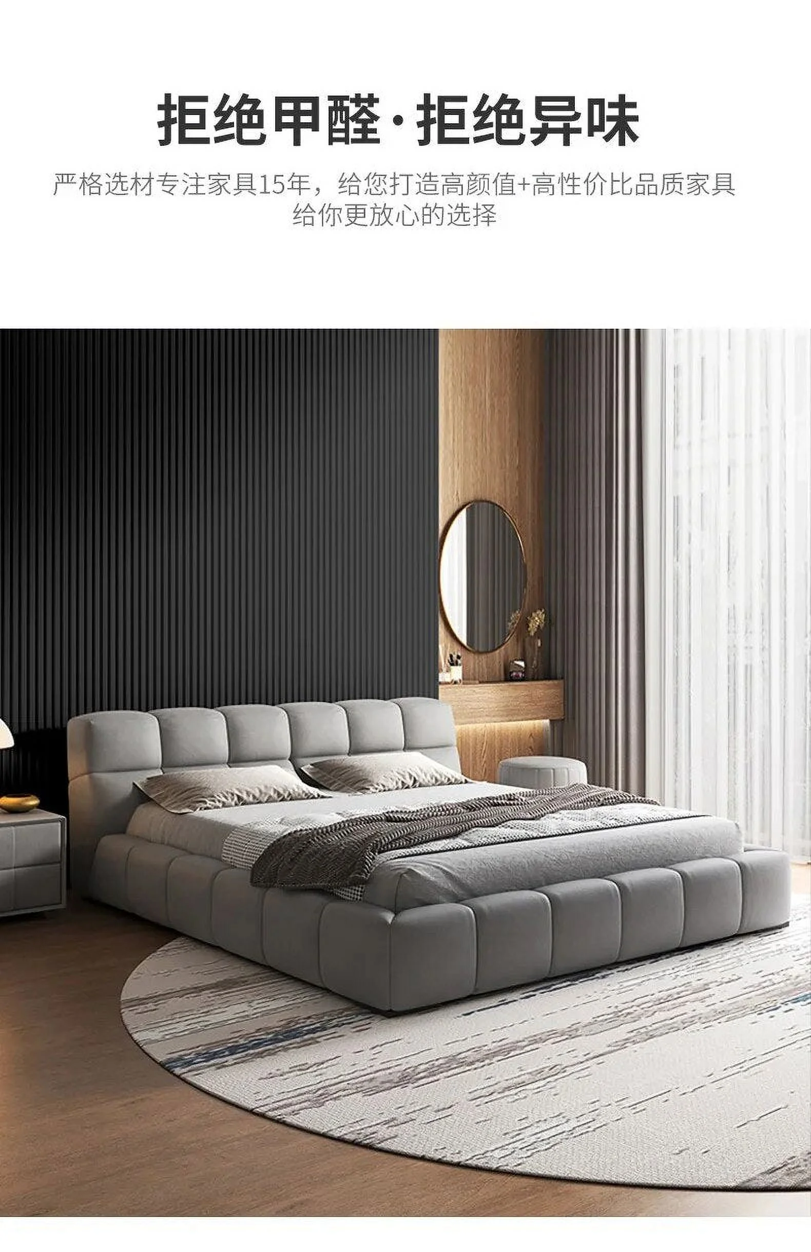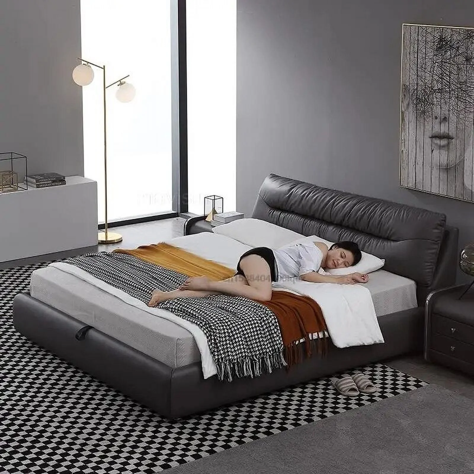 Nordic Light Luxury Modern Bedroom Furniture 1.8 Meters Simple Feather Double Leather Bed Italian Minimalism Furniture For Home