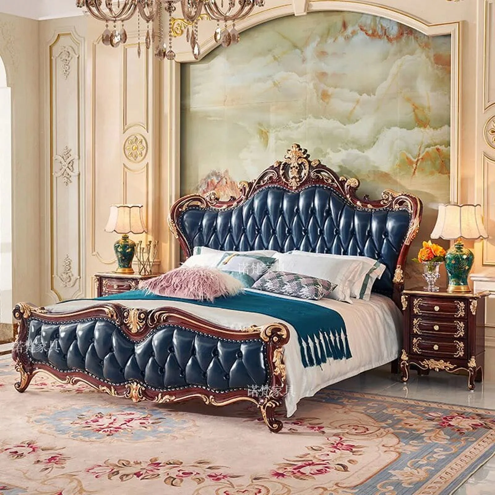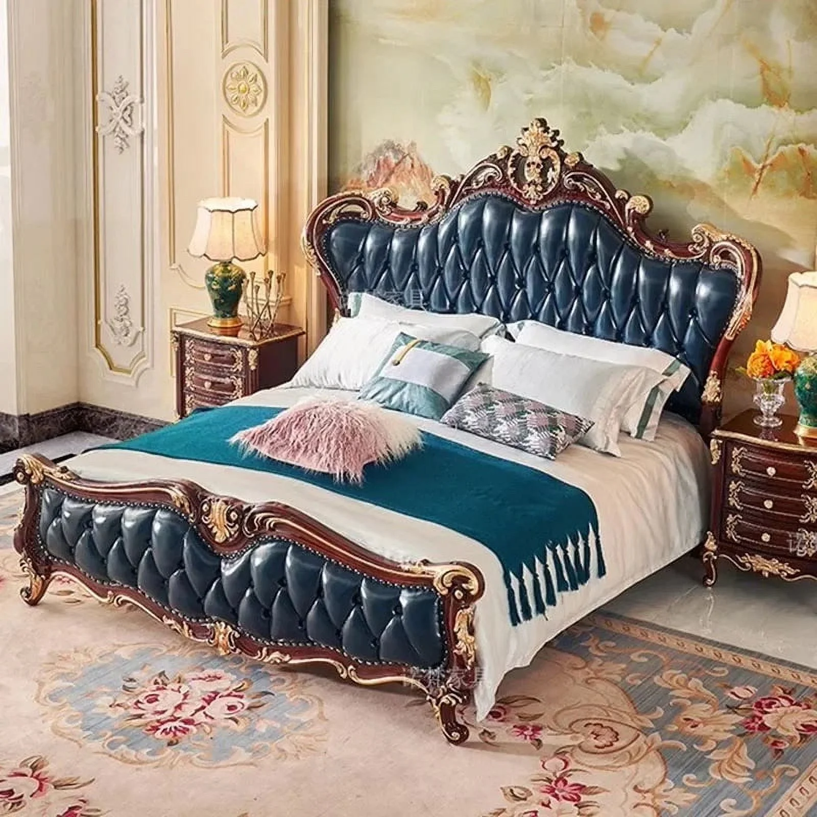 Bedroom Modern Aesthetic Bed Wood Nordic Twin King Size Bed Genuine Leather Luxury Letto Matrimonialev Home Furniture
