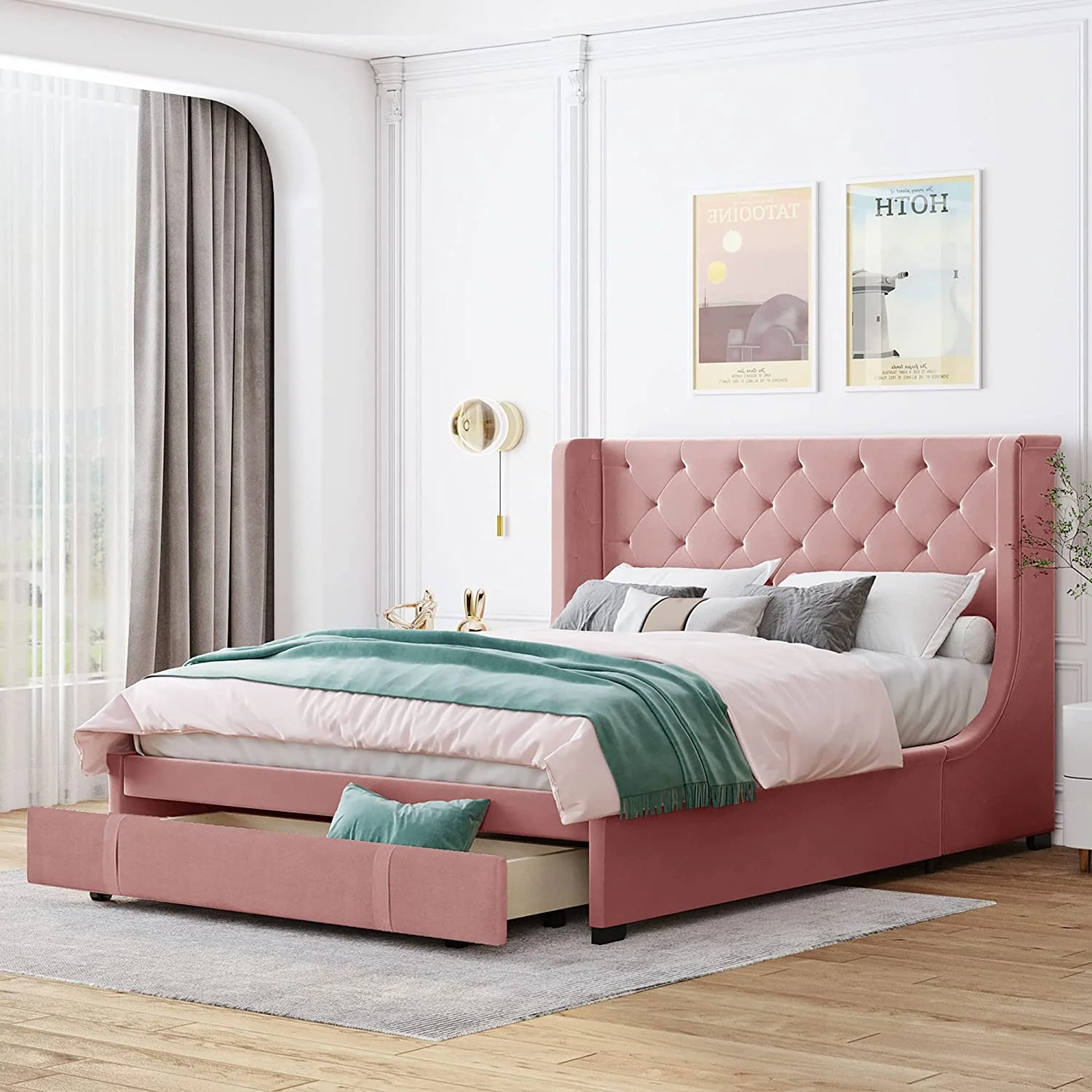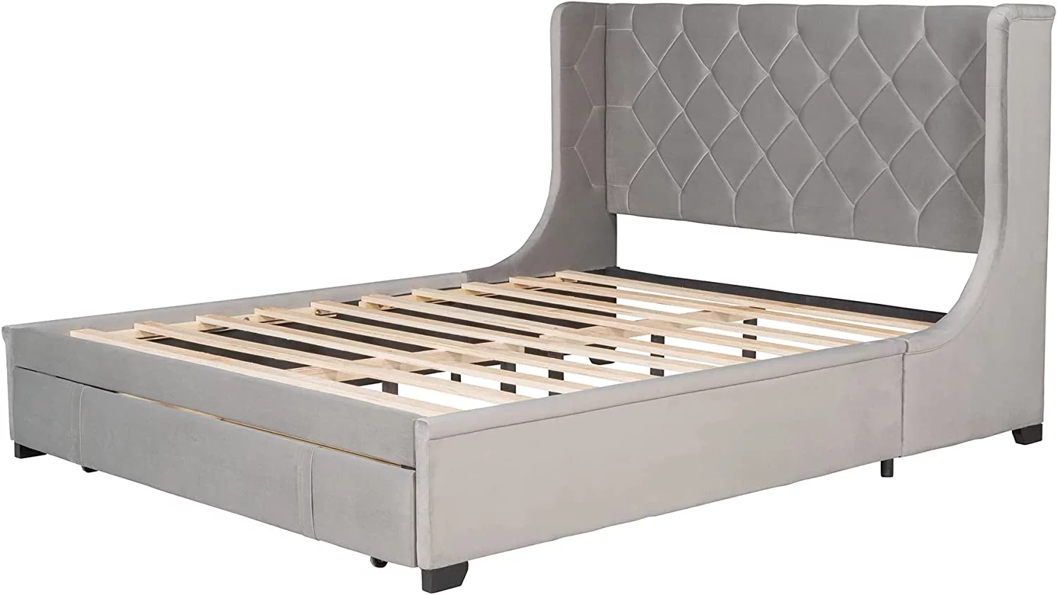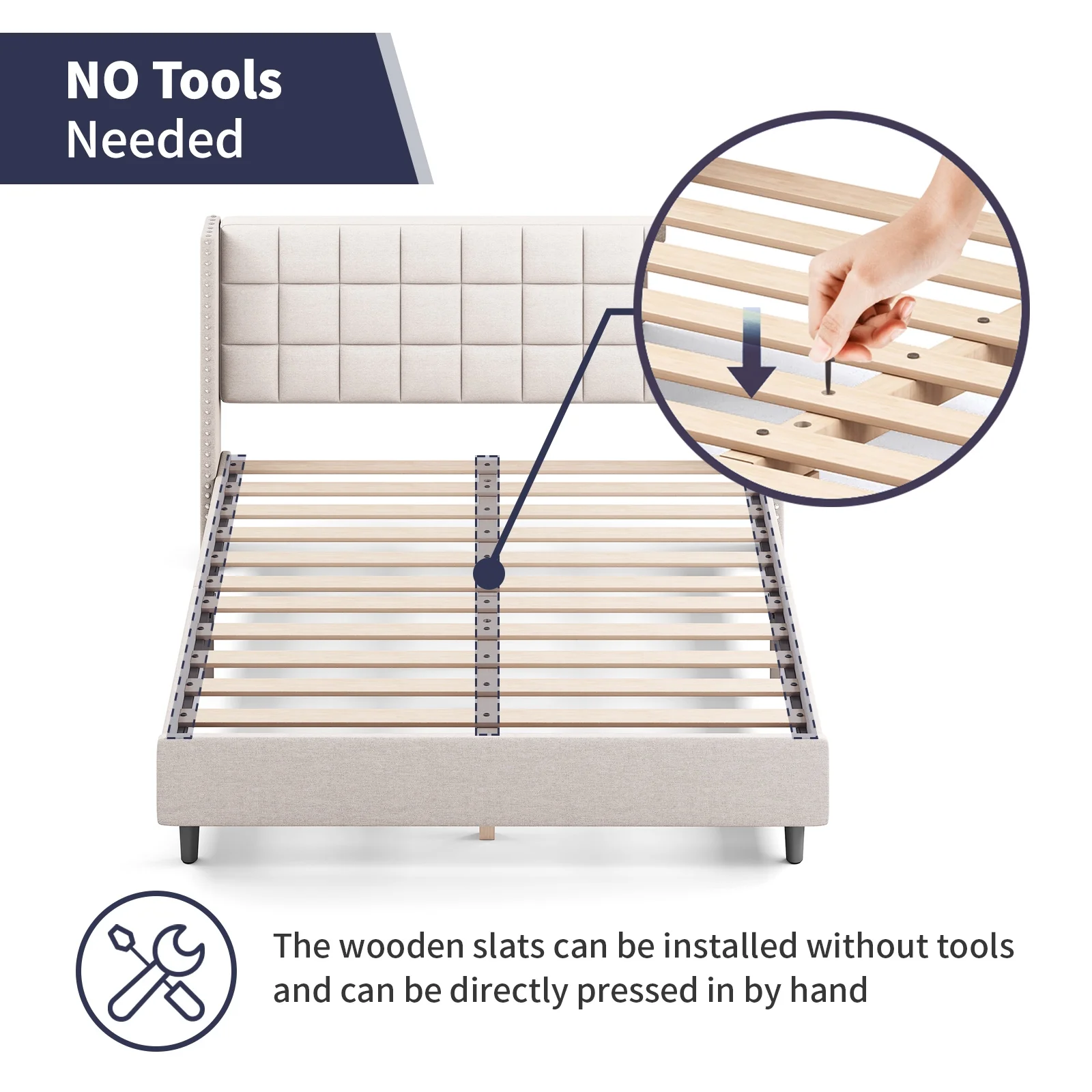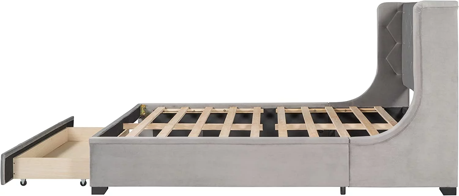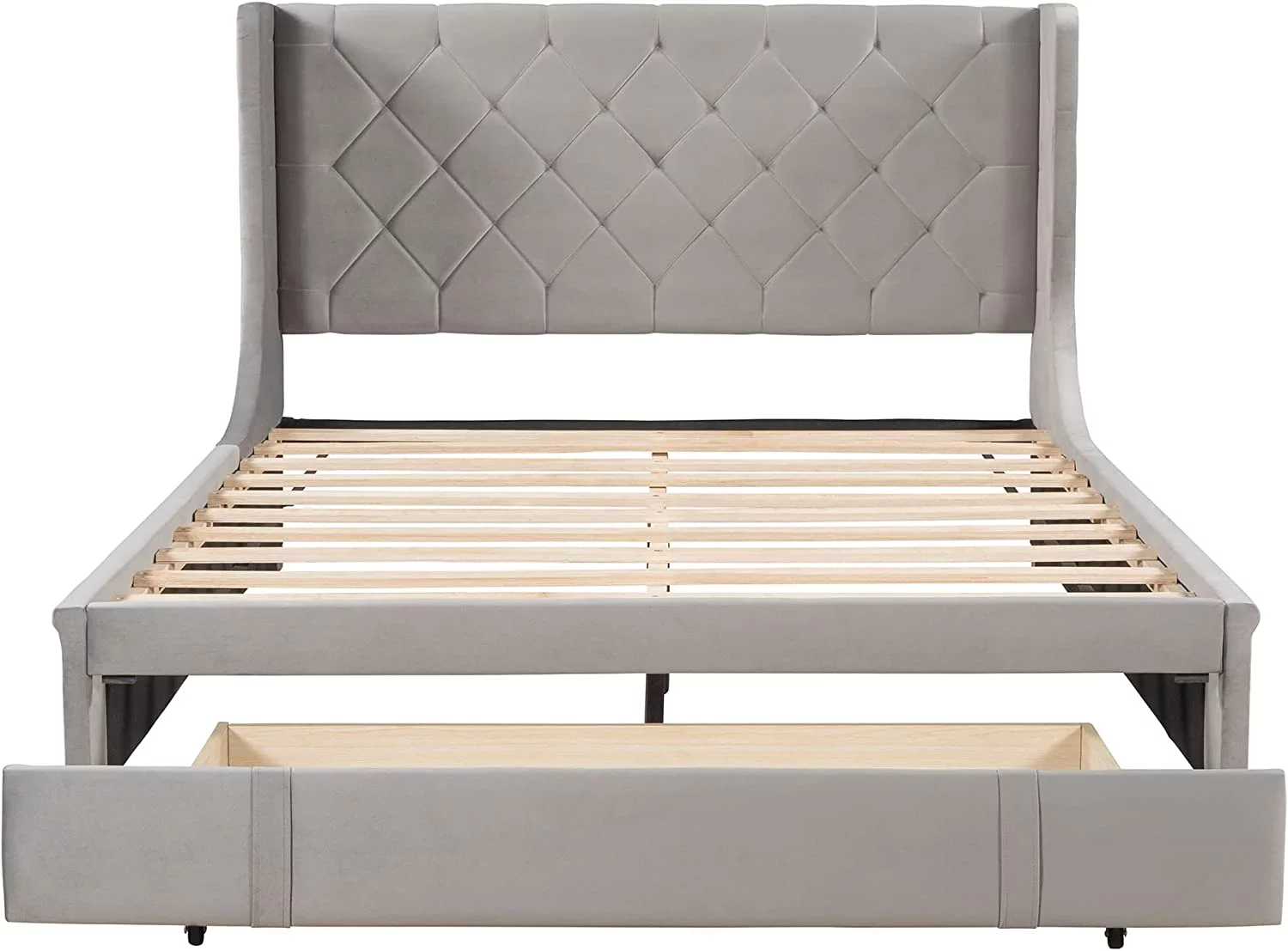 Modern Champagne Faux Diamond Button Tufted HB Finish 4pc Full Size Bedroom Set Bed Dresser Mirror Nightstand