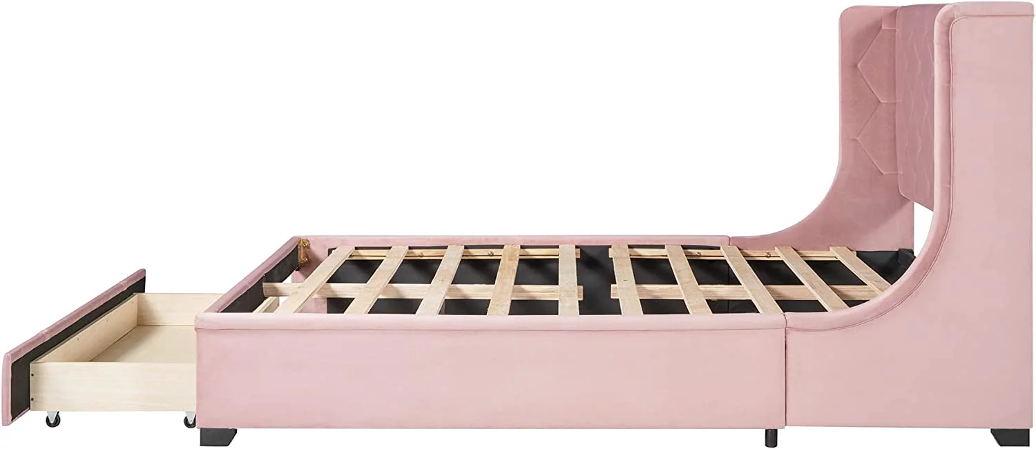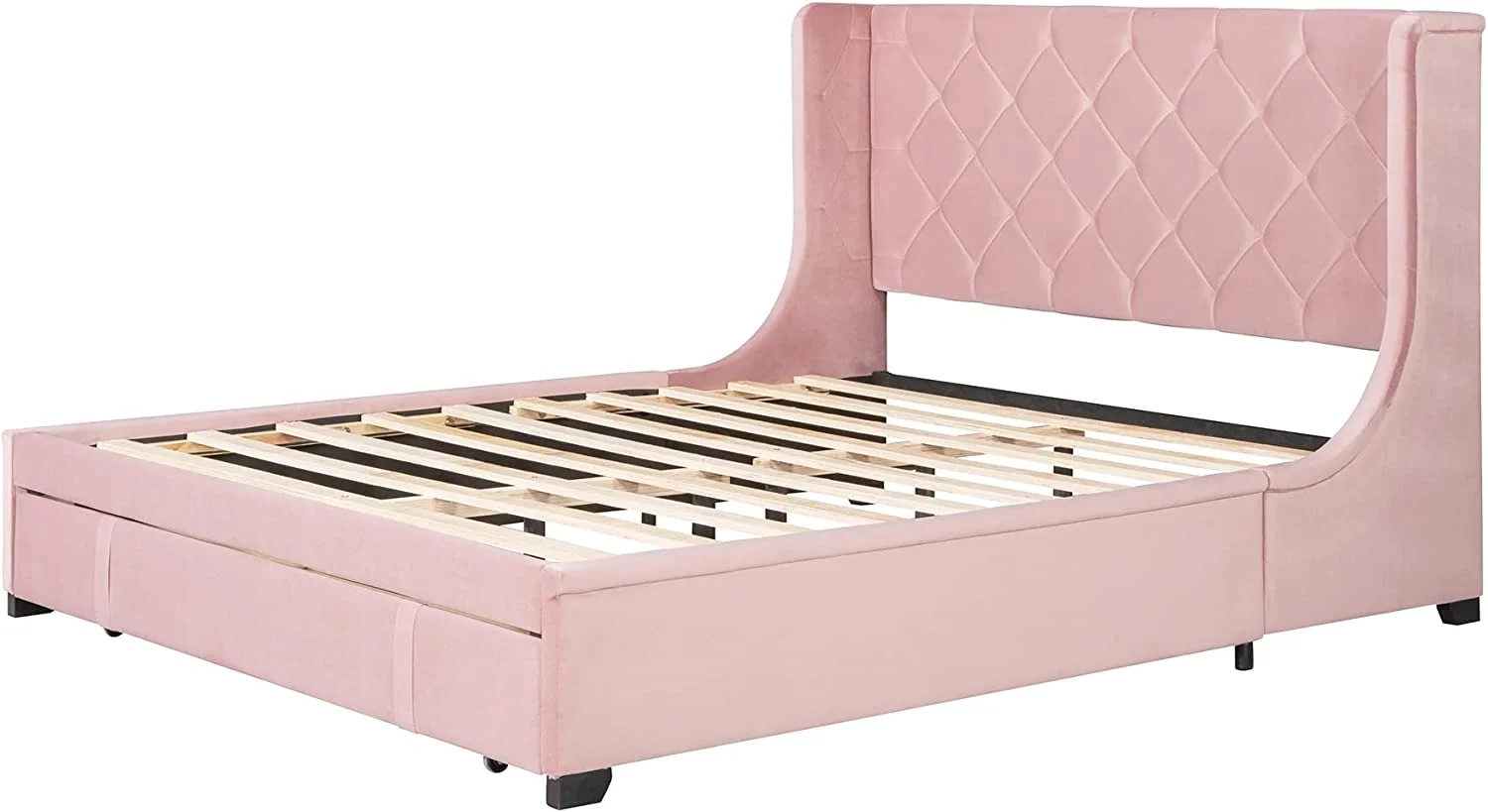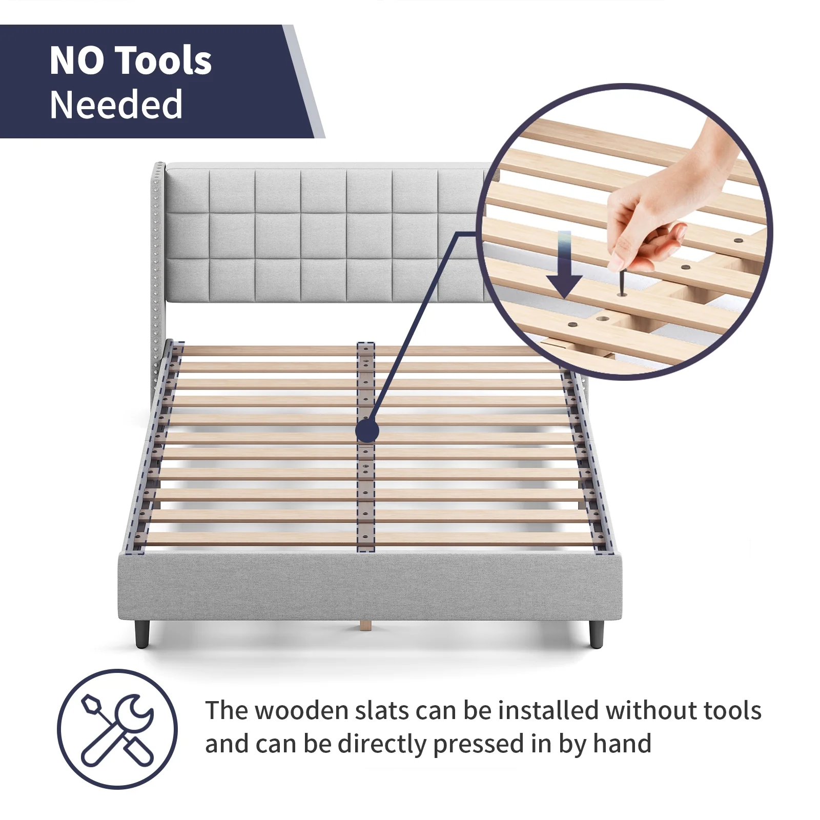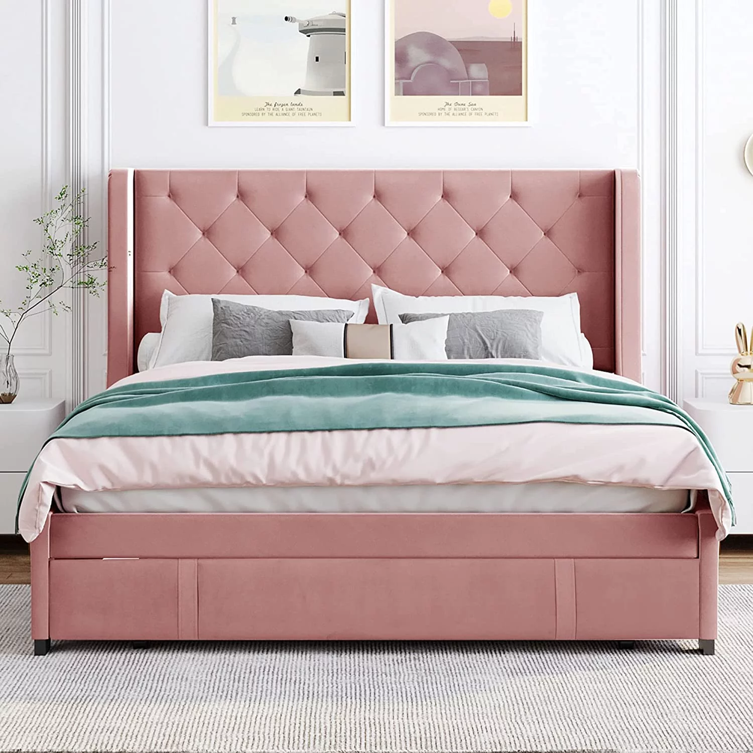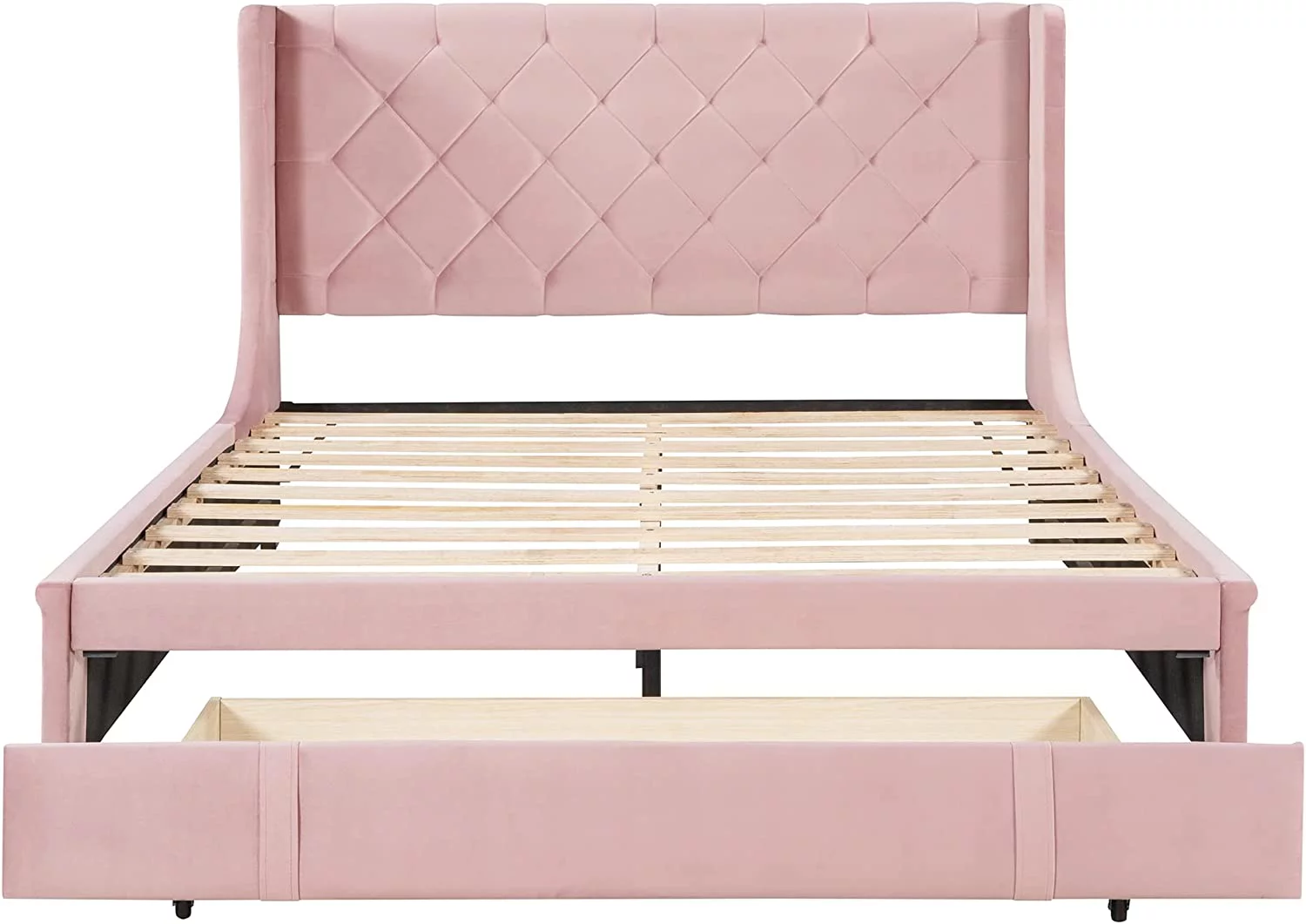Modern Champagne Faux Diamond Button Tufted HB Finish 4pc Full Size Bedroom Set Bed Dresser Mirror Nightstand