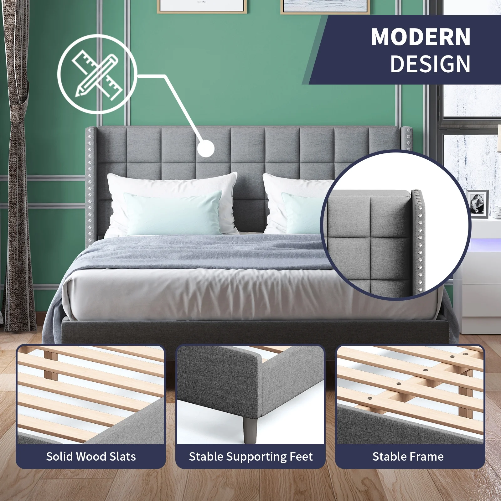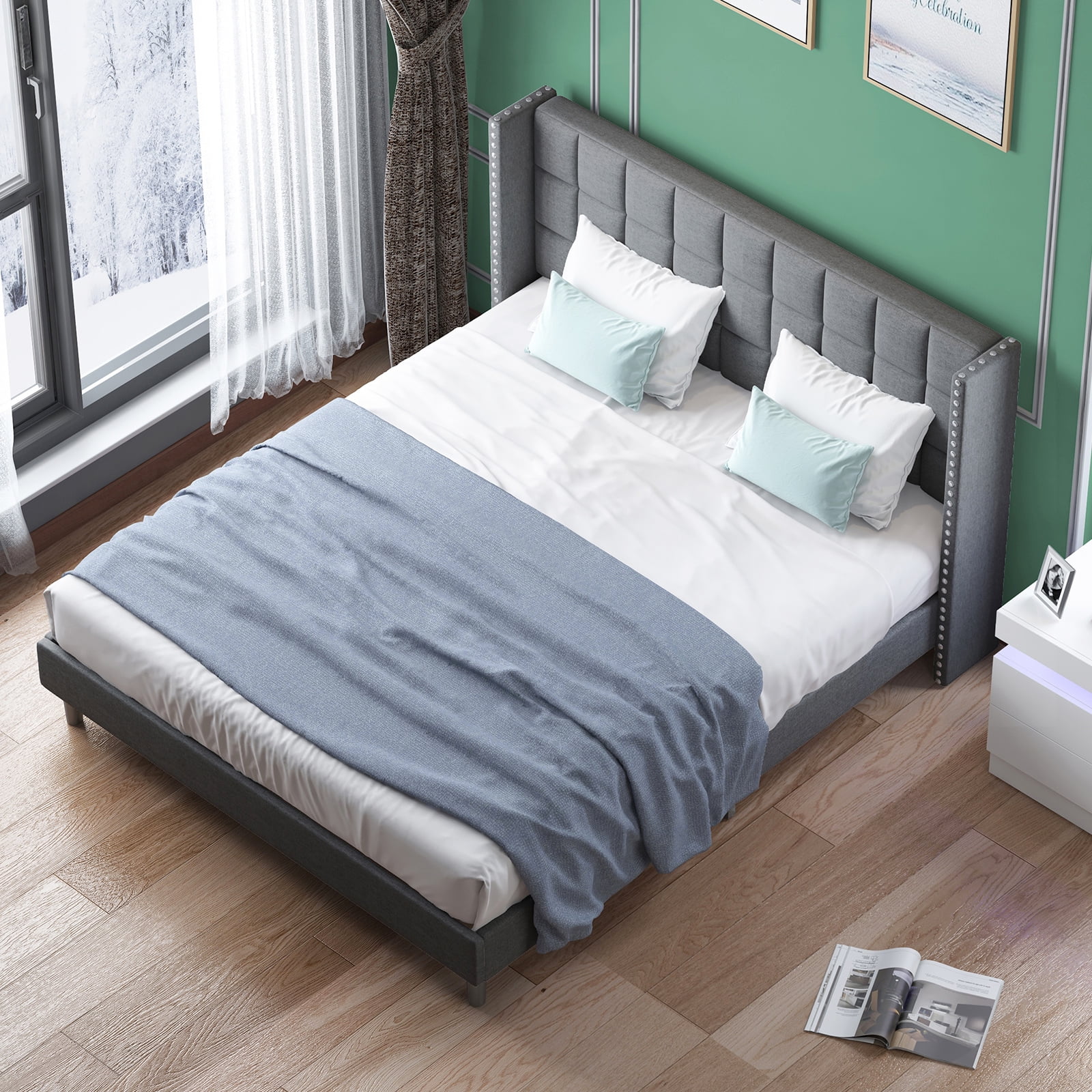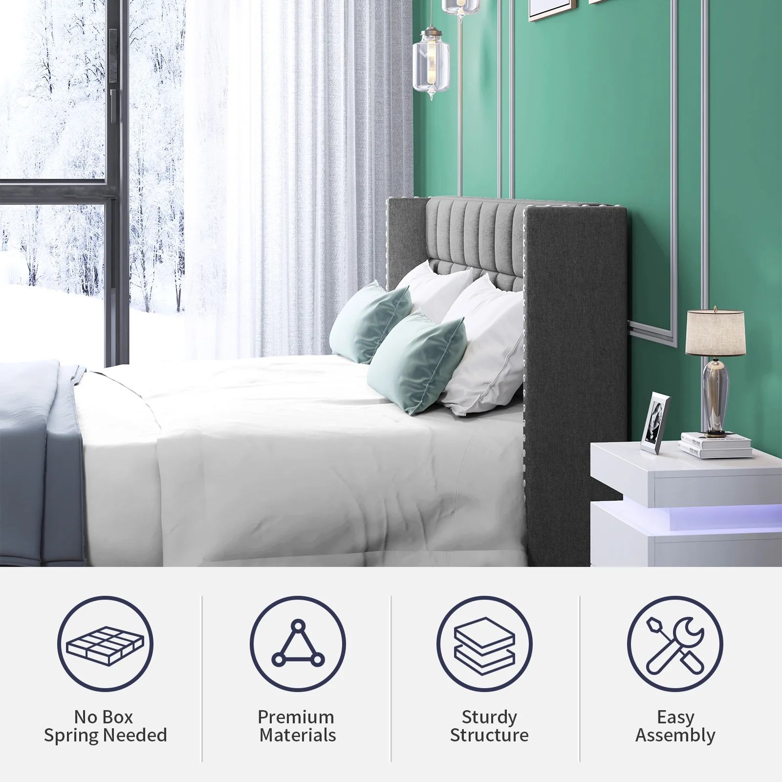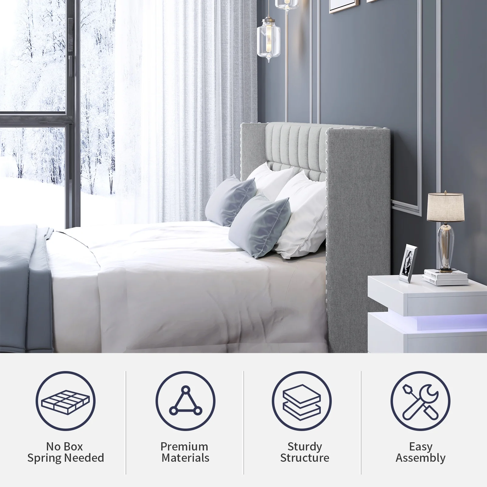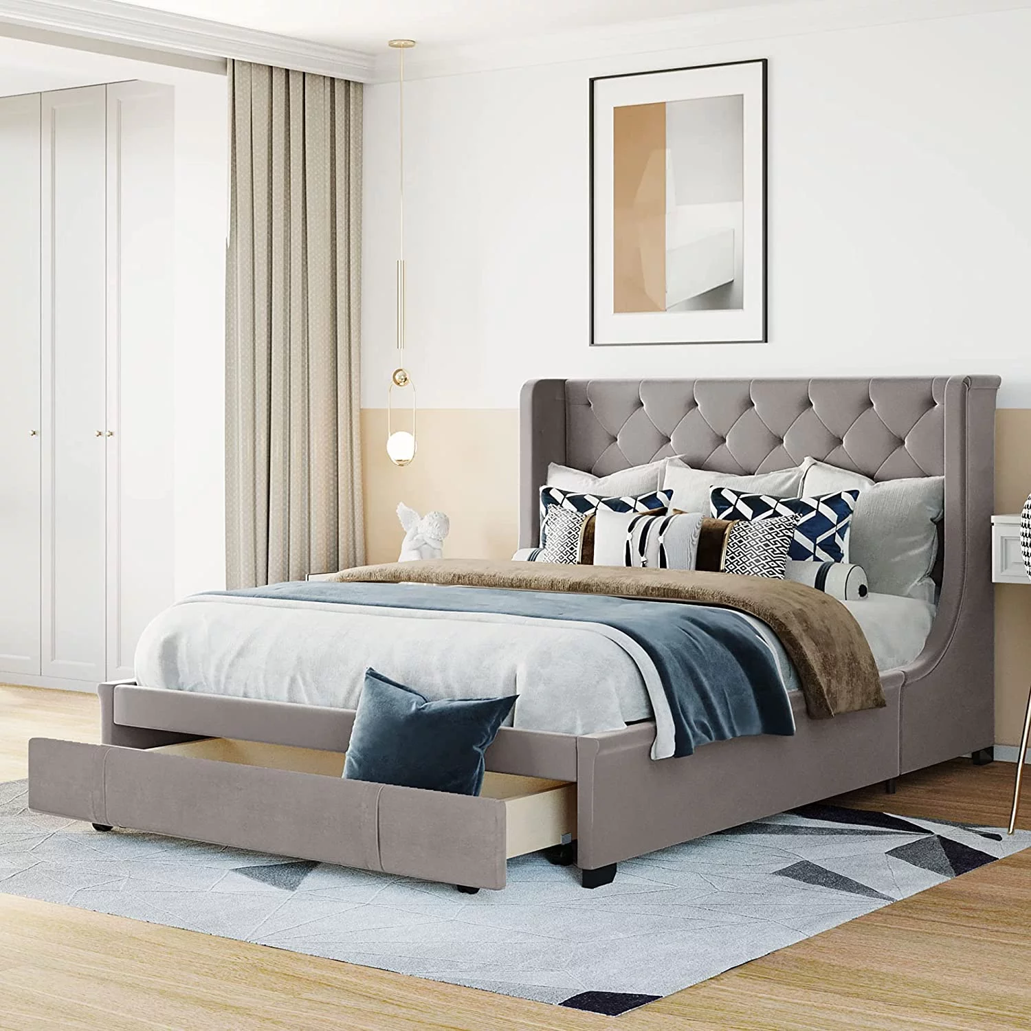 2 Piece Fannin Platform Bedroom Set - Mist Beige, Black & Urban Gray
