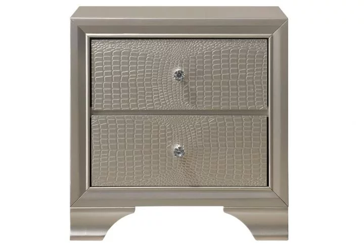 Modern Champagne Finish Faux Diamond Button Tufted HB 3pc Full Size Bedroom Set Bed and 2x Nightstands Furniture