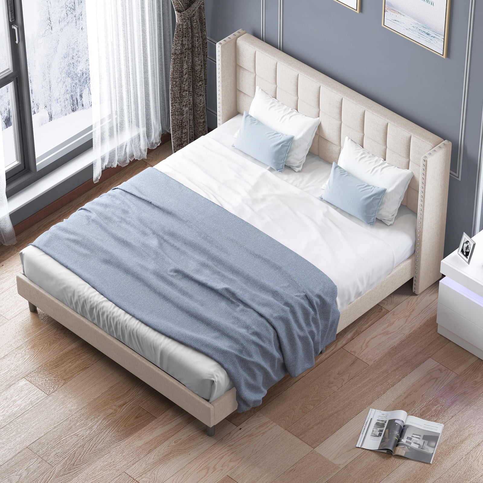 East West Furniture 2-piece Wood Platform Full Bedroom Set in Denim Blue/Cream
