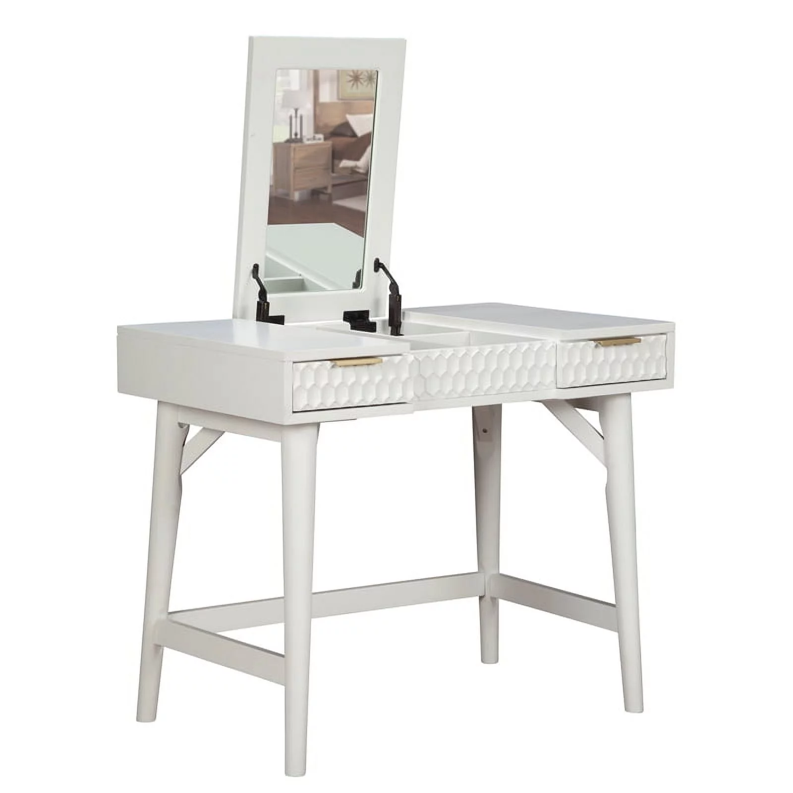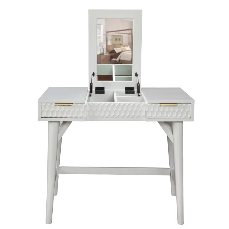 Home Square 2-Piece Set with Full Panel Bed & Bedroom Vanity in White