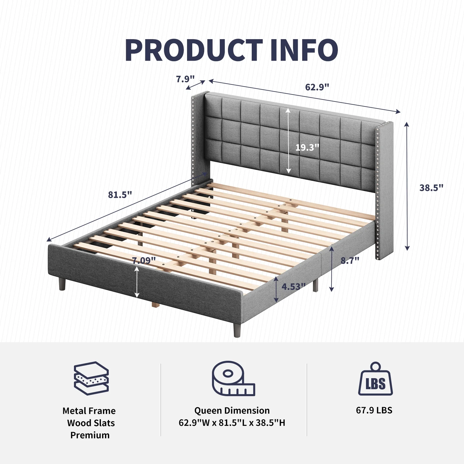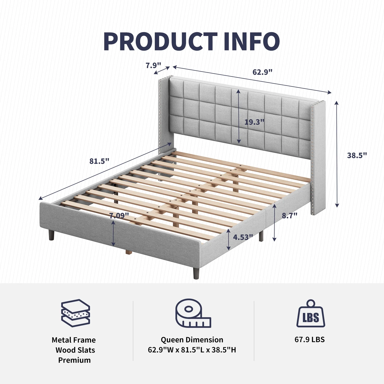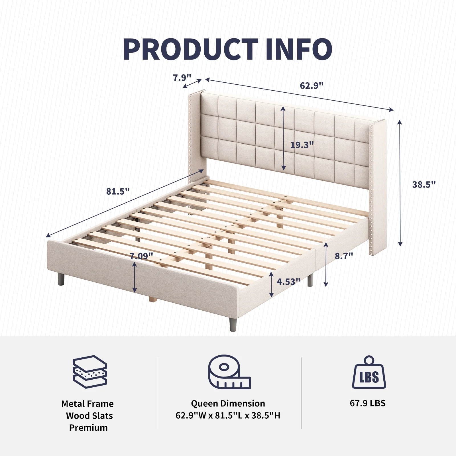 Modern Champagne Faux Diamond Button Tufted HB Finish 6pc Full Size Bedroom Set Bed Dresser Mirror Nightstand Chest