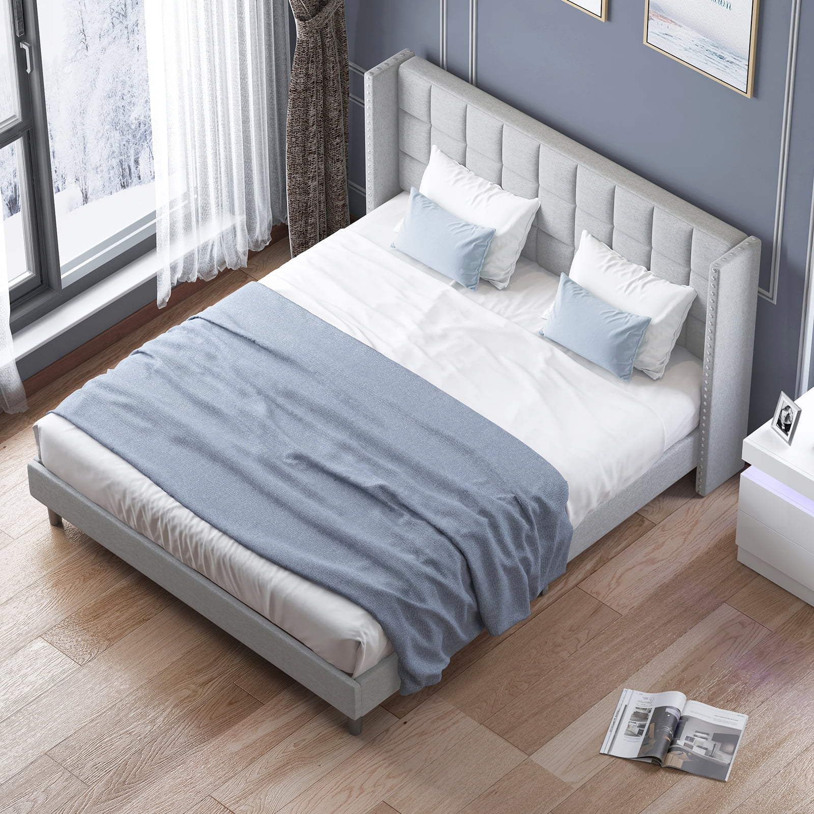 East West Furniture Nolan 2 Pieces Wood Full Bedroom Set in White/Gray