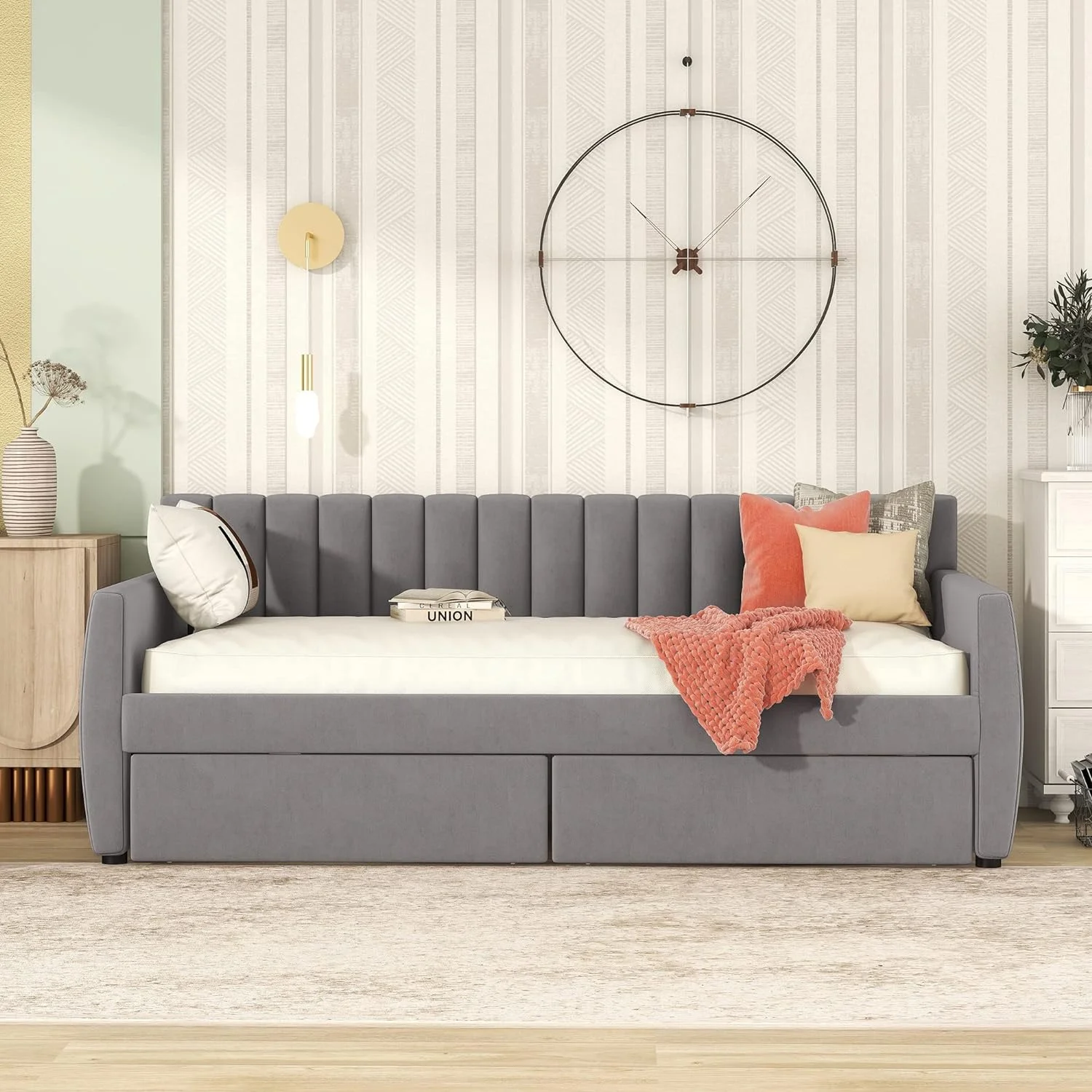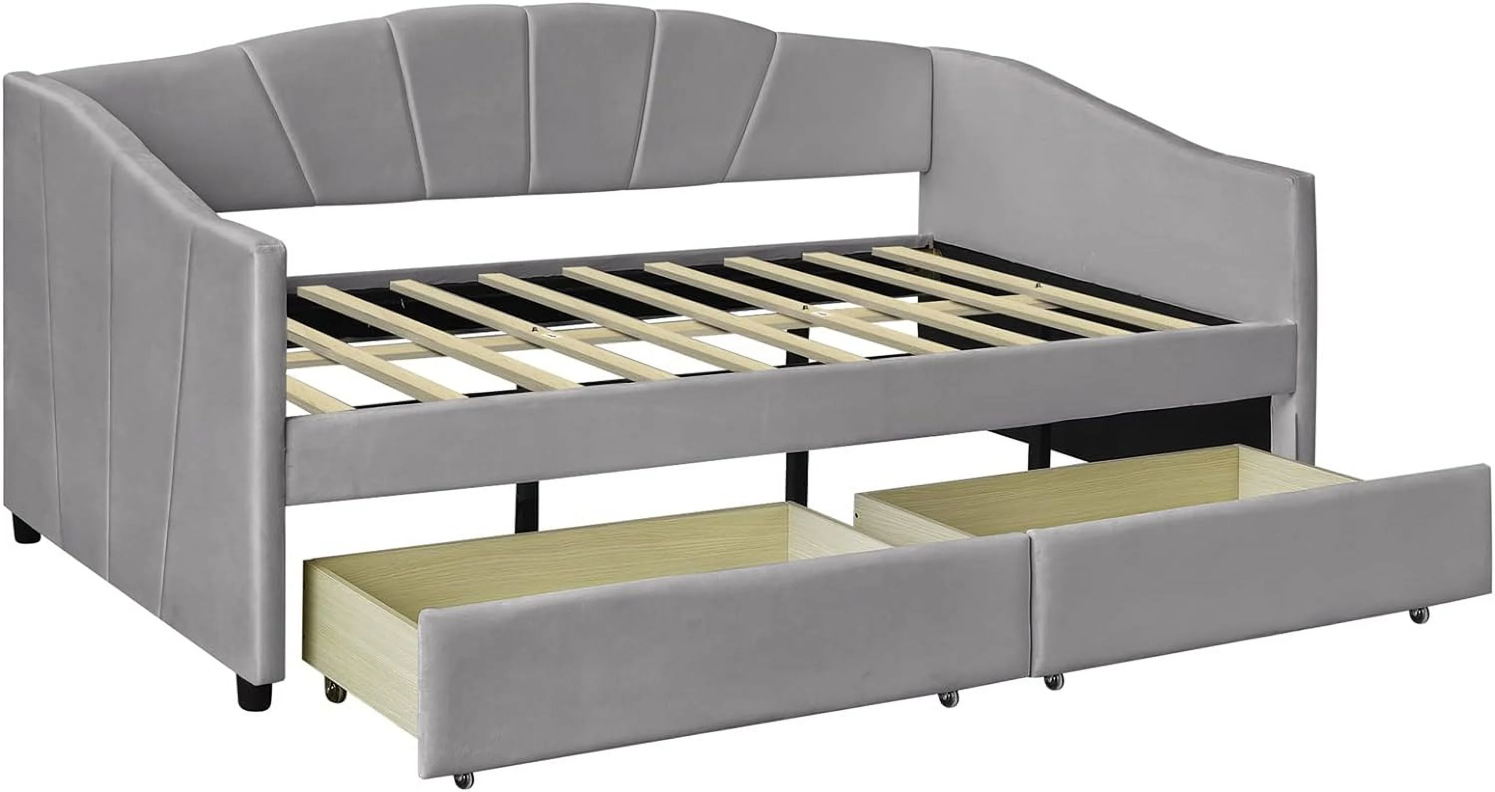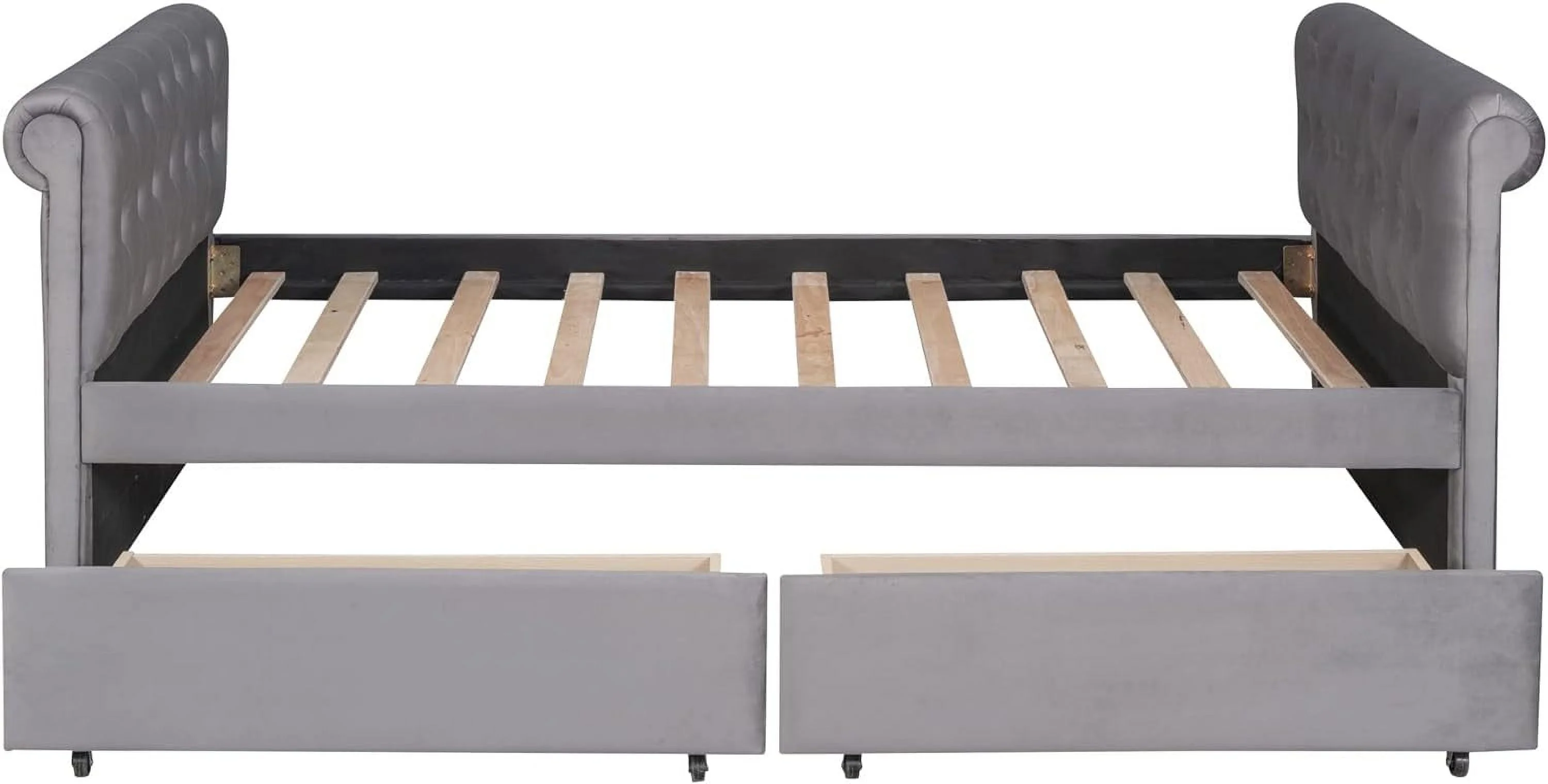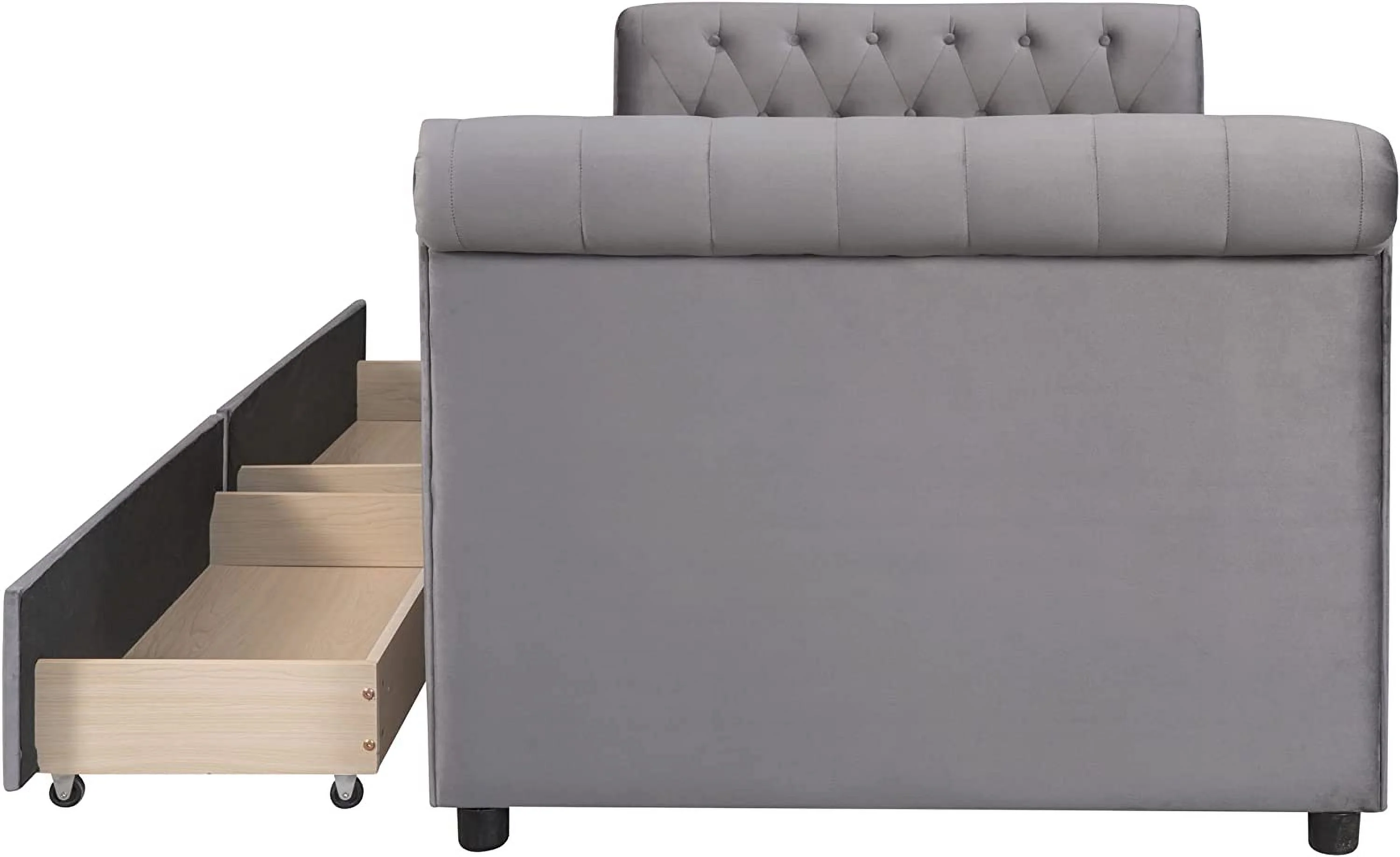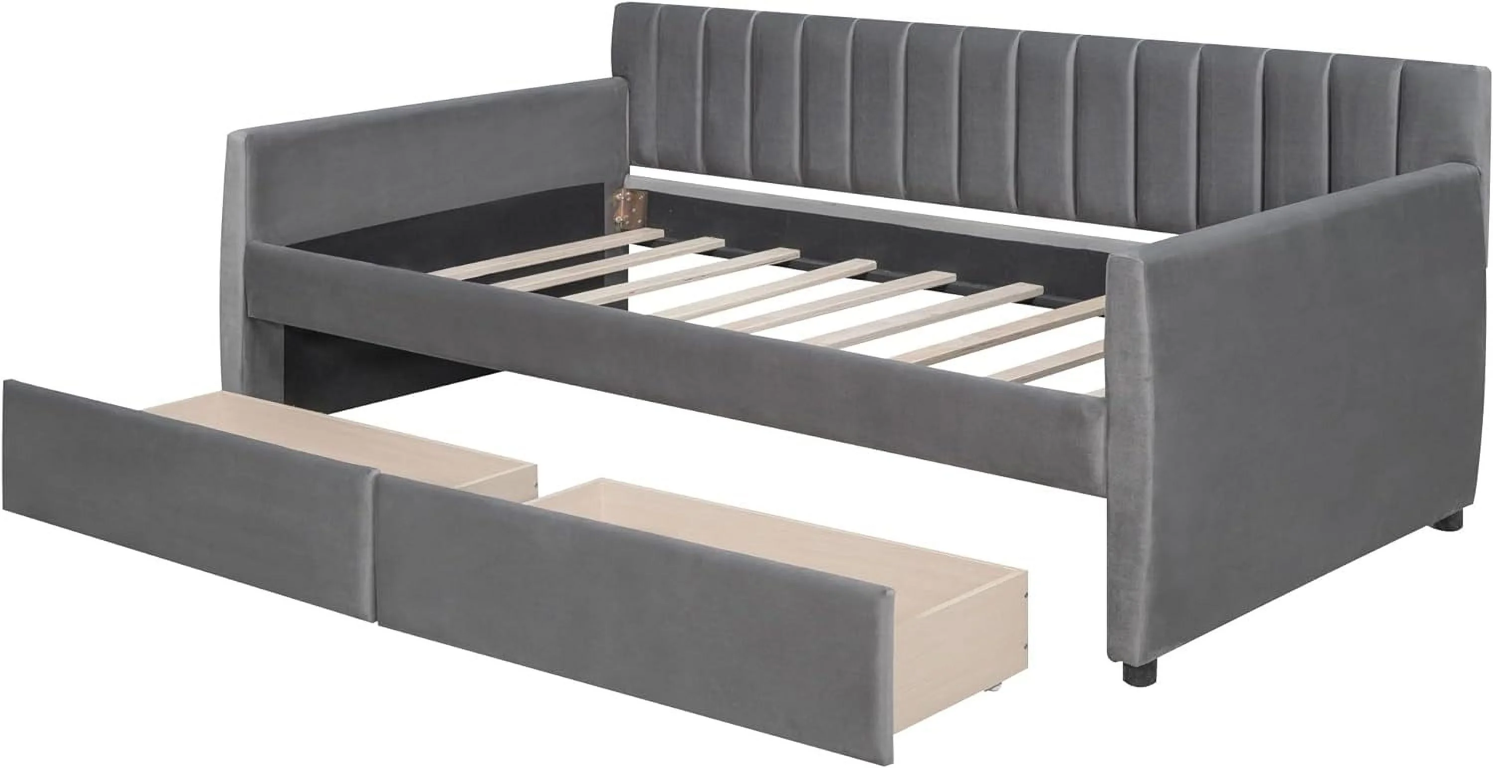 Daybed With Storage Drawers Upholstered Sofa Bed Frame Velvet Gray Day Beds For Bedroom Living Room Guest Room