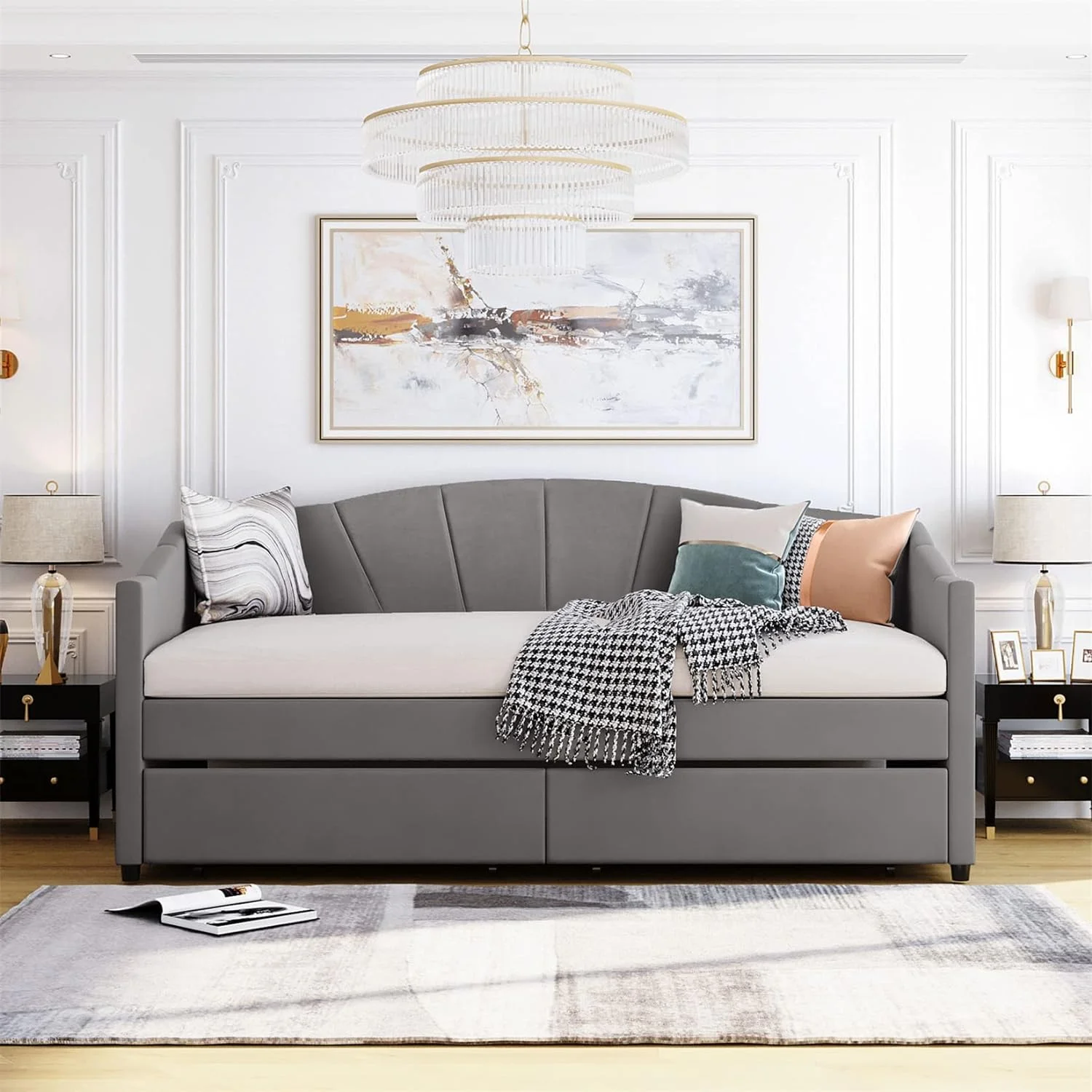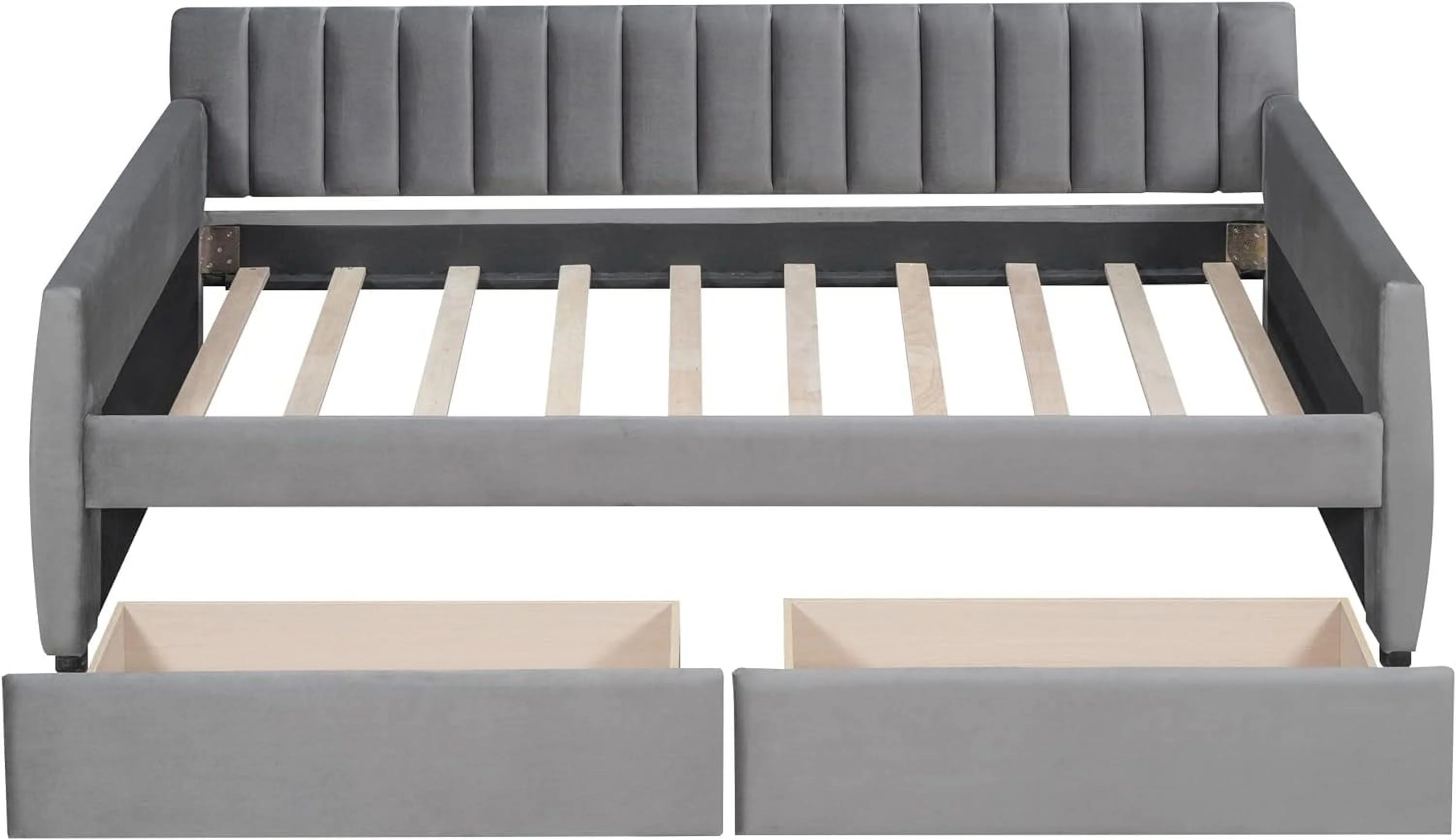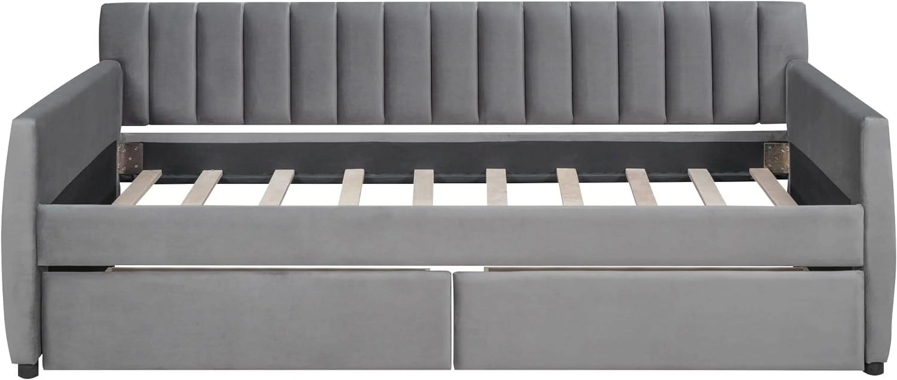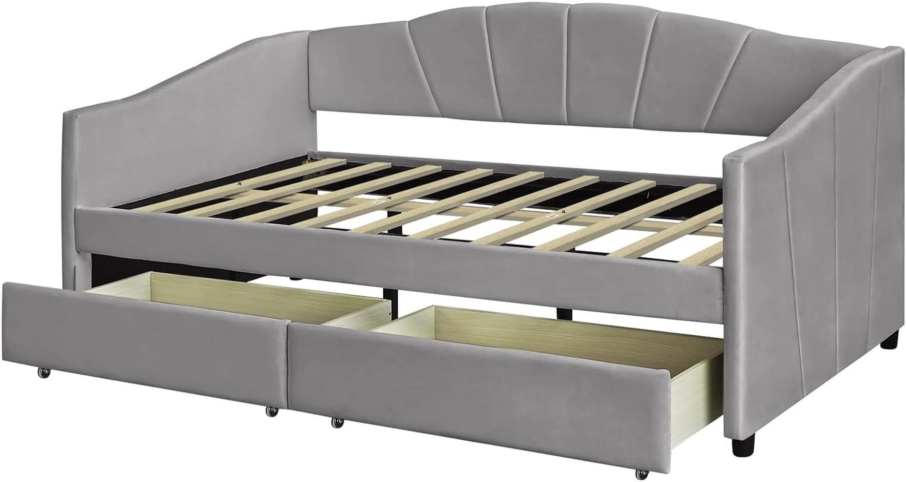 Daybed With Storage Drawers Upholstered Sofa Bed Frame Velvet Gray Day Beds For Bedroom Living Room Guest Room