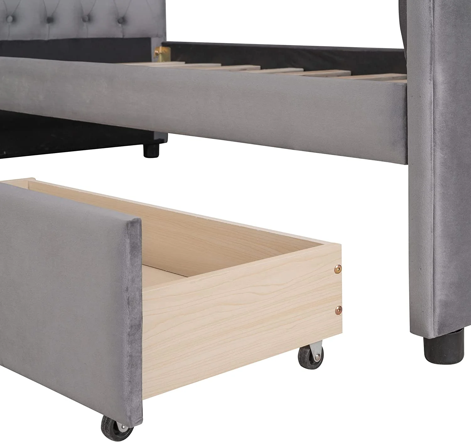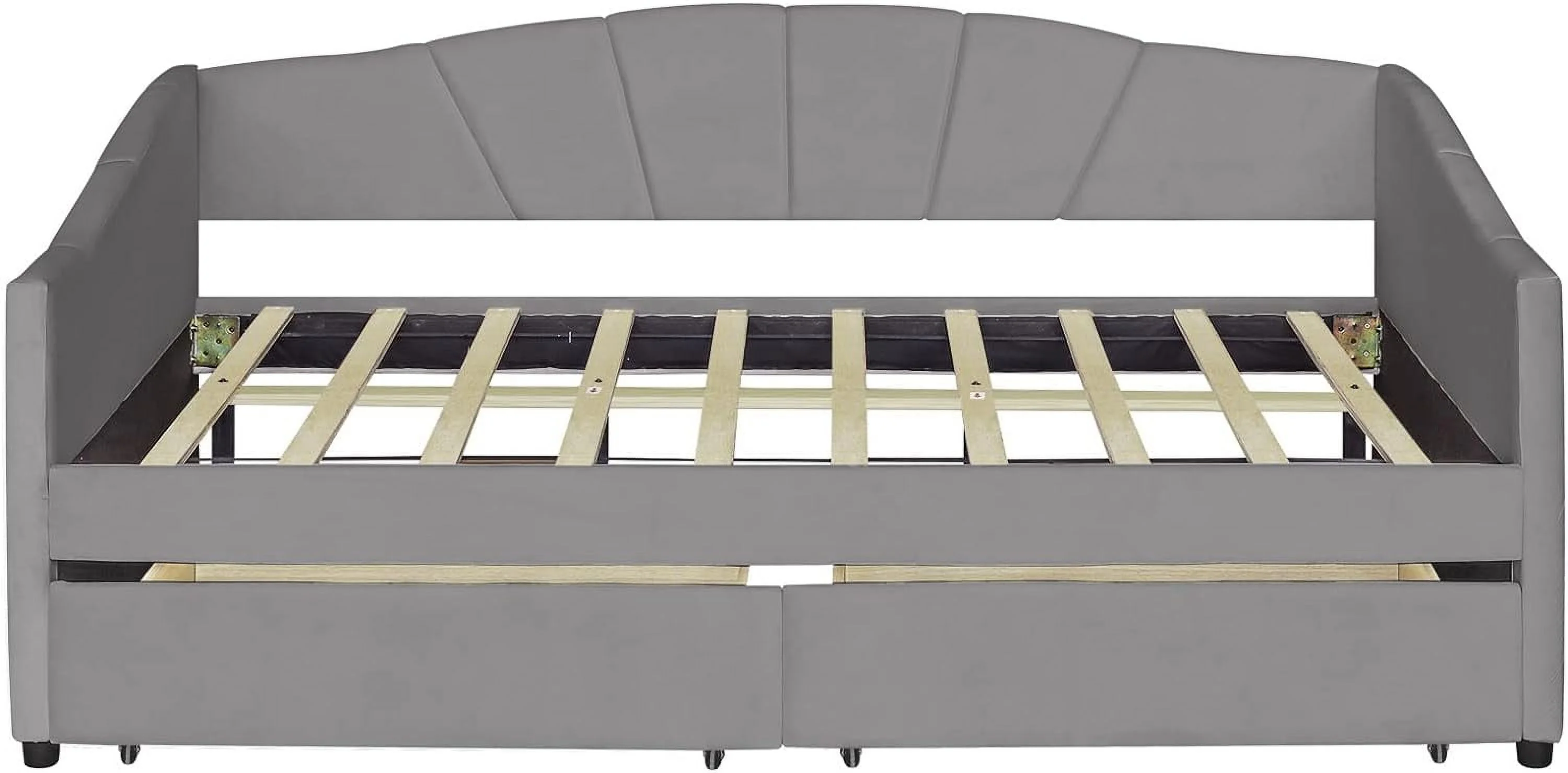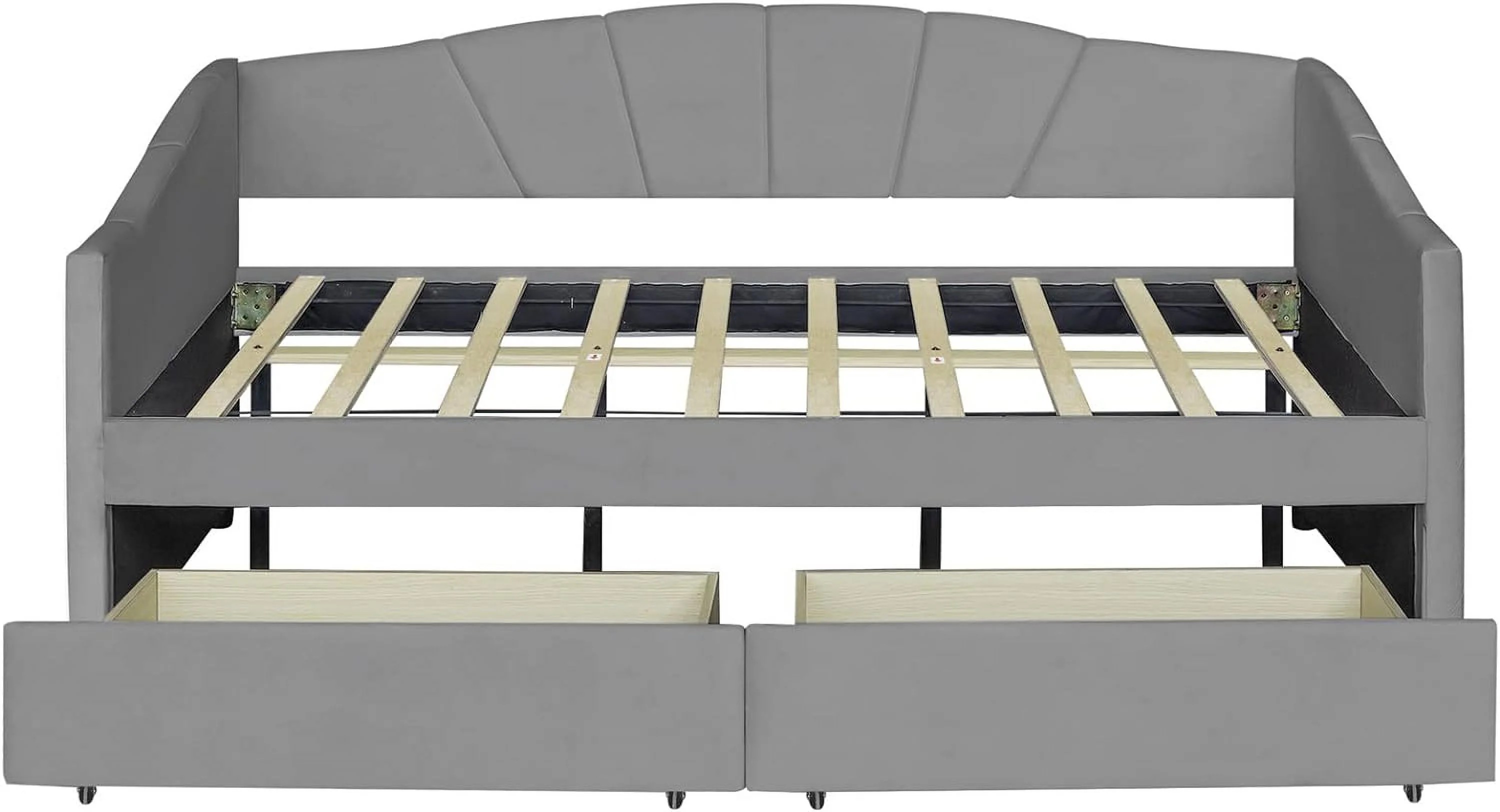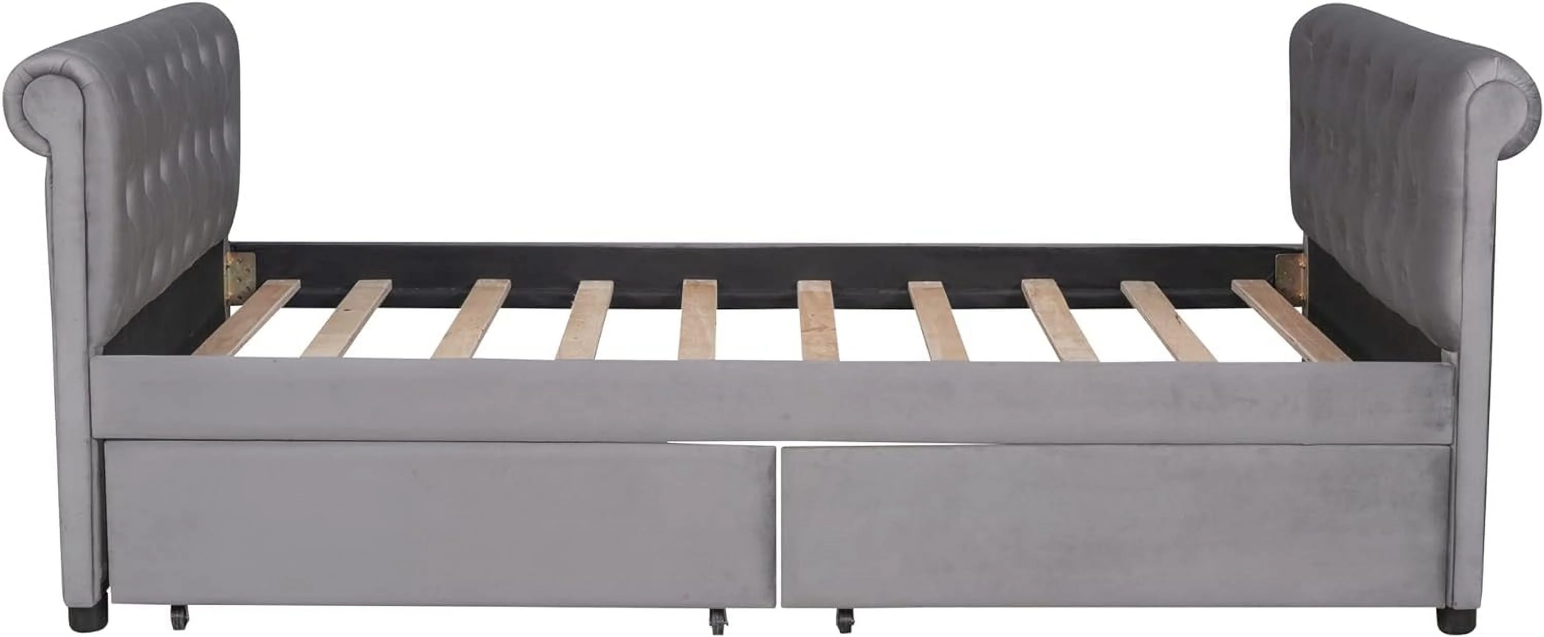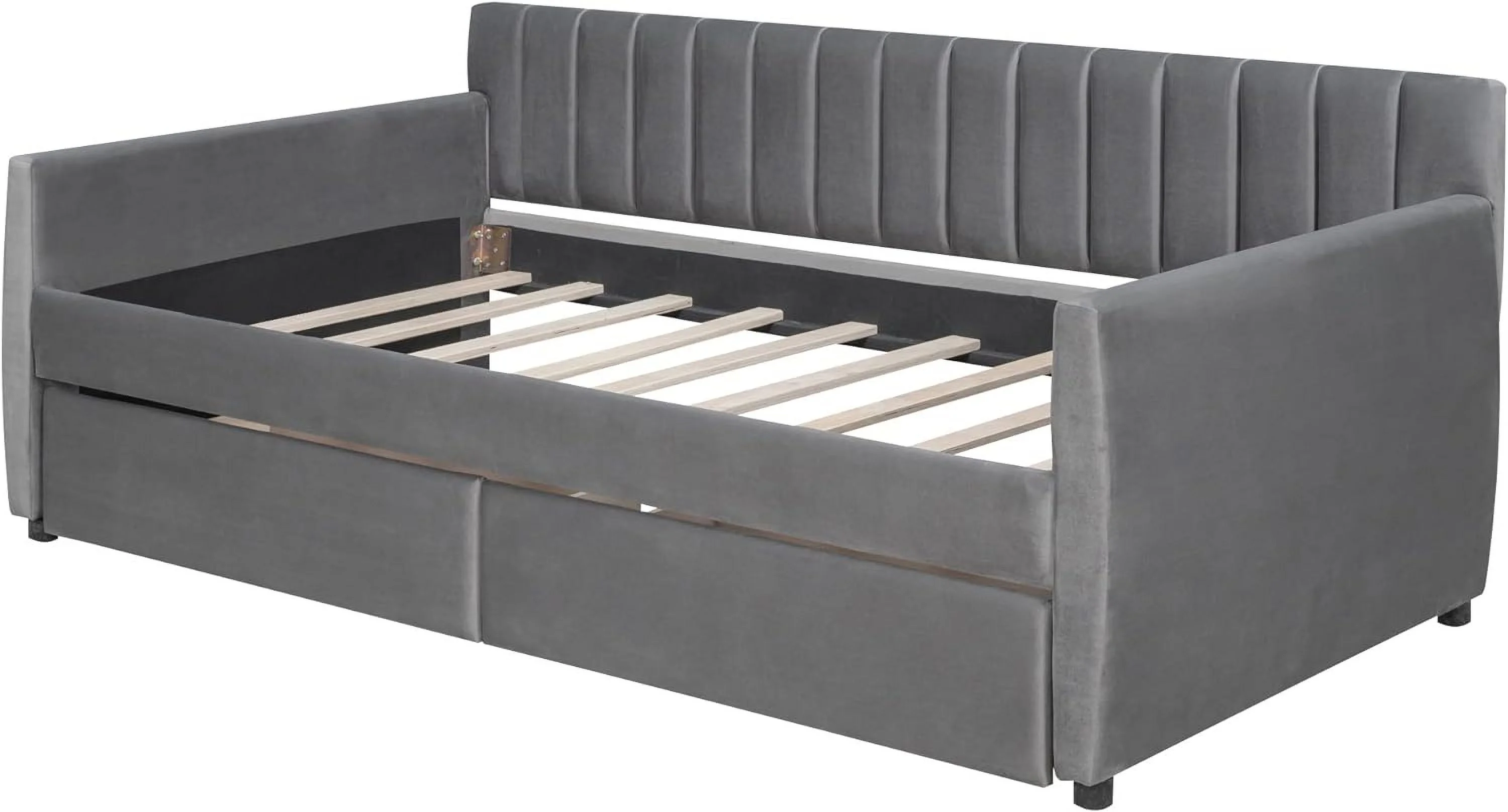 Daybed With Storage Drawers Upholstered Sofa Bed Frame Velvet Gray Day Beds For Bedroom Living Room Guest Room