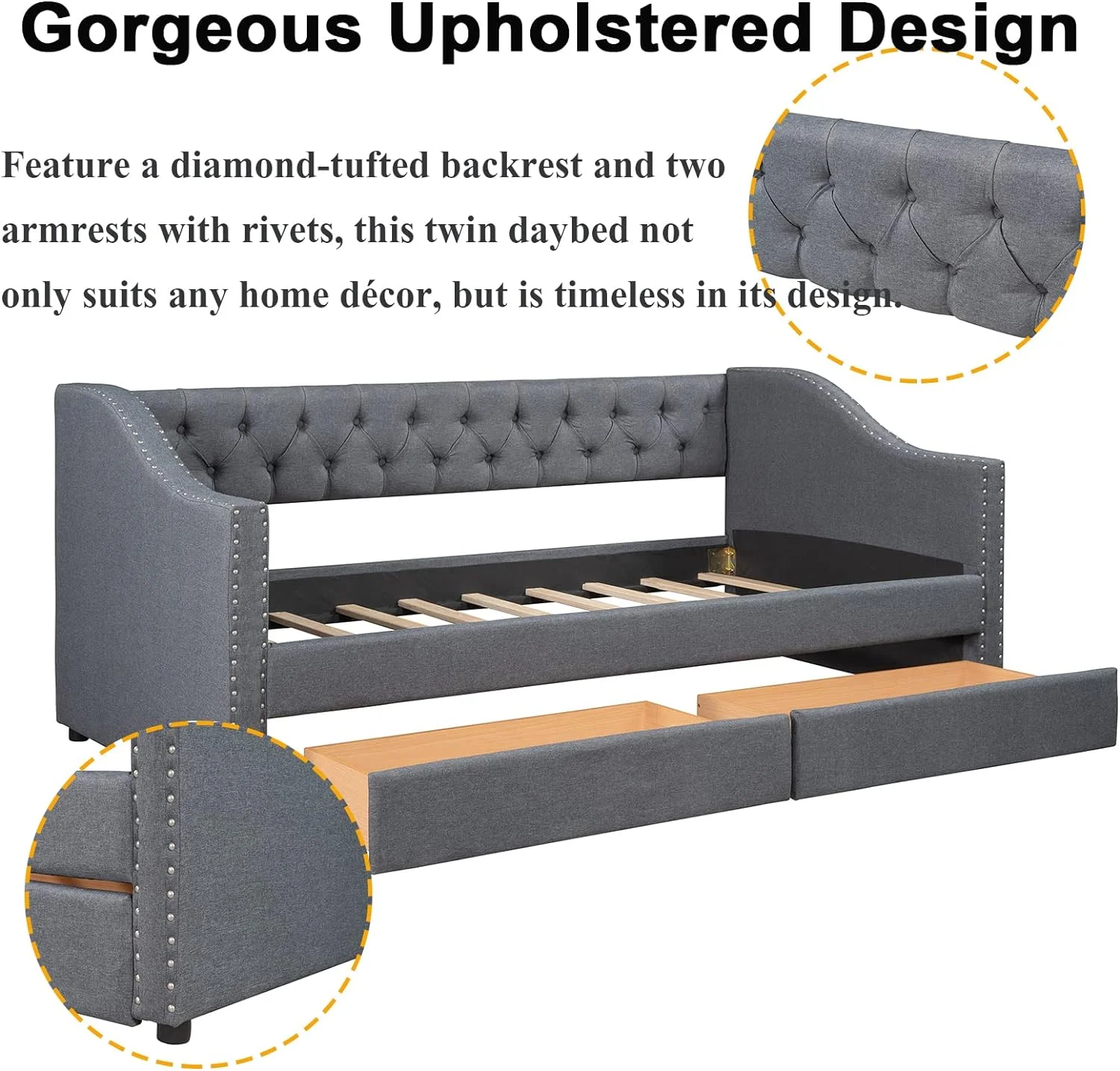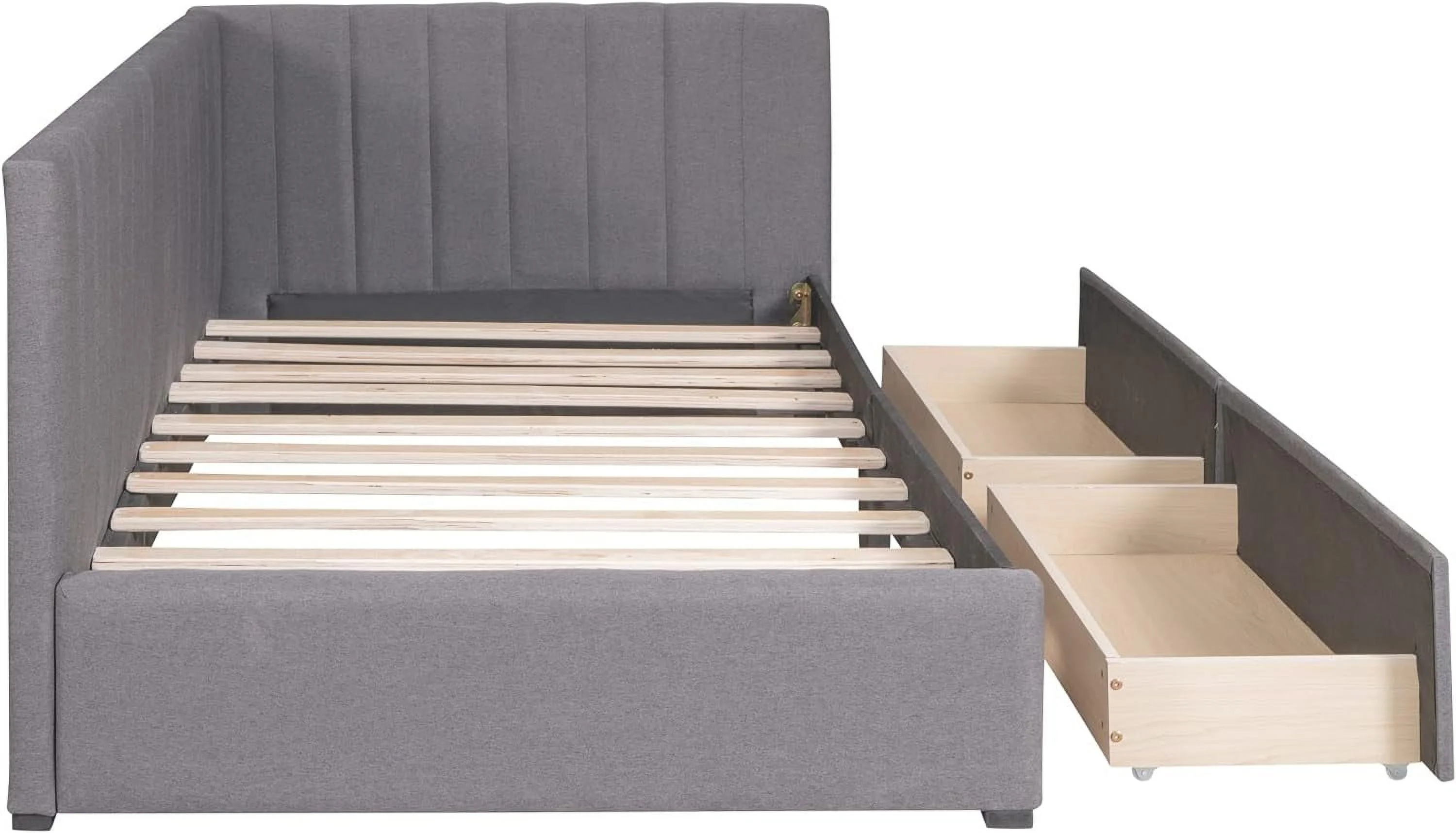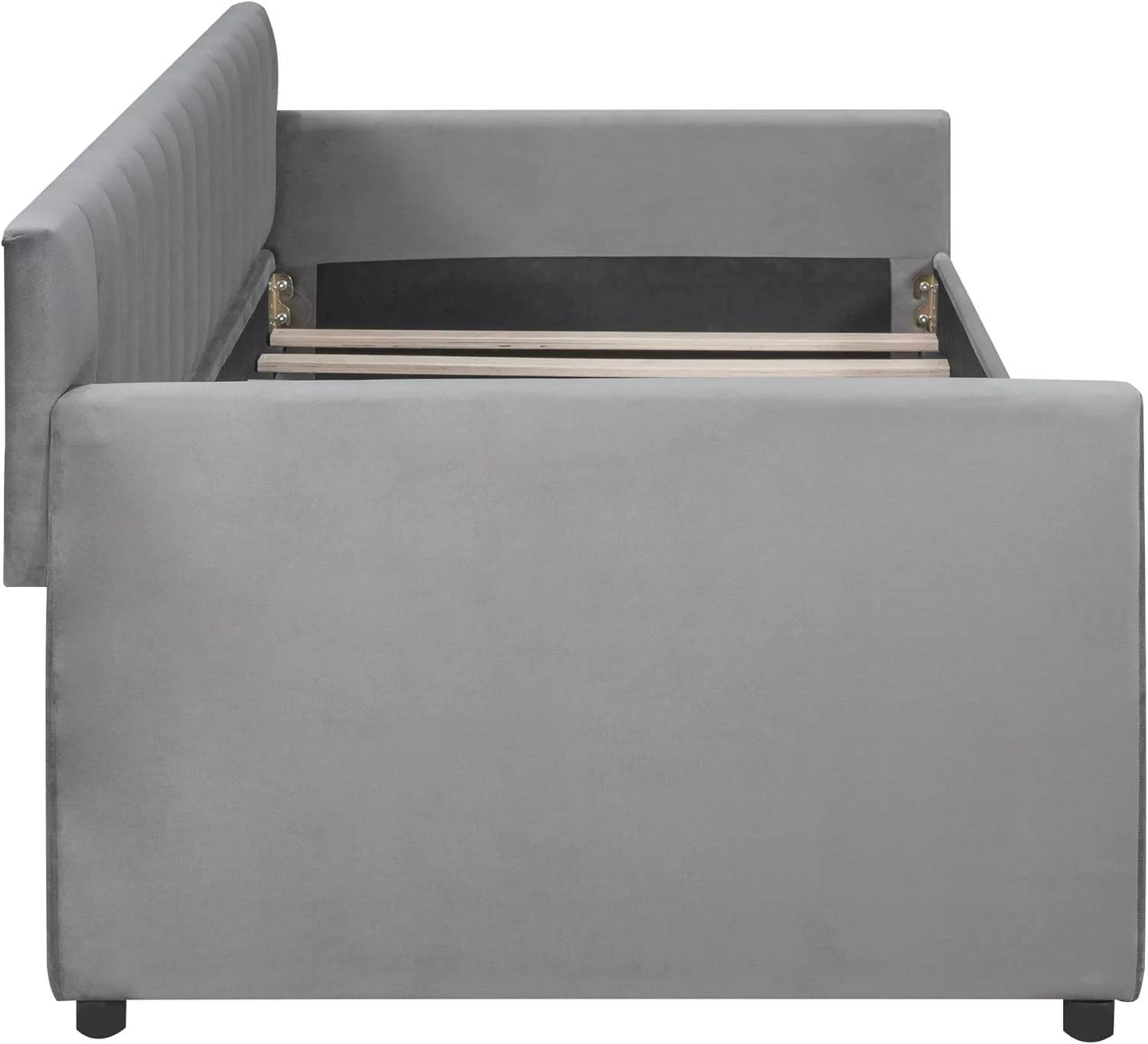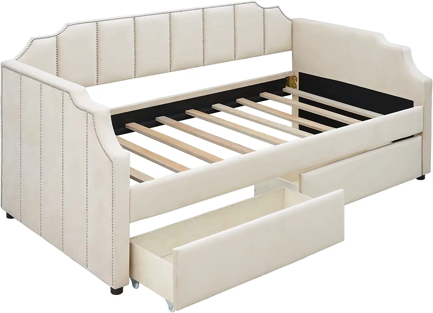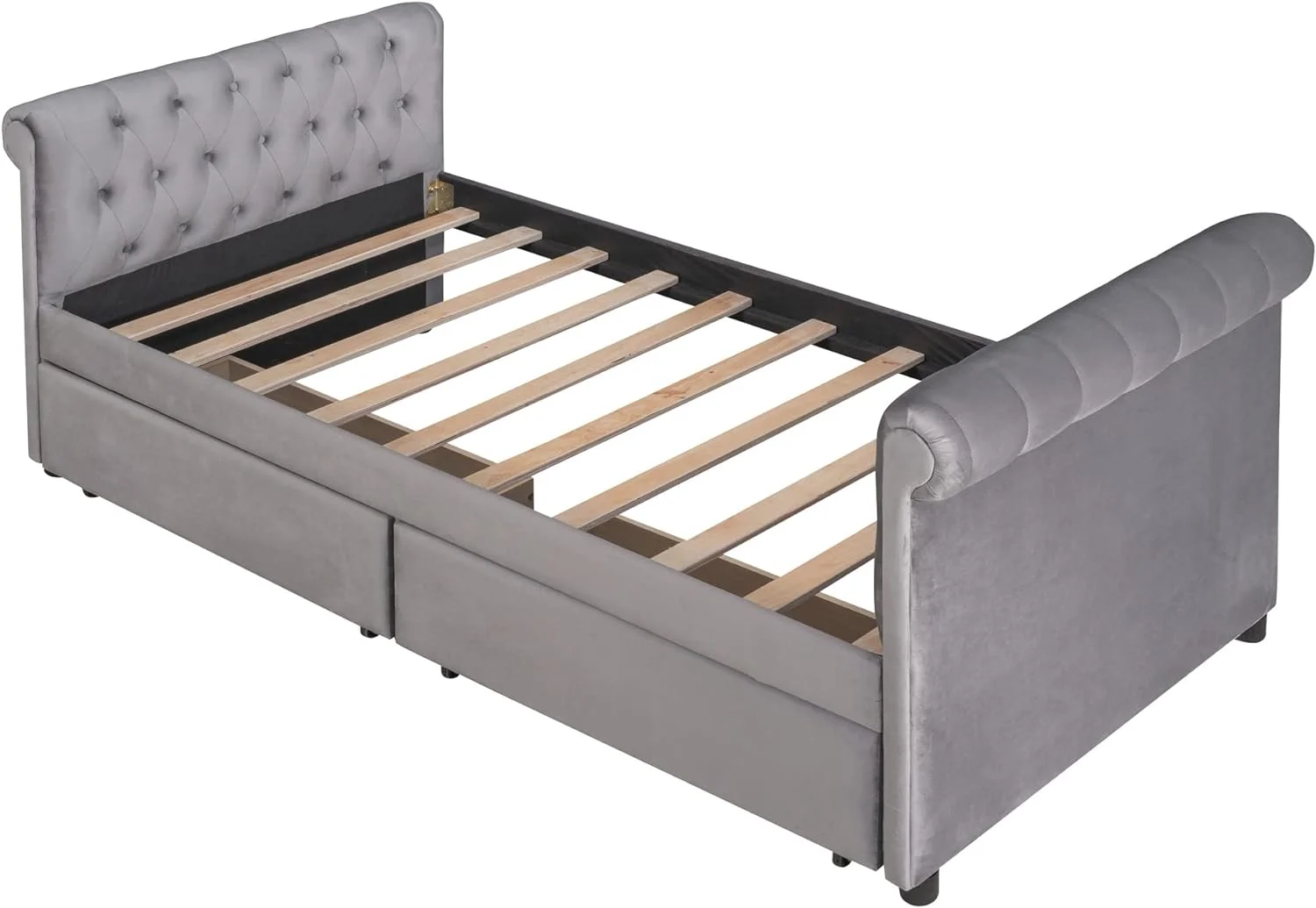 Daybed With Storage Drawers Upholstered Sofa Bed Frame Velvet Gray Day Beds For Bedroom Living Room Guest Room