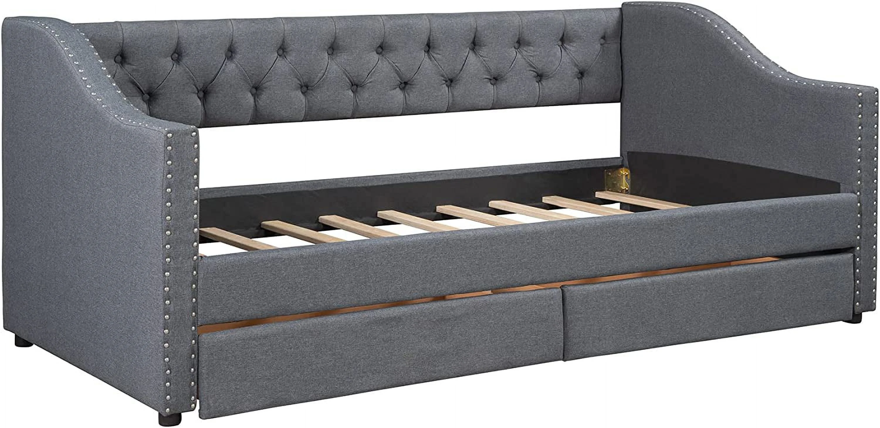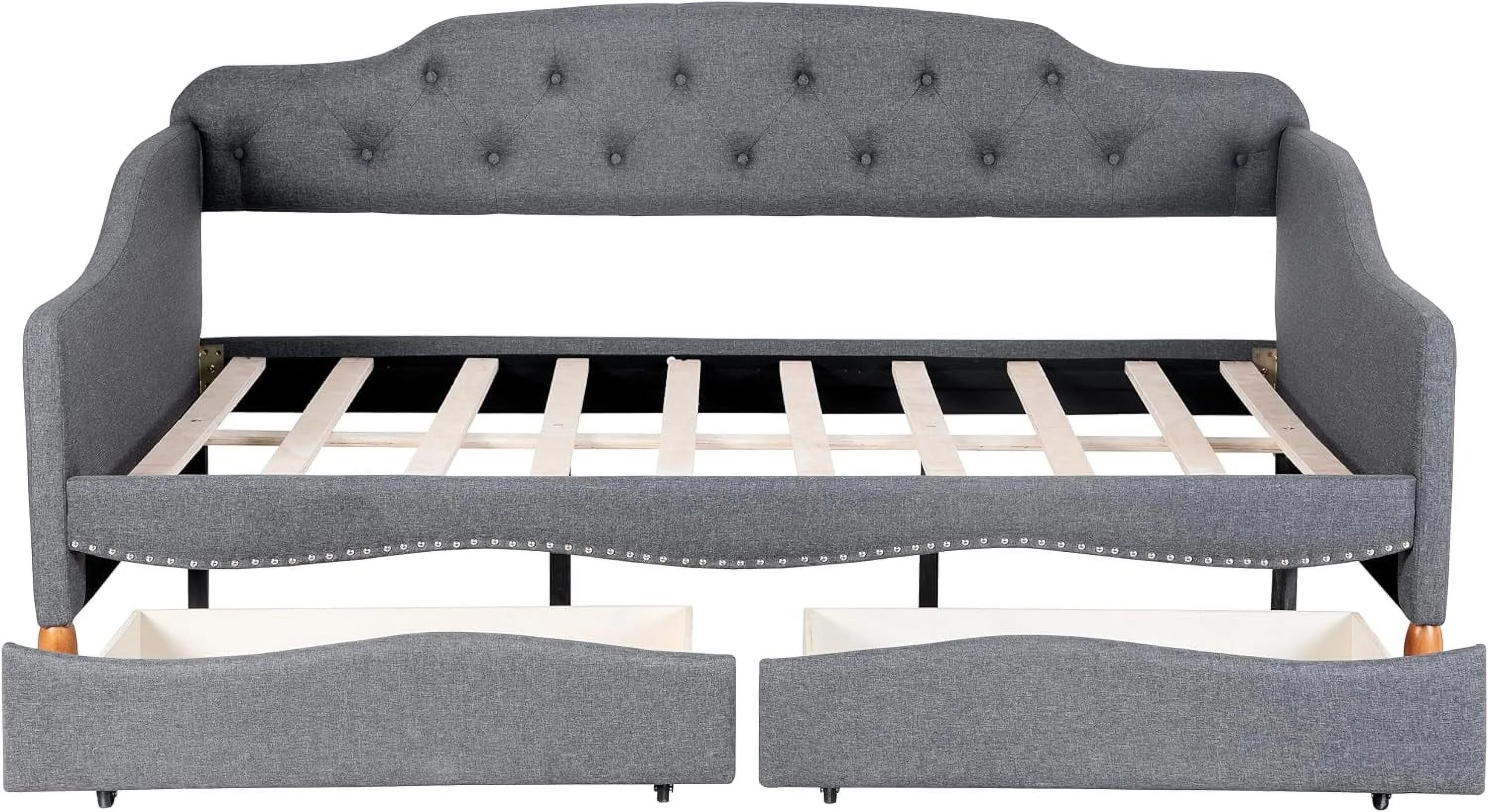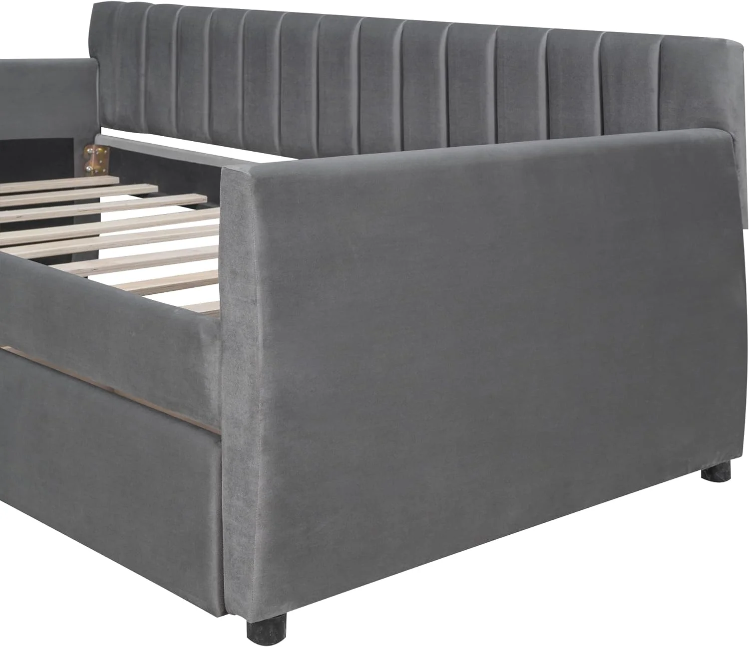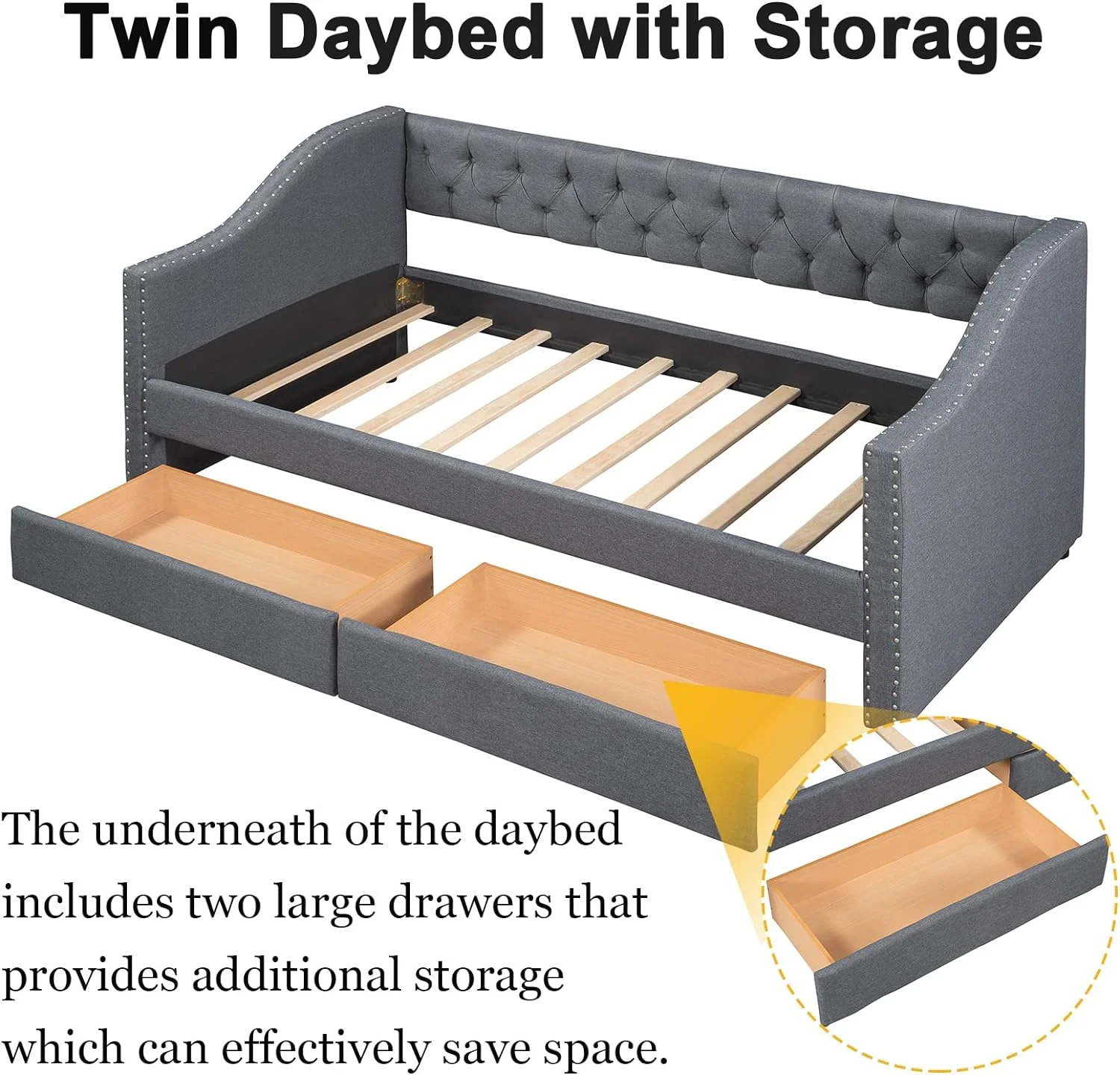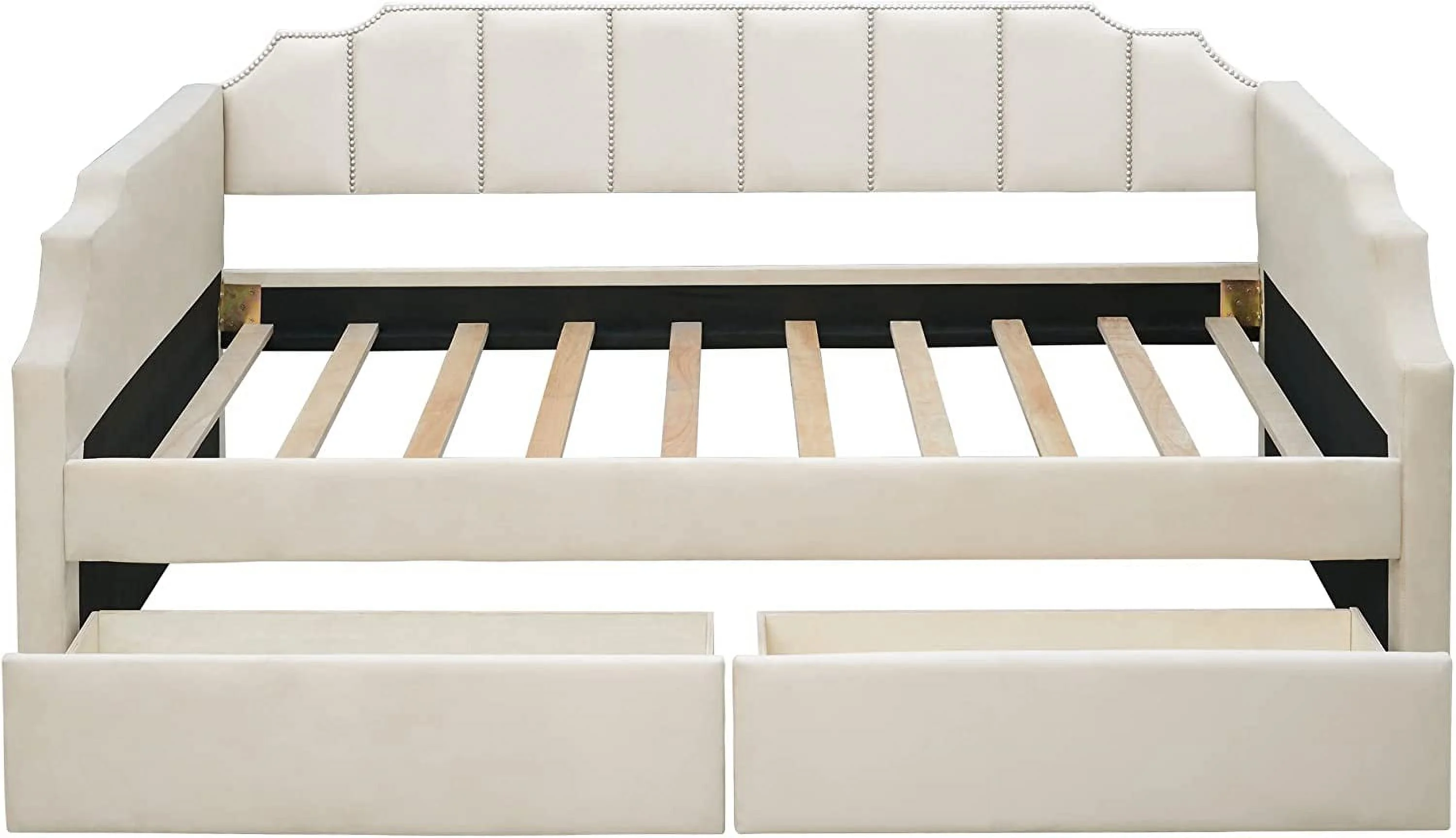 Daybed With Storage Drawers Upholstered Sofa Bed Frame Velvet Gray Day Beds For Bedroom Living Room Guest Room