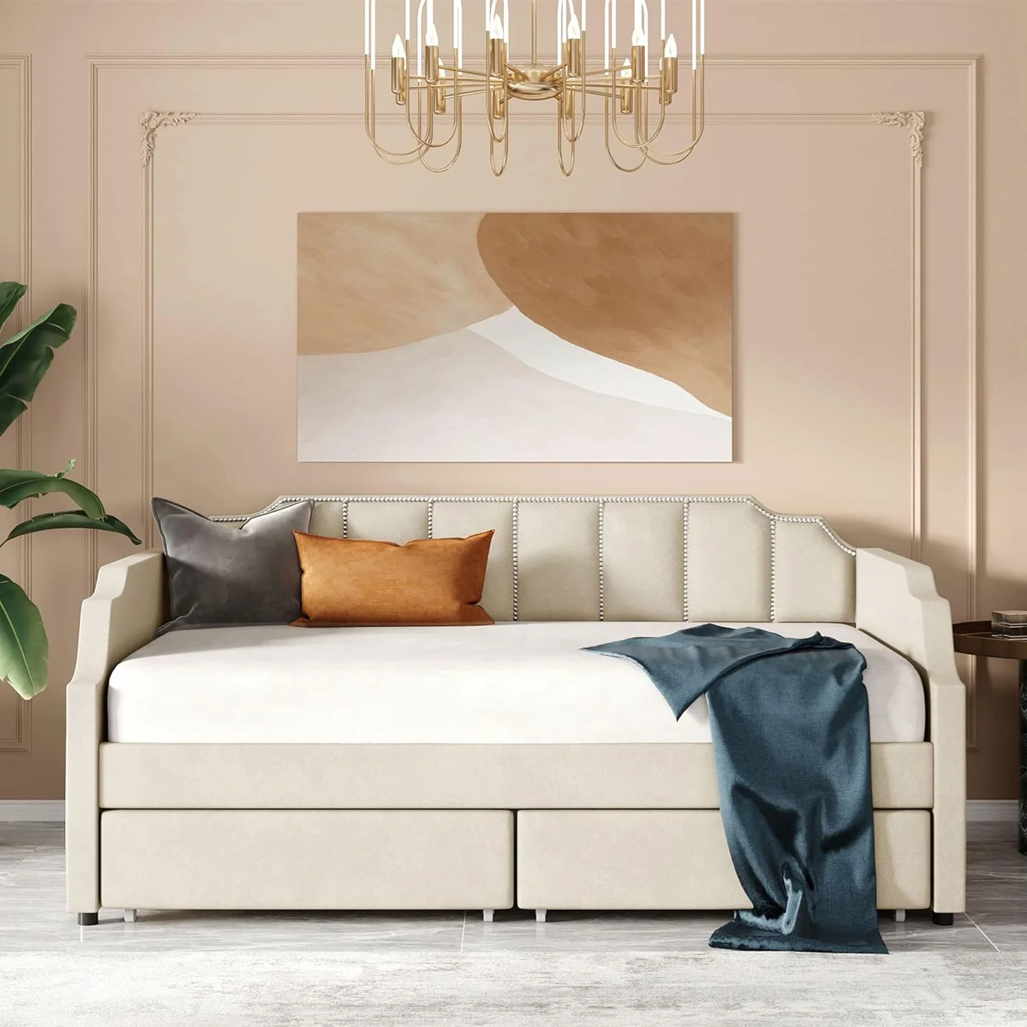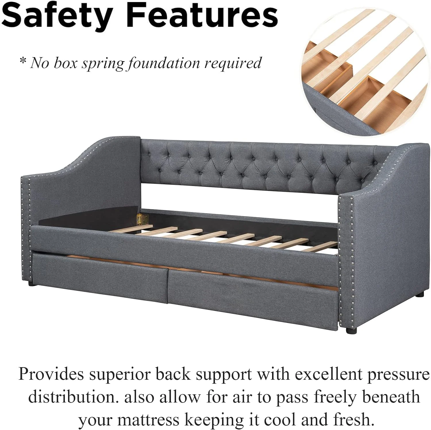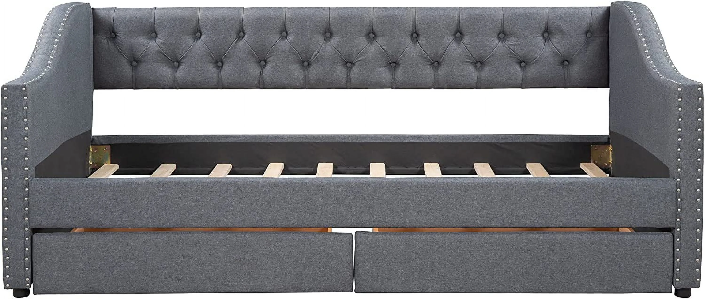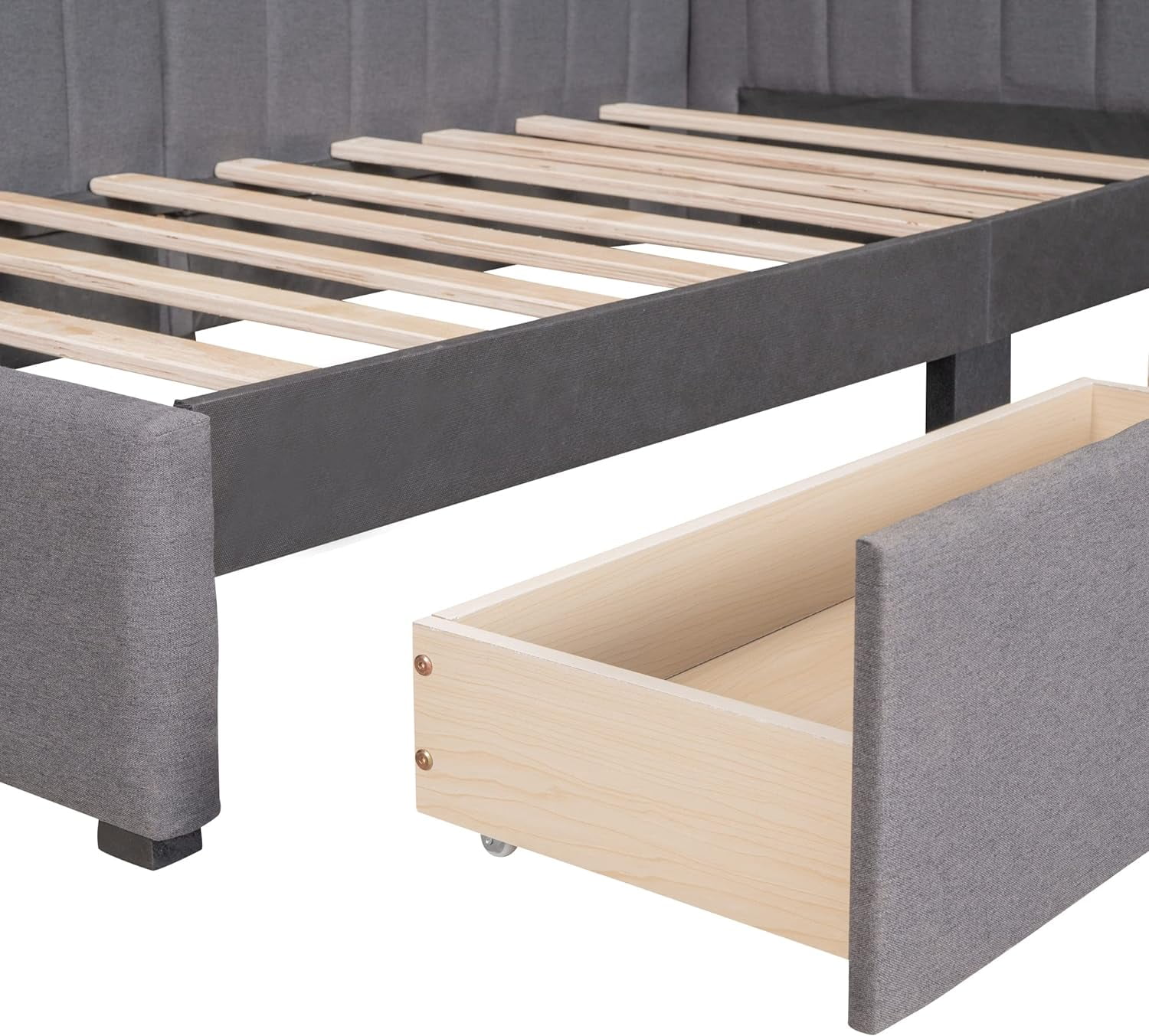 Daybed With Storage Drawers Upholstered Sofa Bed Frame Velvet Gray Day Beds For Bedroom Living Room Guest Room
