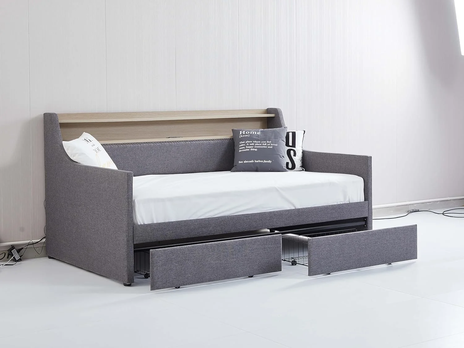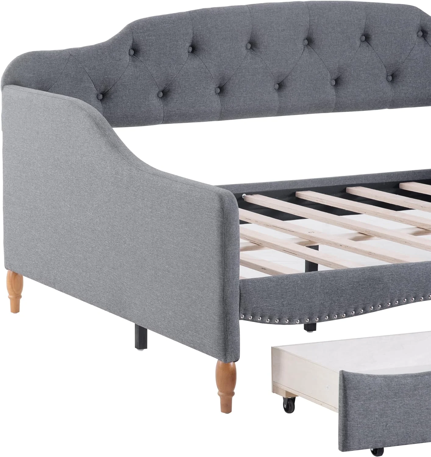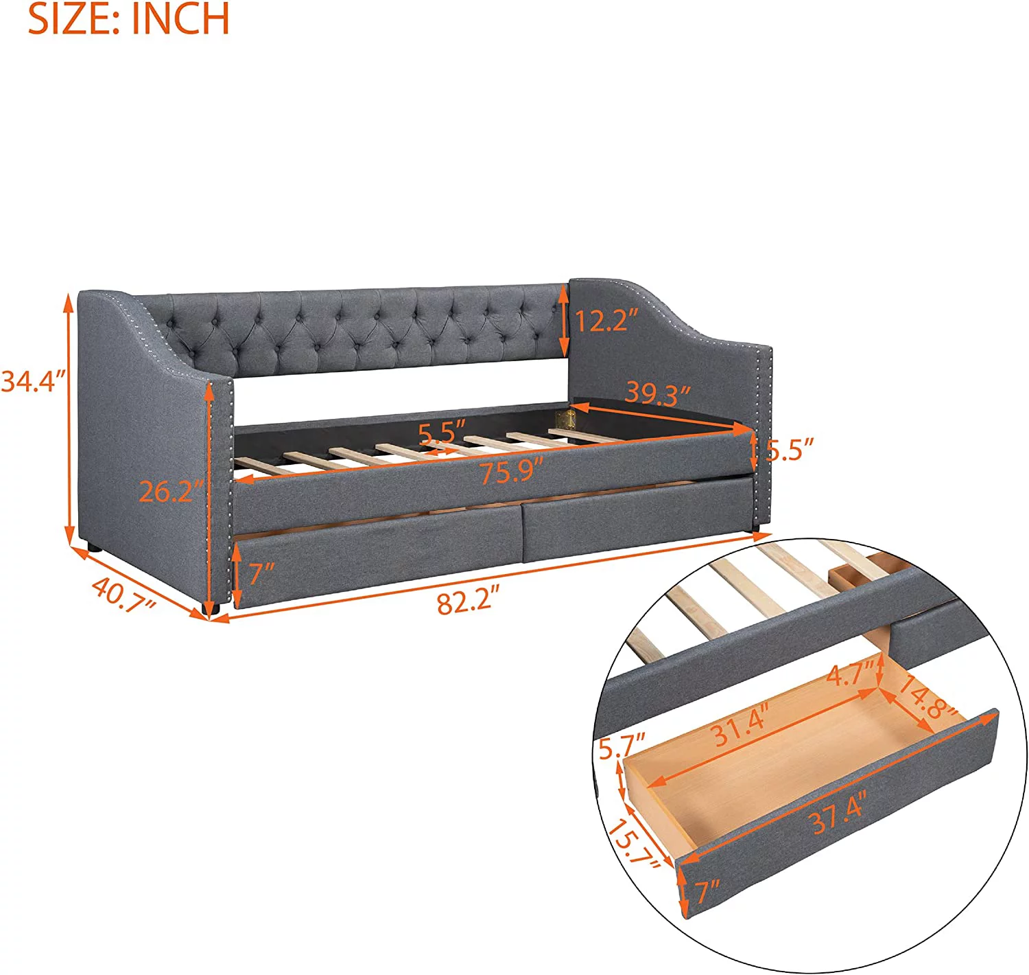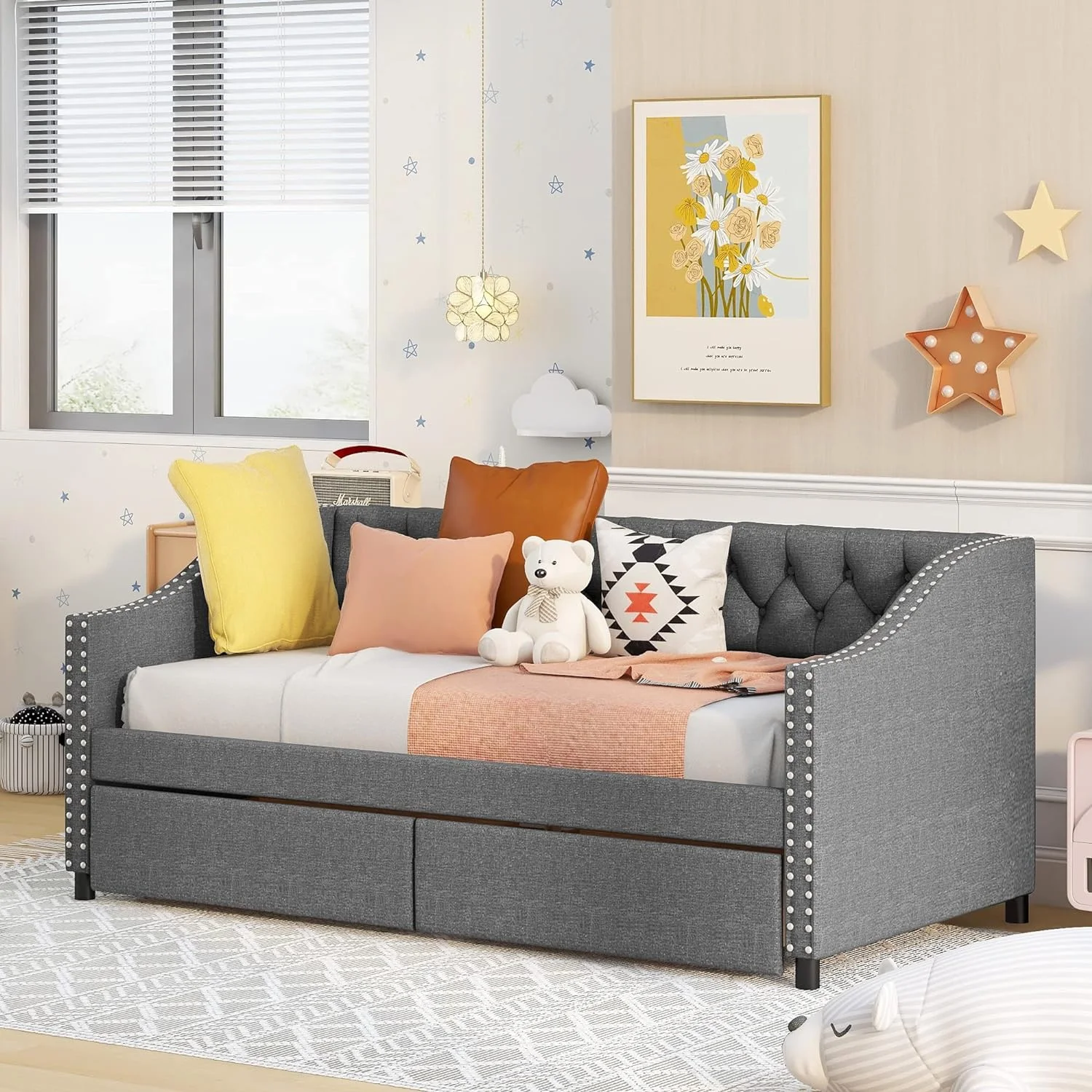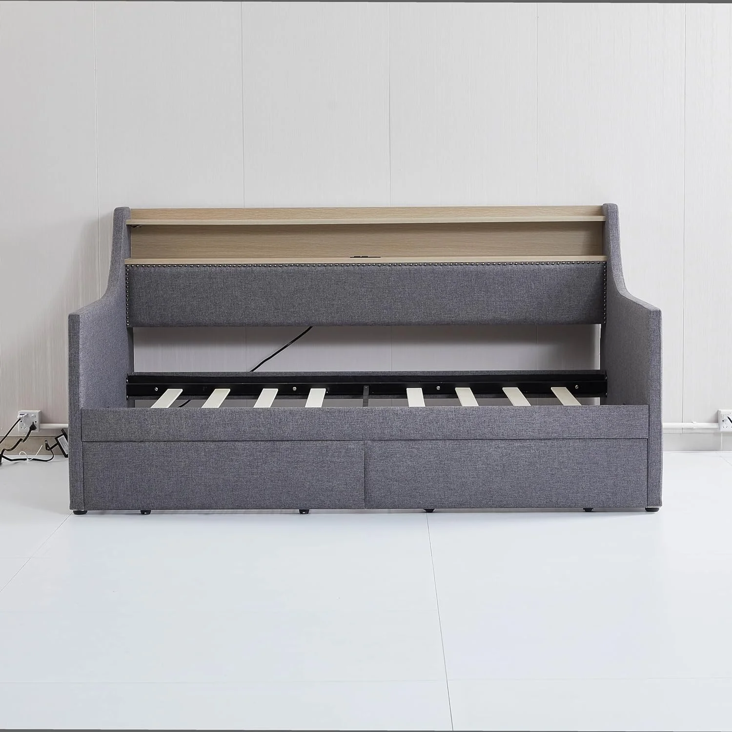 Daybed With Storage Drawers Upholstered Sofa Bed Frame Velvet Gray Day Beds For Bedroom Living Room Guest Room