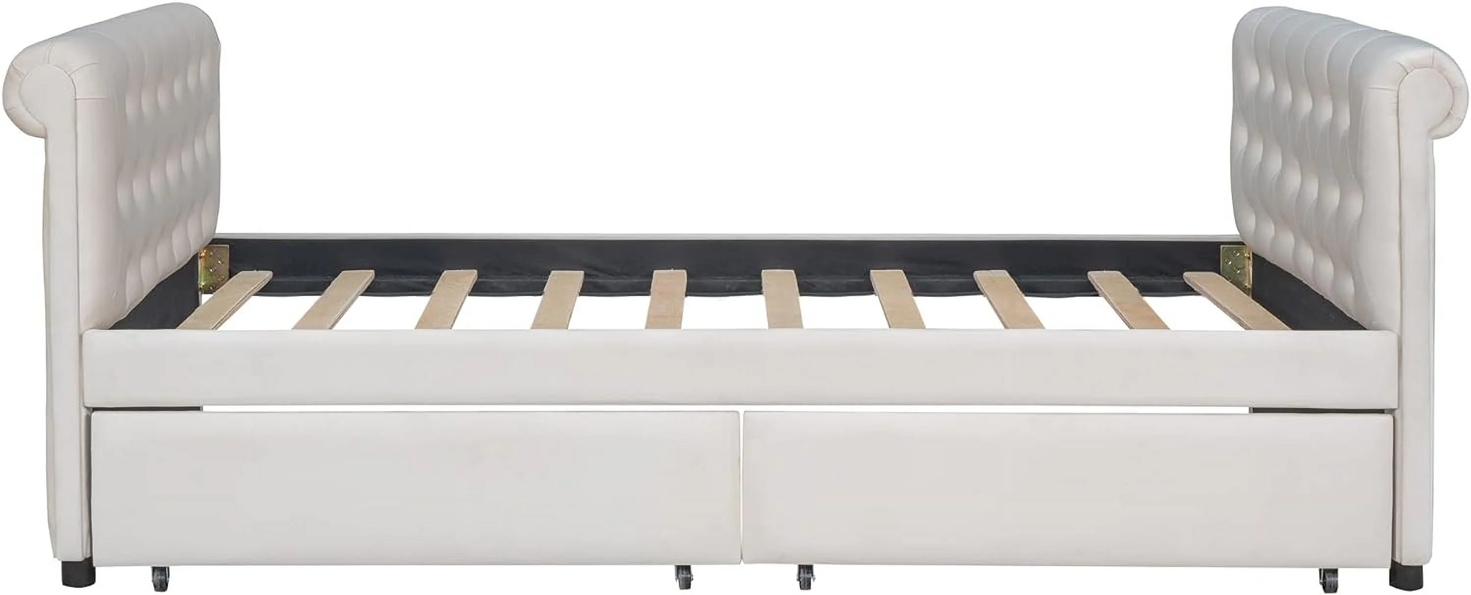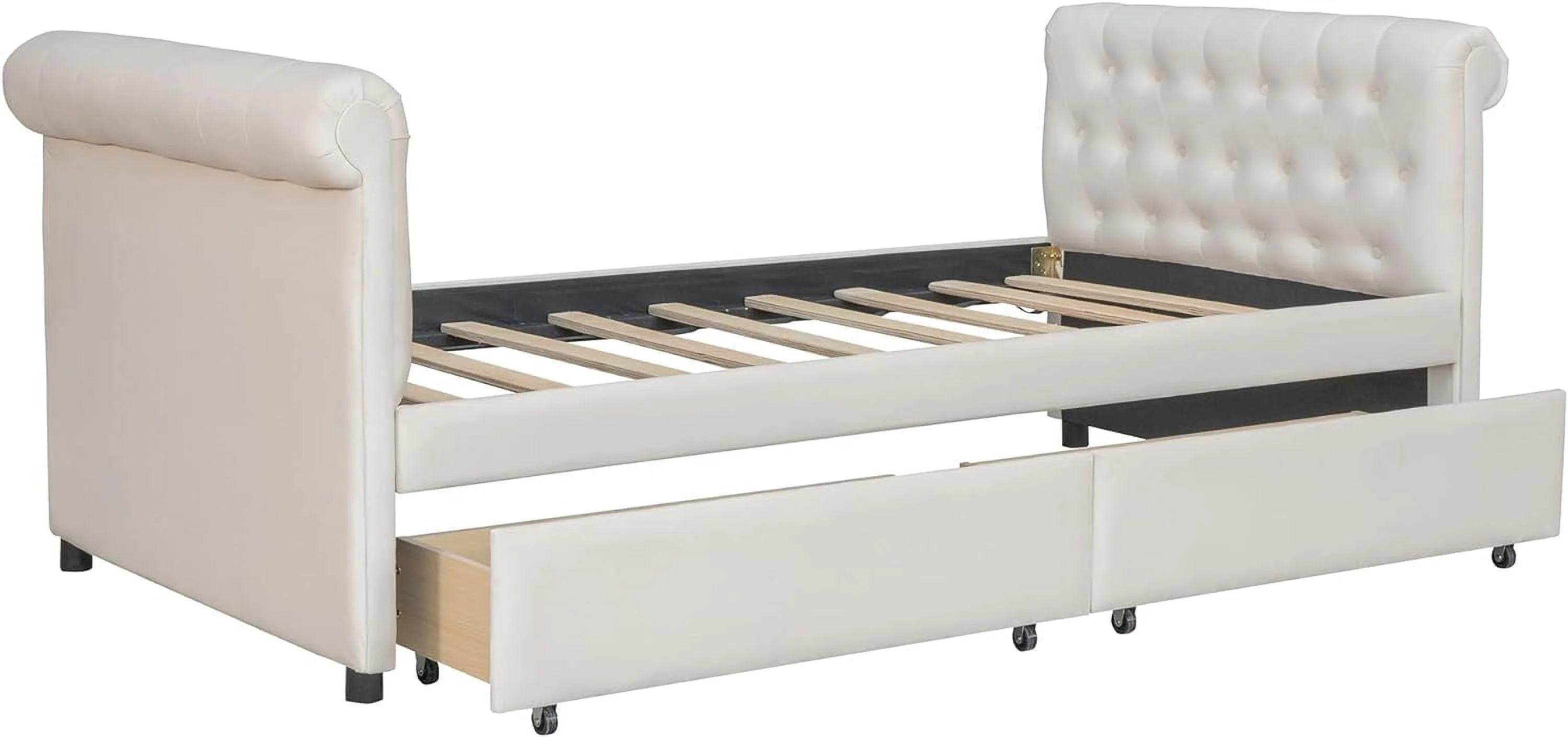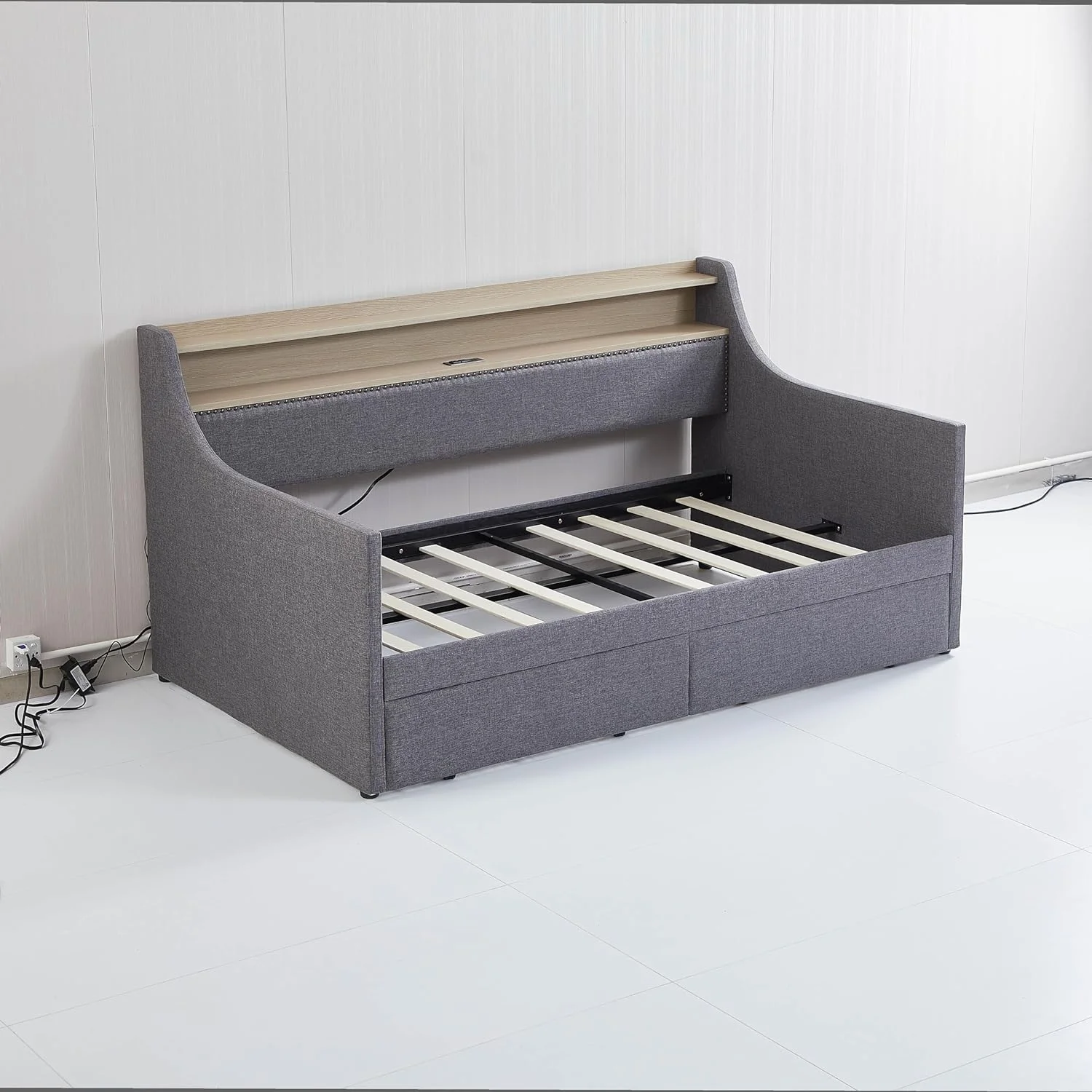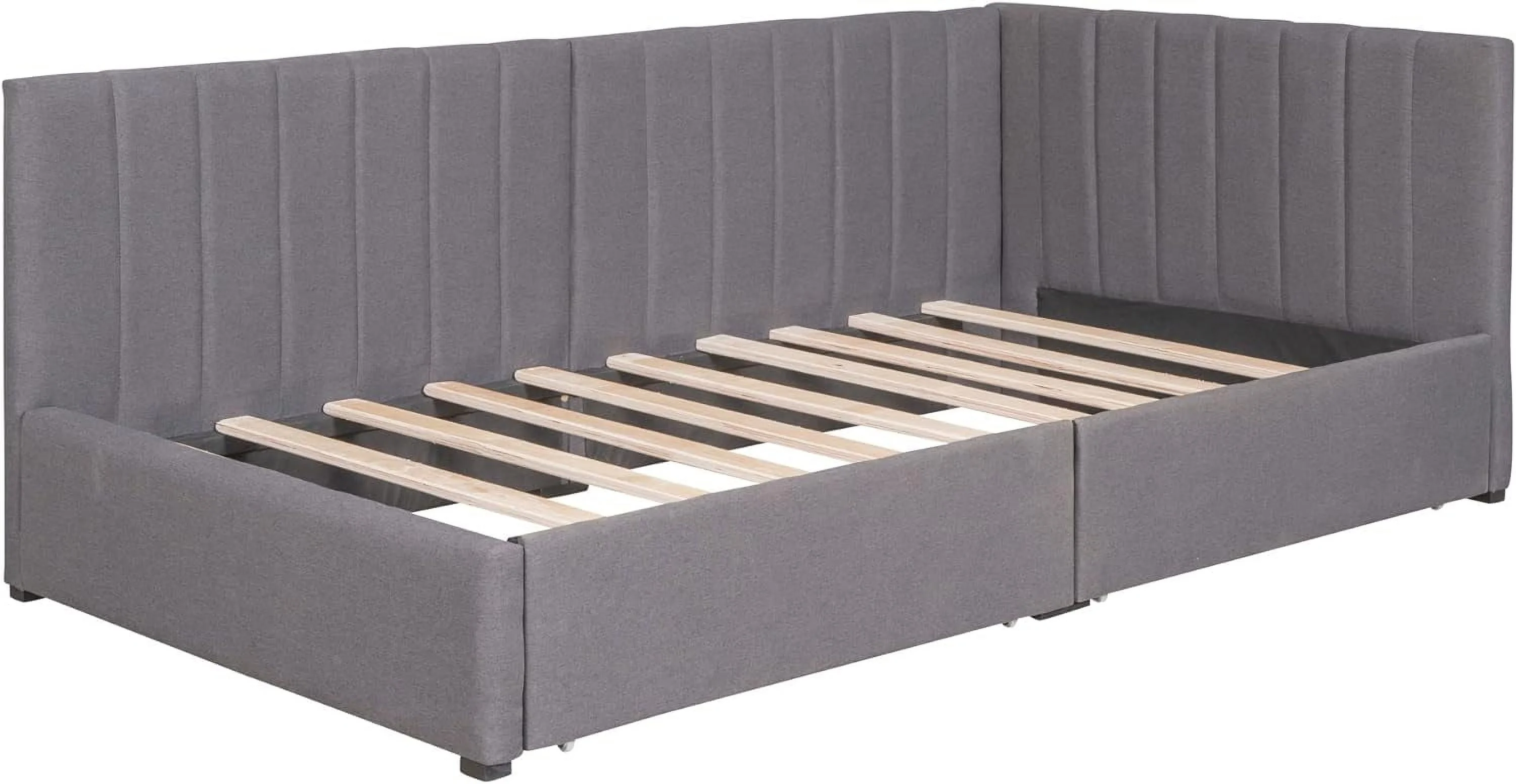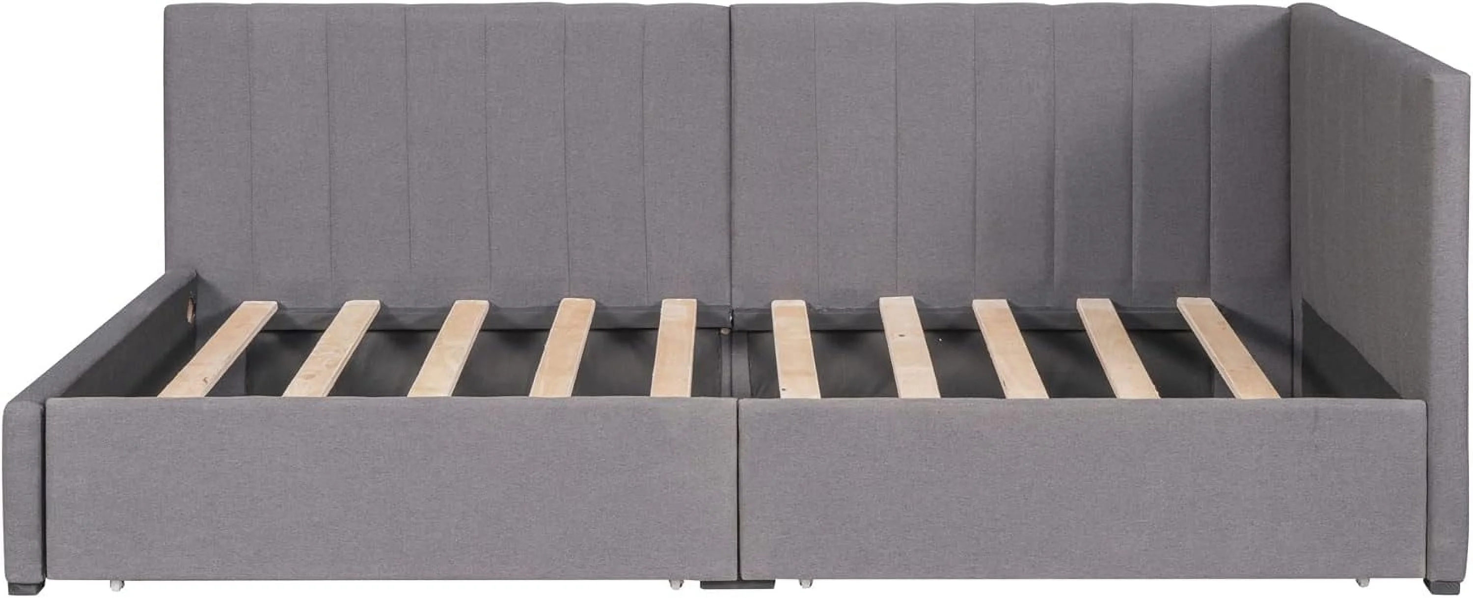 Daybed With Storage Drawers Upholstered Sofa Bed Frame Velvet Gray Day Beds For Bedroom Living Room Guest Room