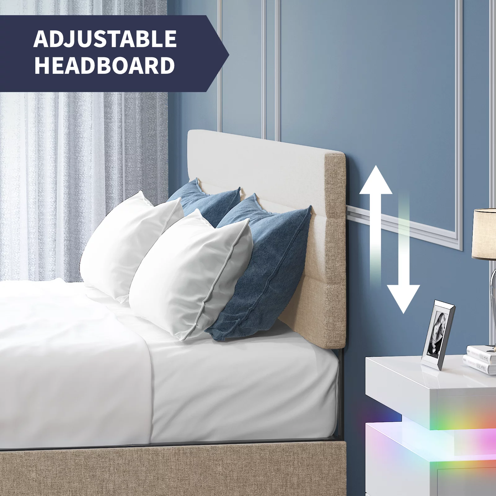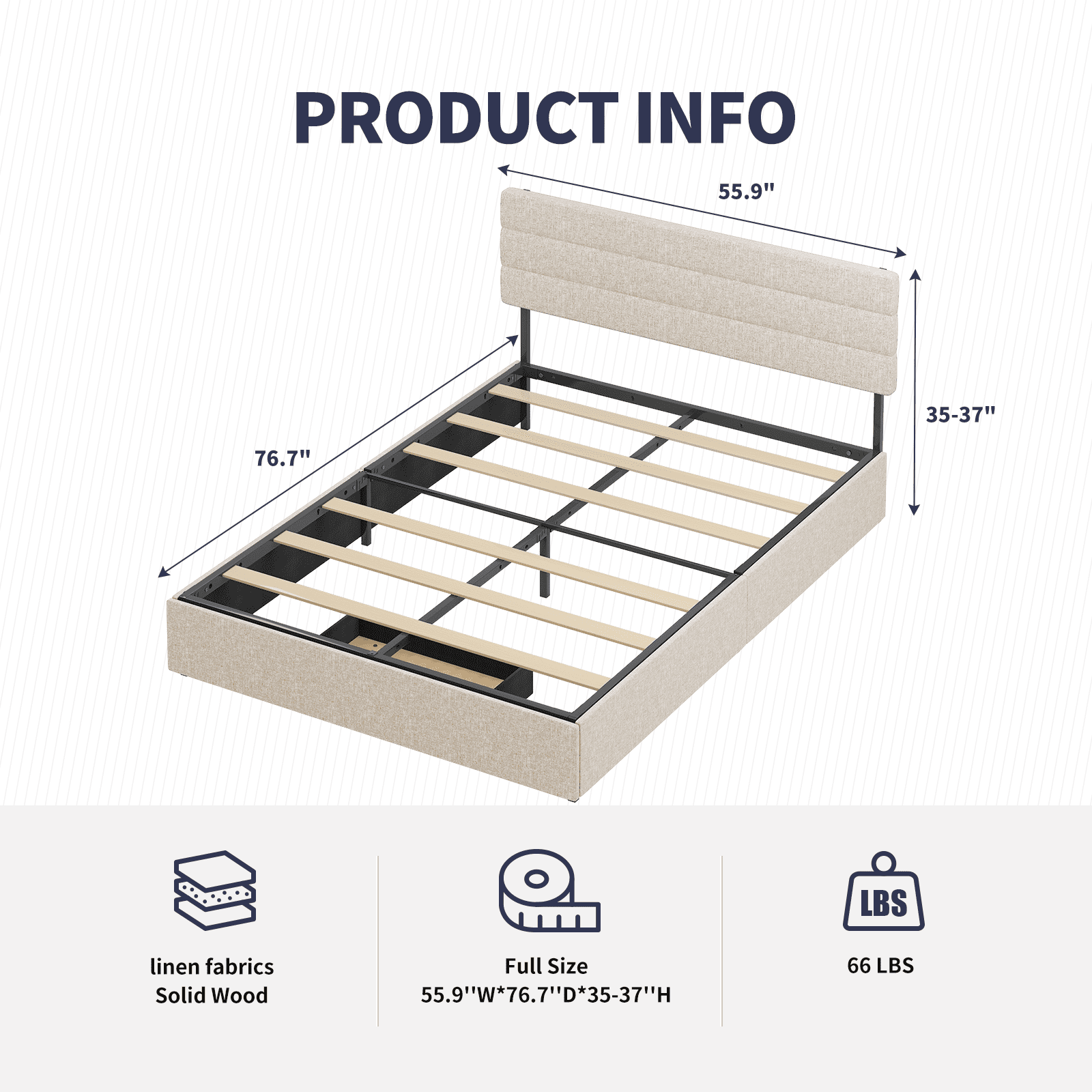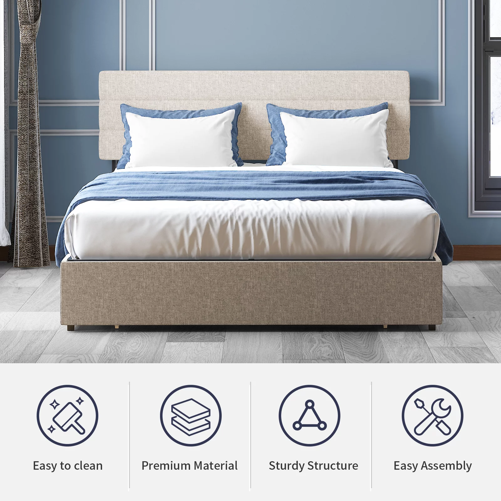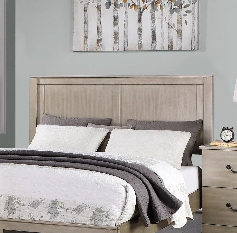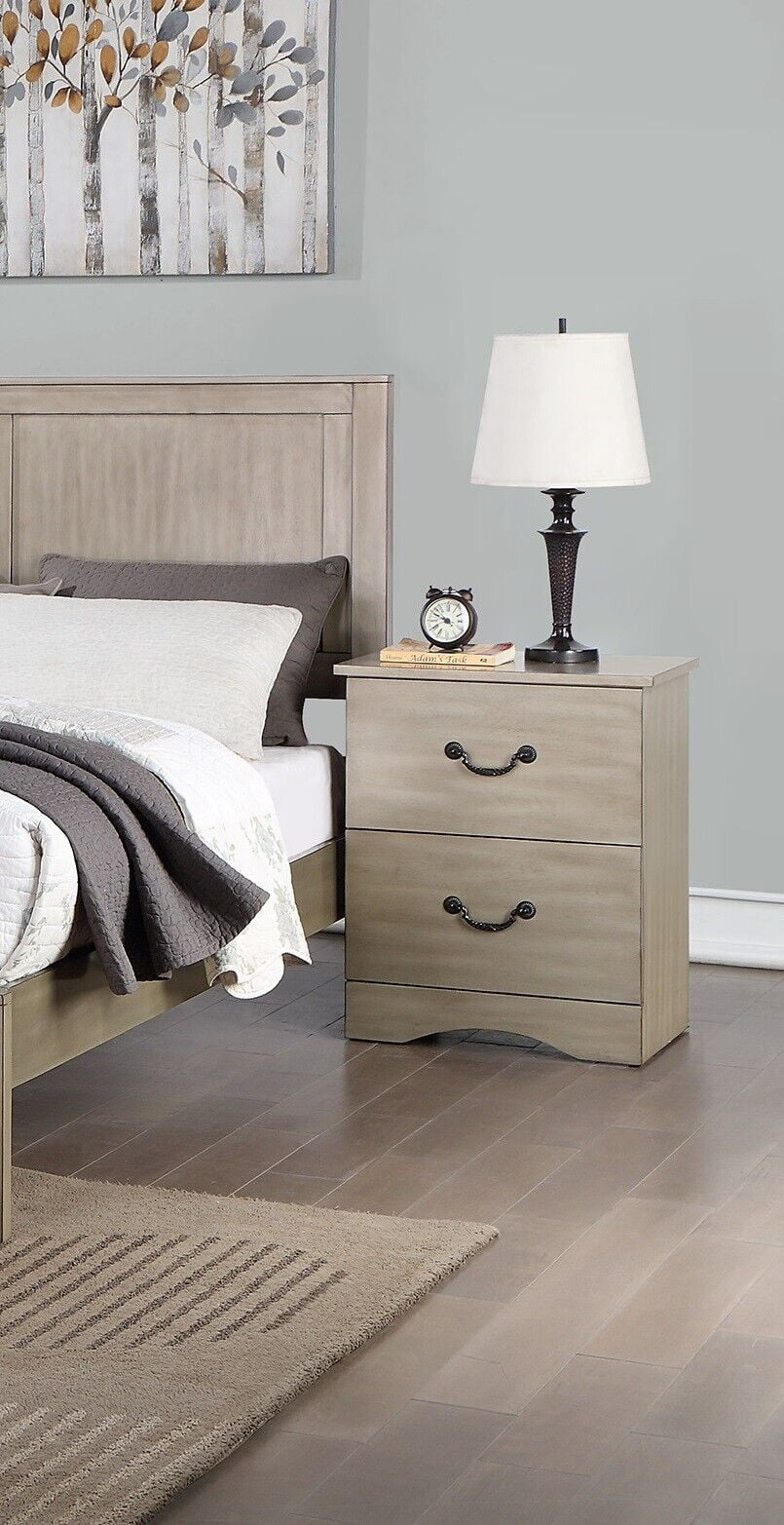 East West Furniture 2 Piece Fannin Platform Full Size Bedroom Set - Mist Beige, Black & Wire Brushed Butter Cream