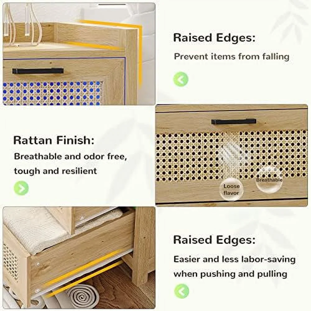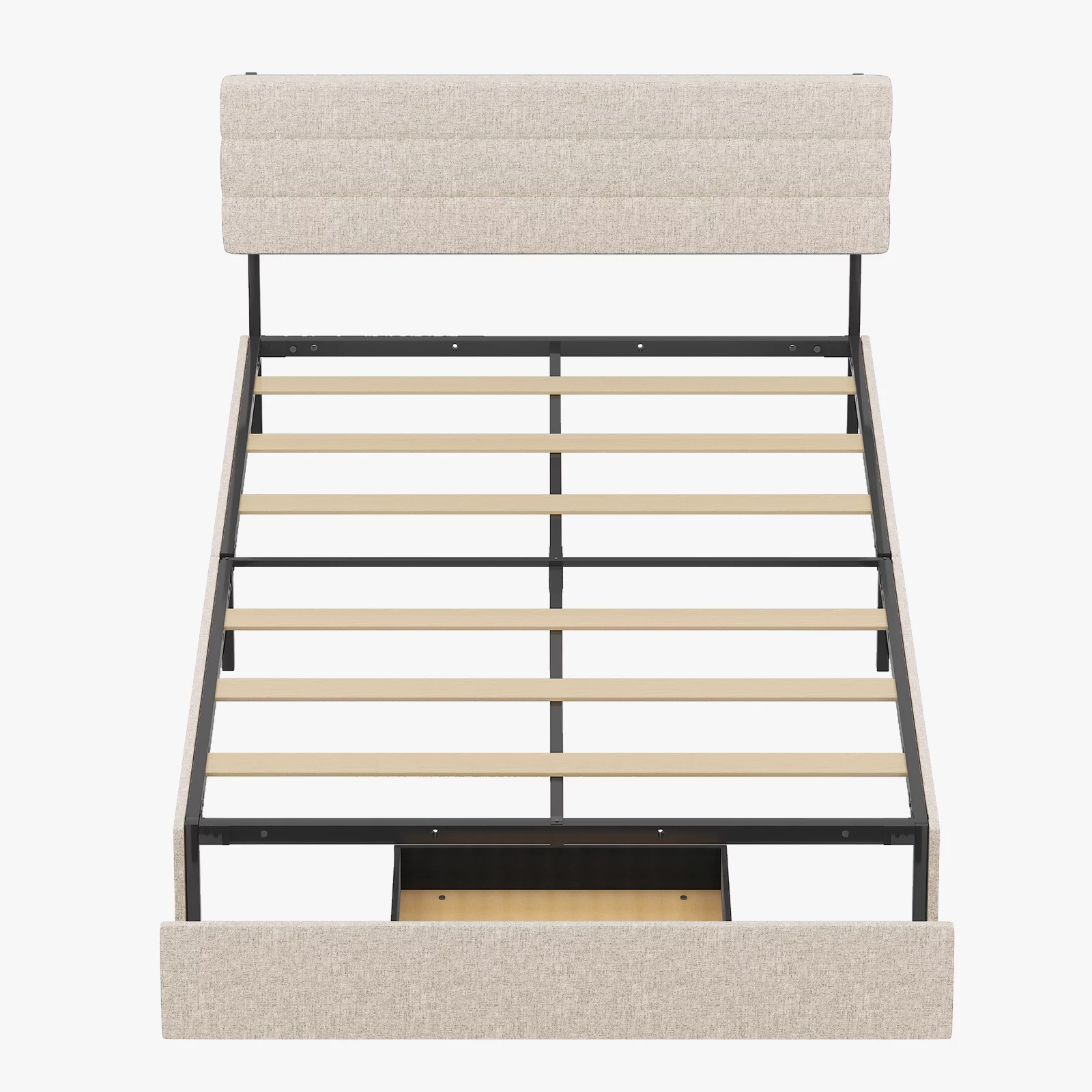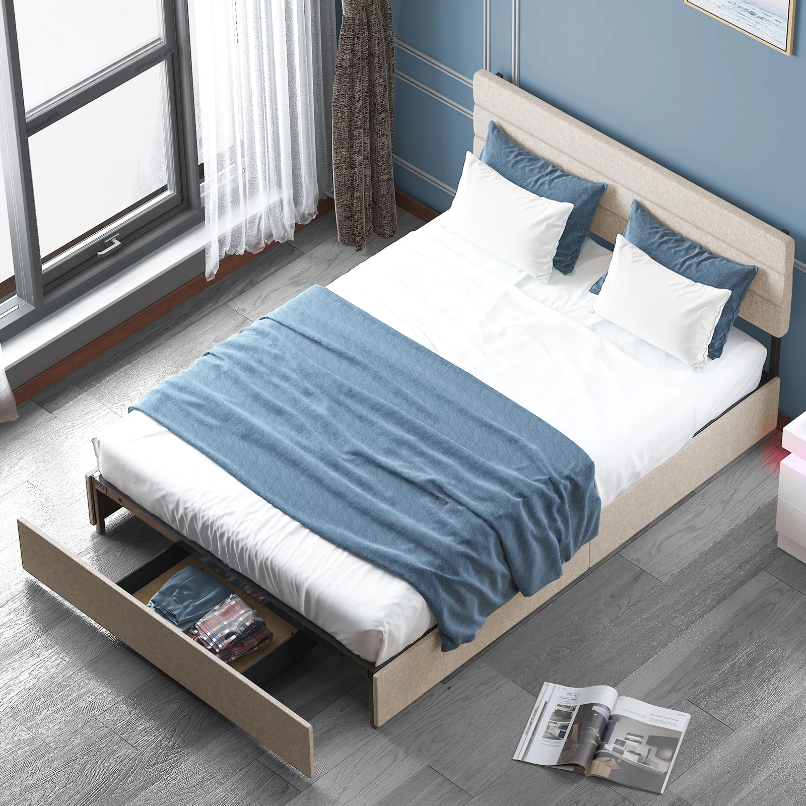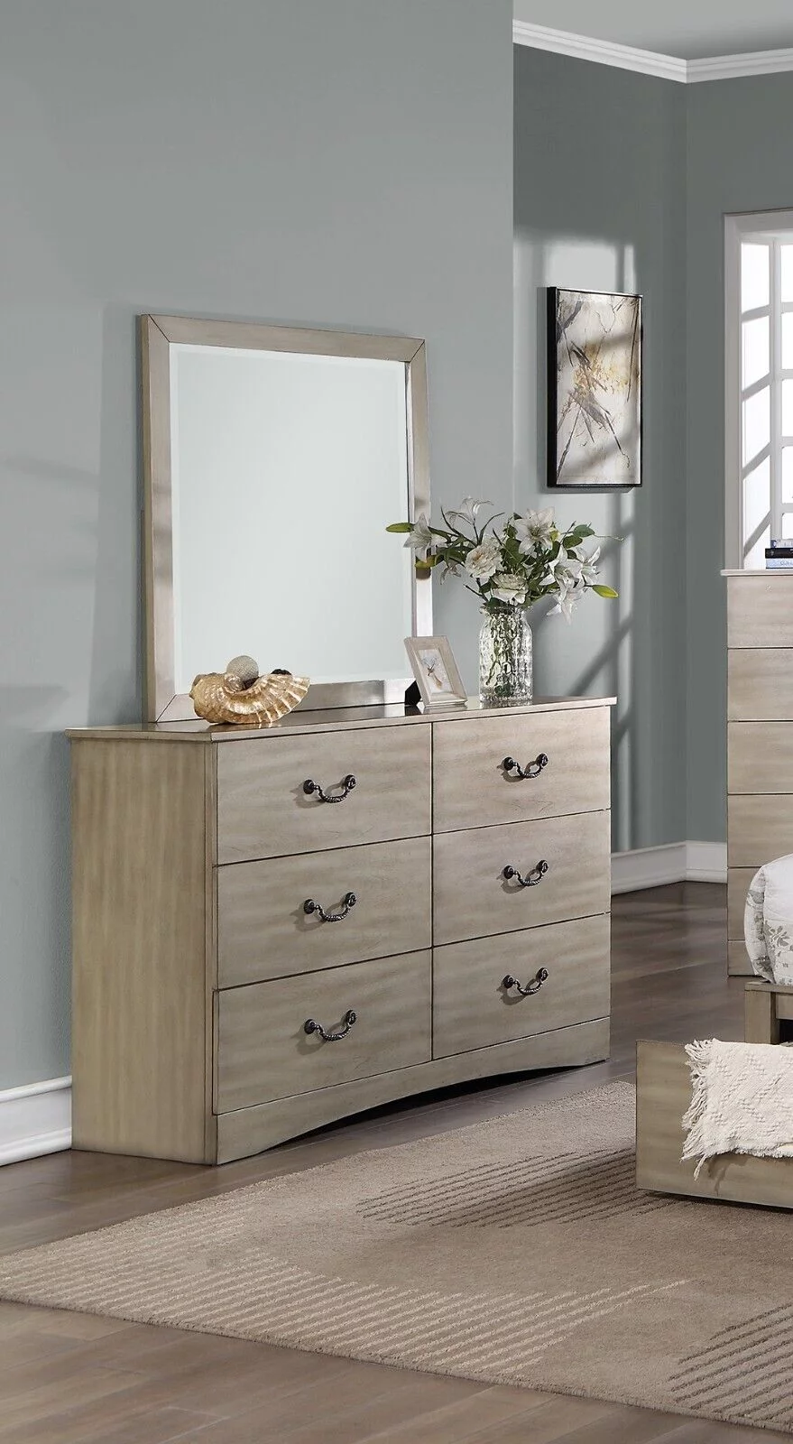 Modern Gorgeous 4pc Eastern King Size Bed w Underbed Drawer Dresser Mirror Nightstand Bedroom Furniture Light Tan Hue Finish