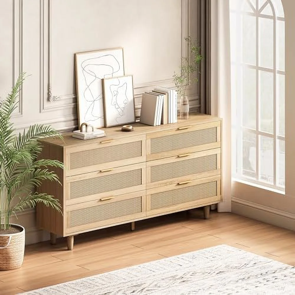 GIKPAL 6 Drawer Double Dresser Wezz, Wood Dressers for Bedroom, White