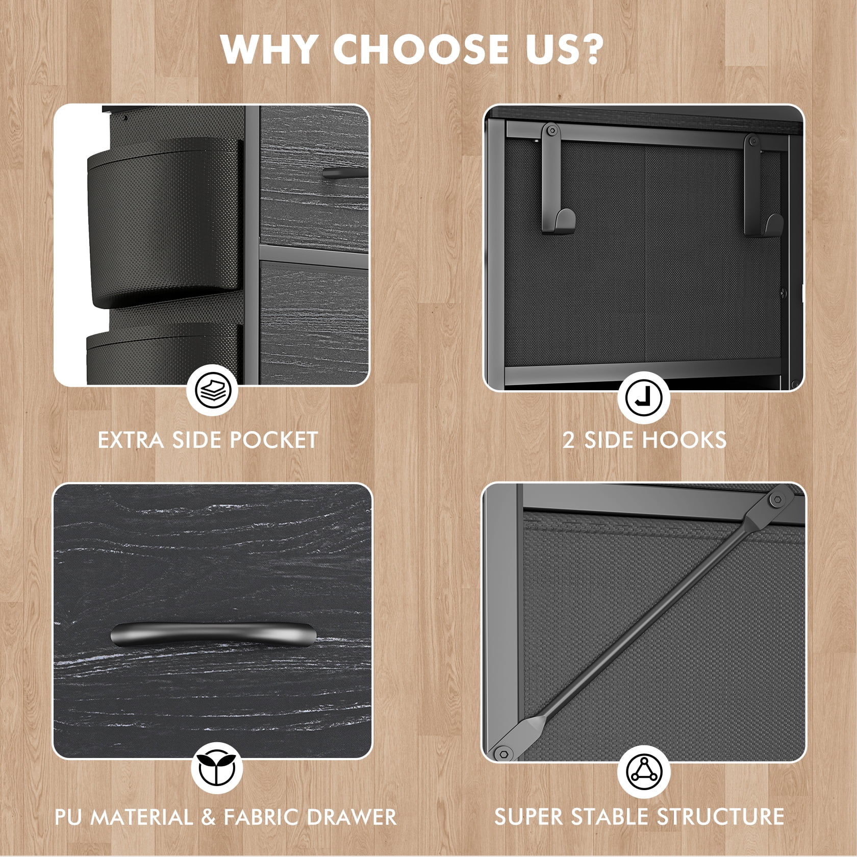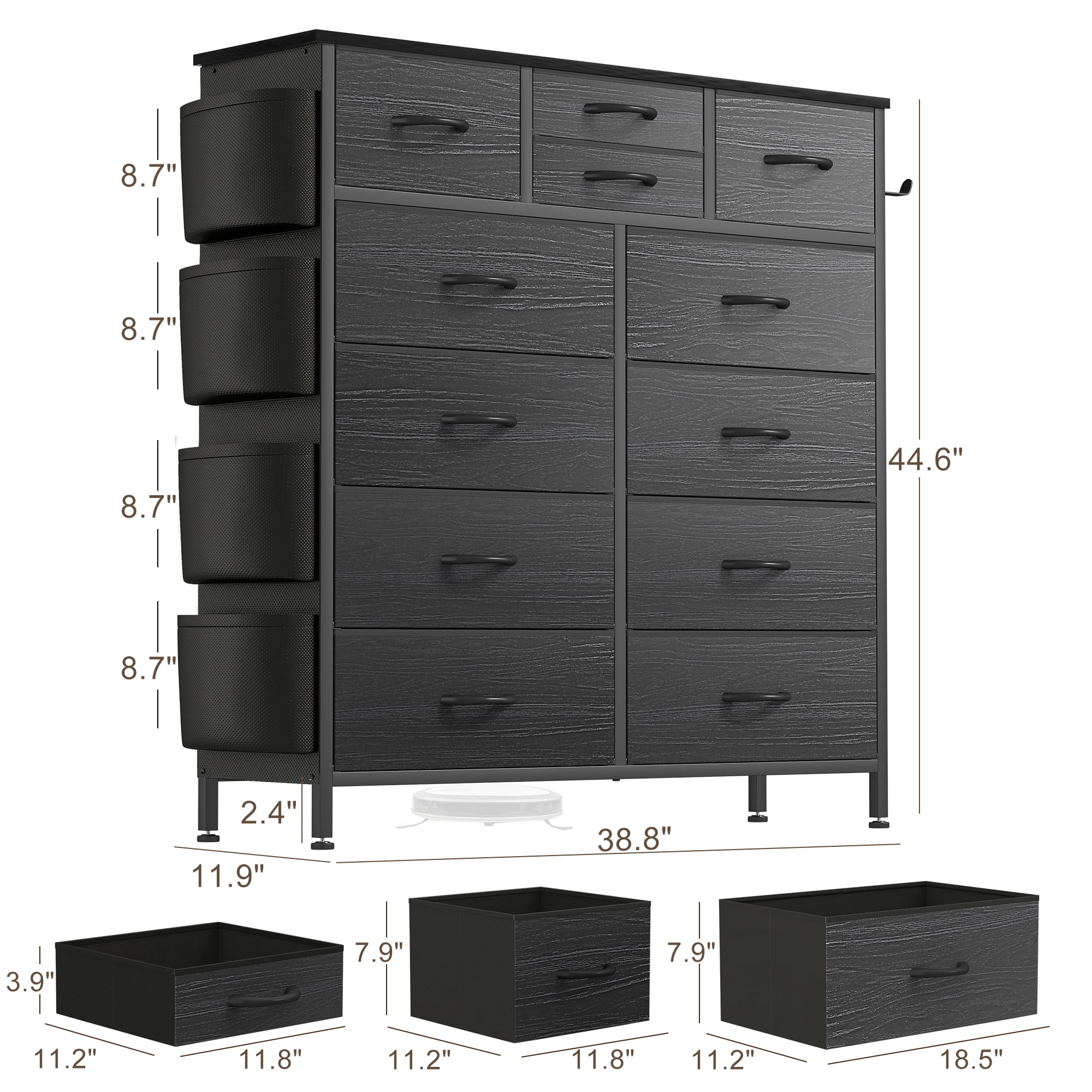 GIKPAL Black Dressers for Bedroom with 12 Drawer Tall Dresser Chest of Drawers Fabric Storage Dressers for Living Room