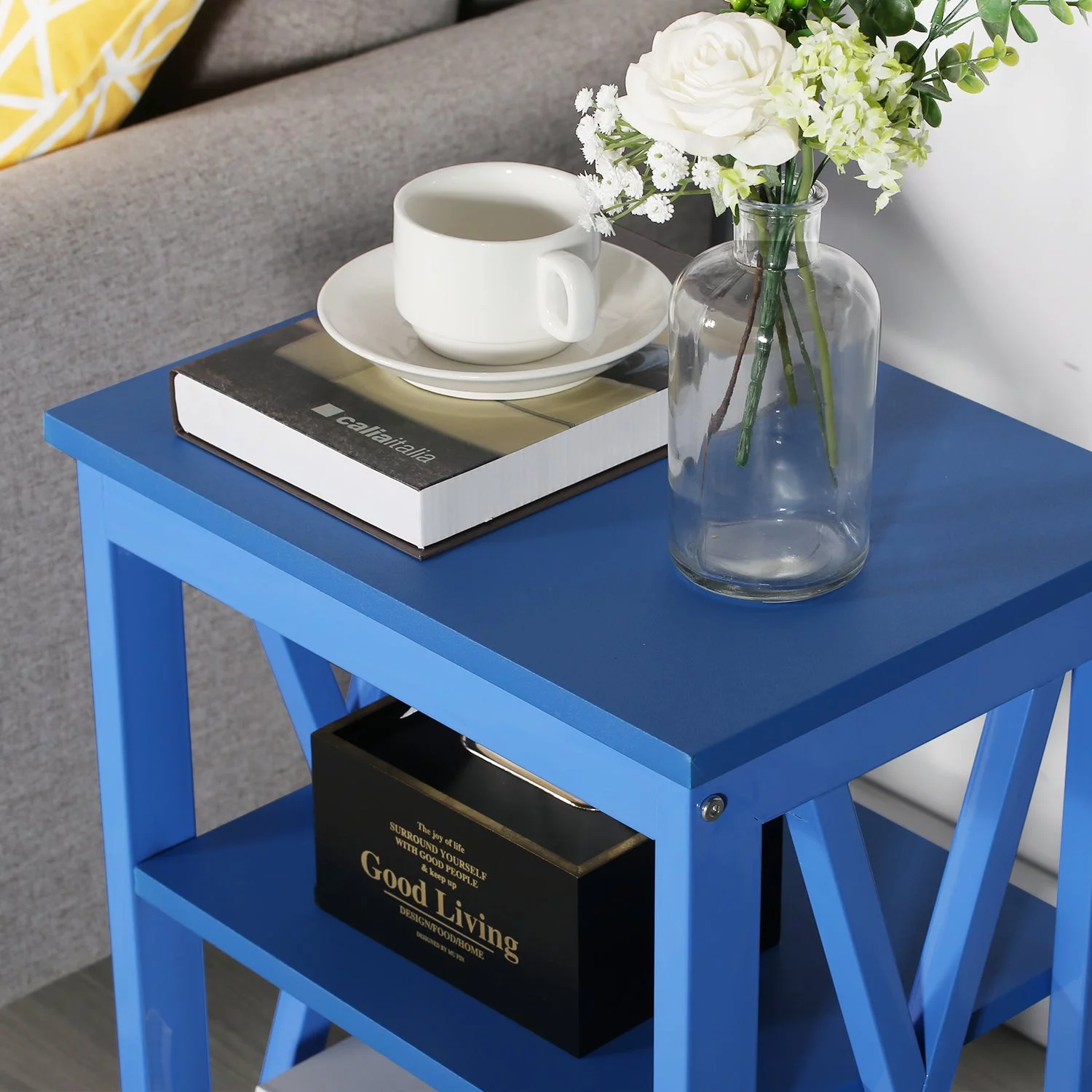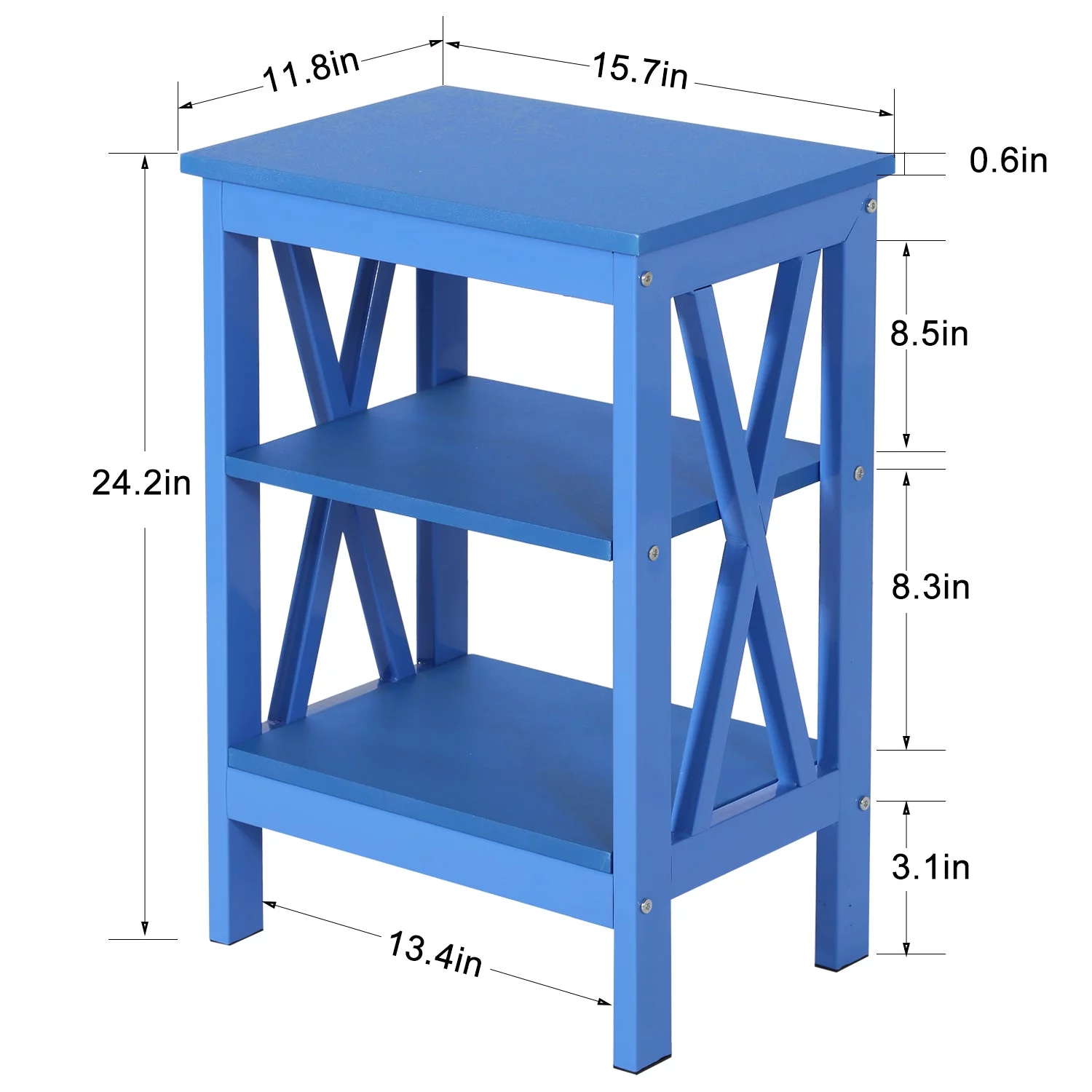 VECELO 3-Piece Bedroom Set with 1 Metal Bed Frame and 2 Blue Nightstand, Full Size