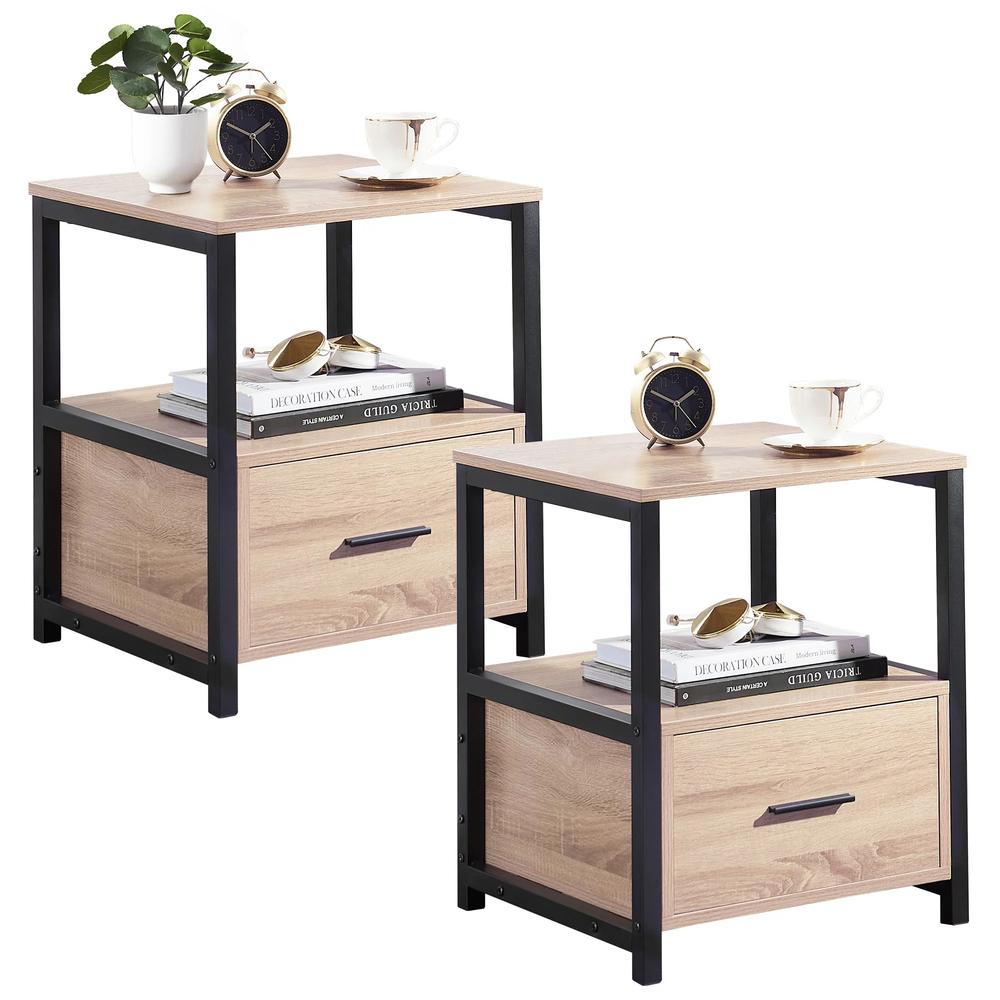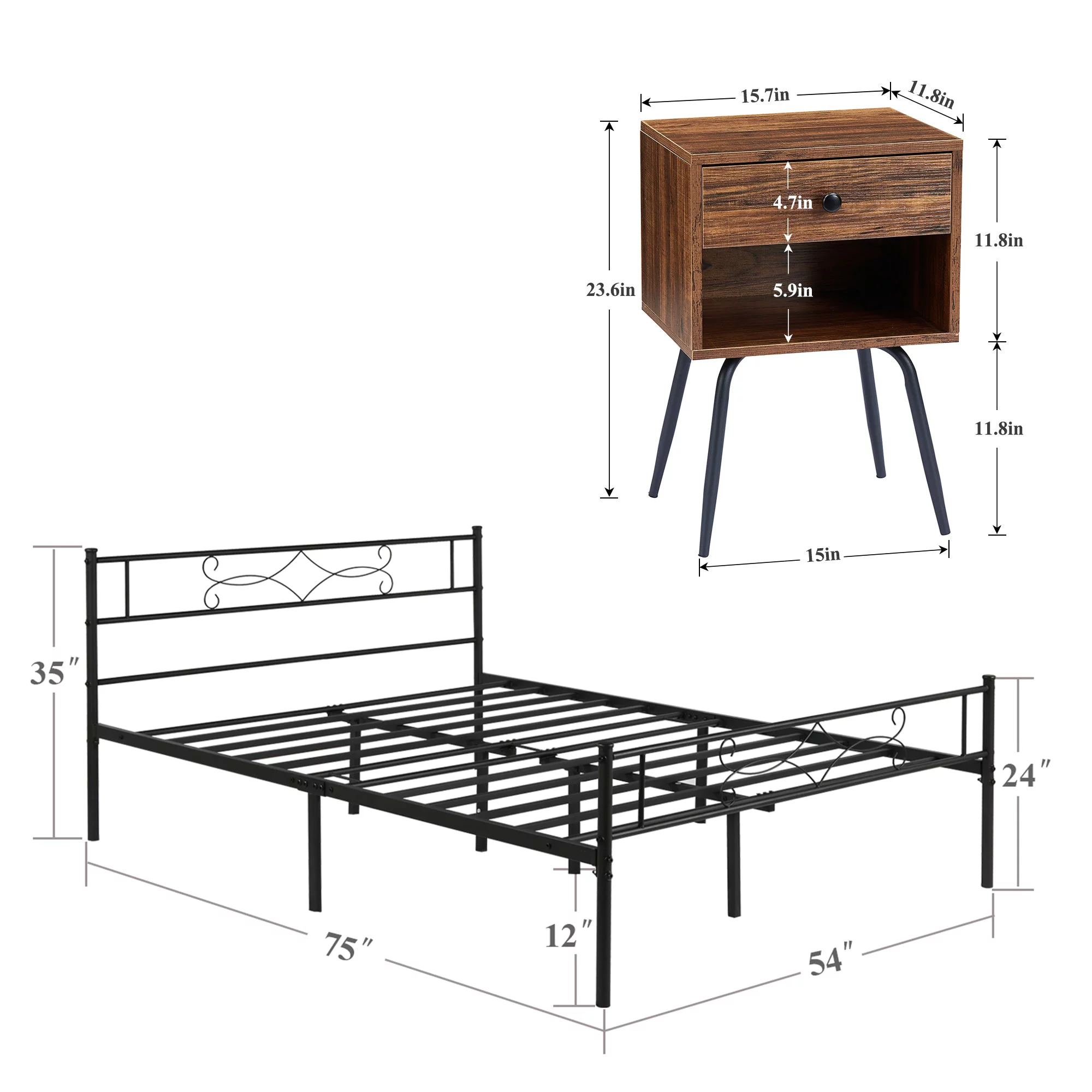 VECELO 3-piece Bedroom Set, Metal Bed Frame and Nightstands, Full Size