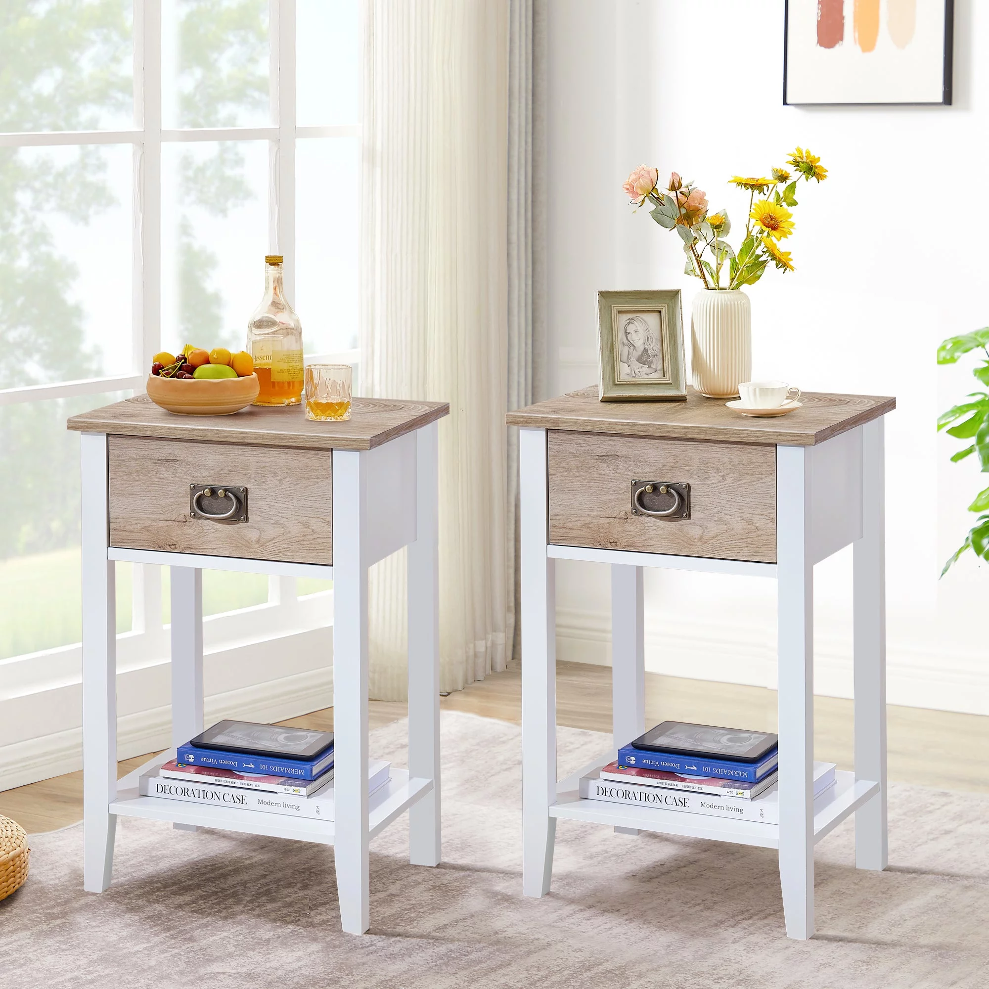VECELO Full Size Bedroom Set, Platform Bed Frame and 2 Nightstands (Set of 3)