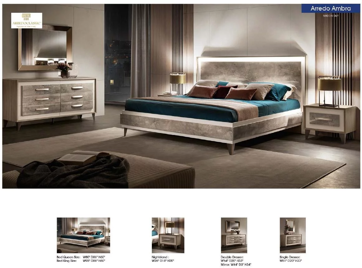 Shiny Gray Marble-finish Top King Bedroom Set 5 ARREDOAMBRA ESF Made in Italy