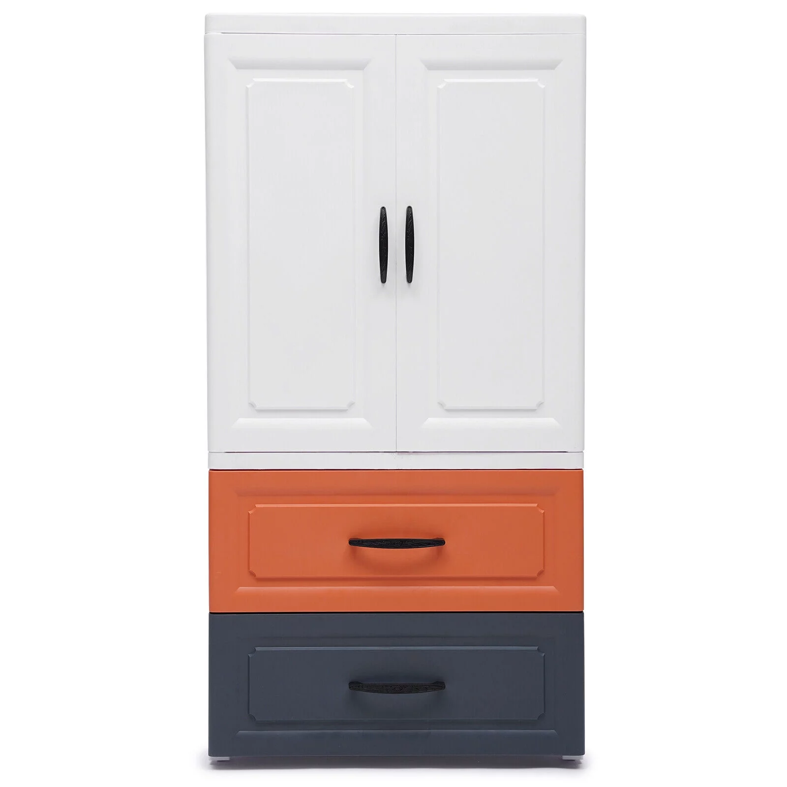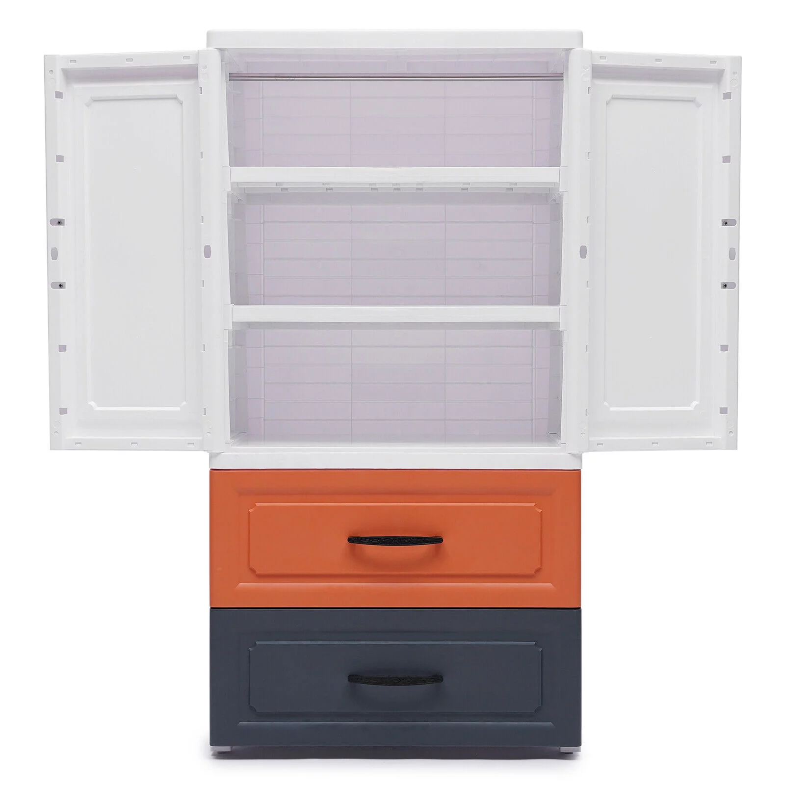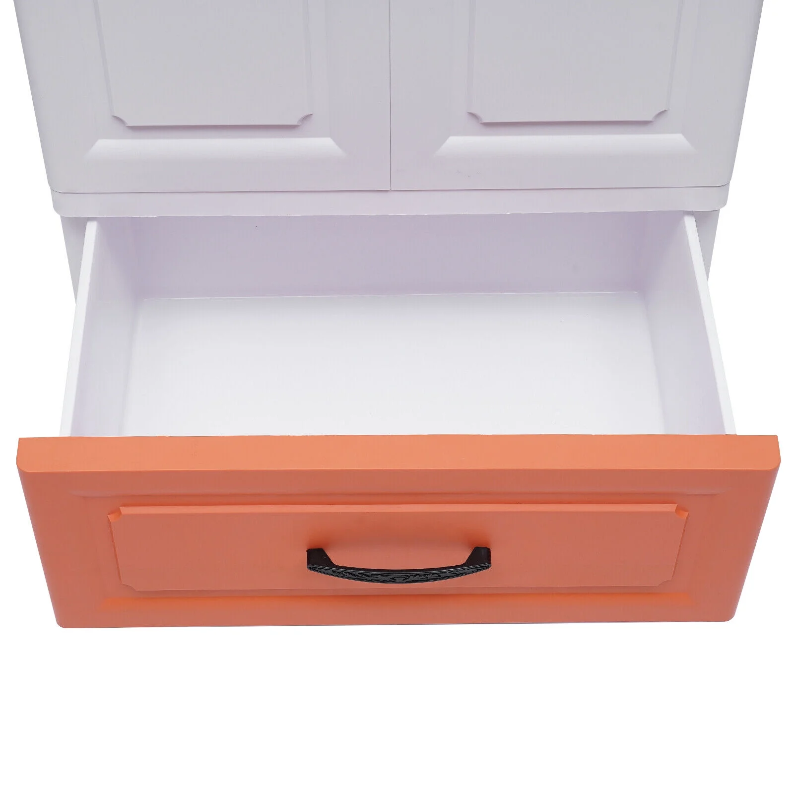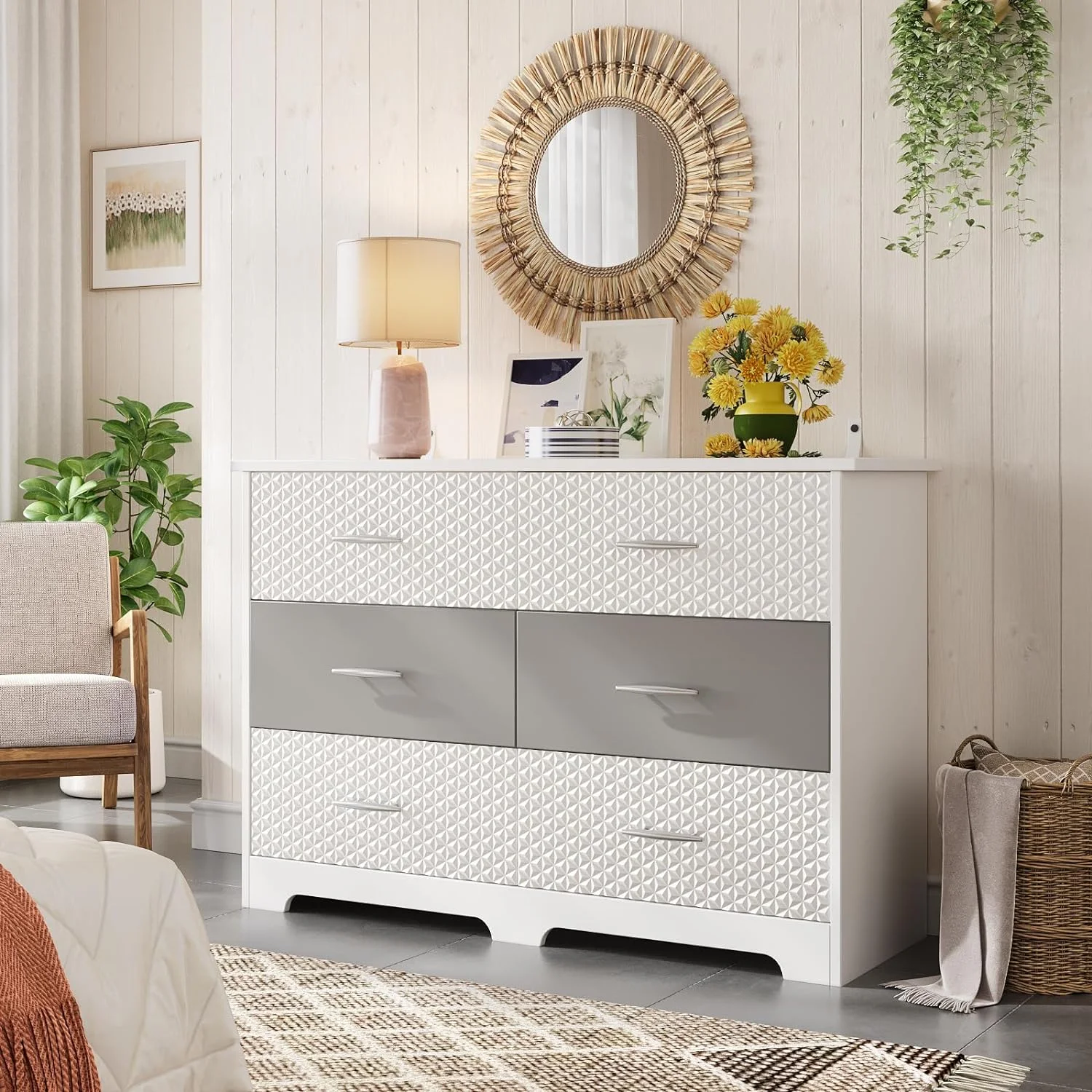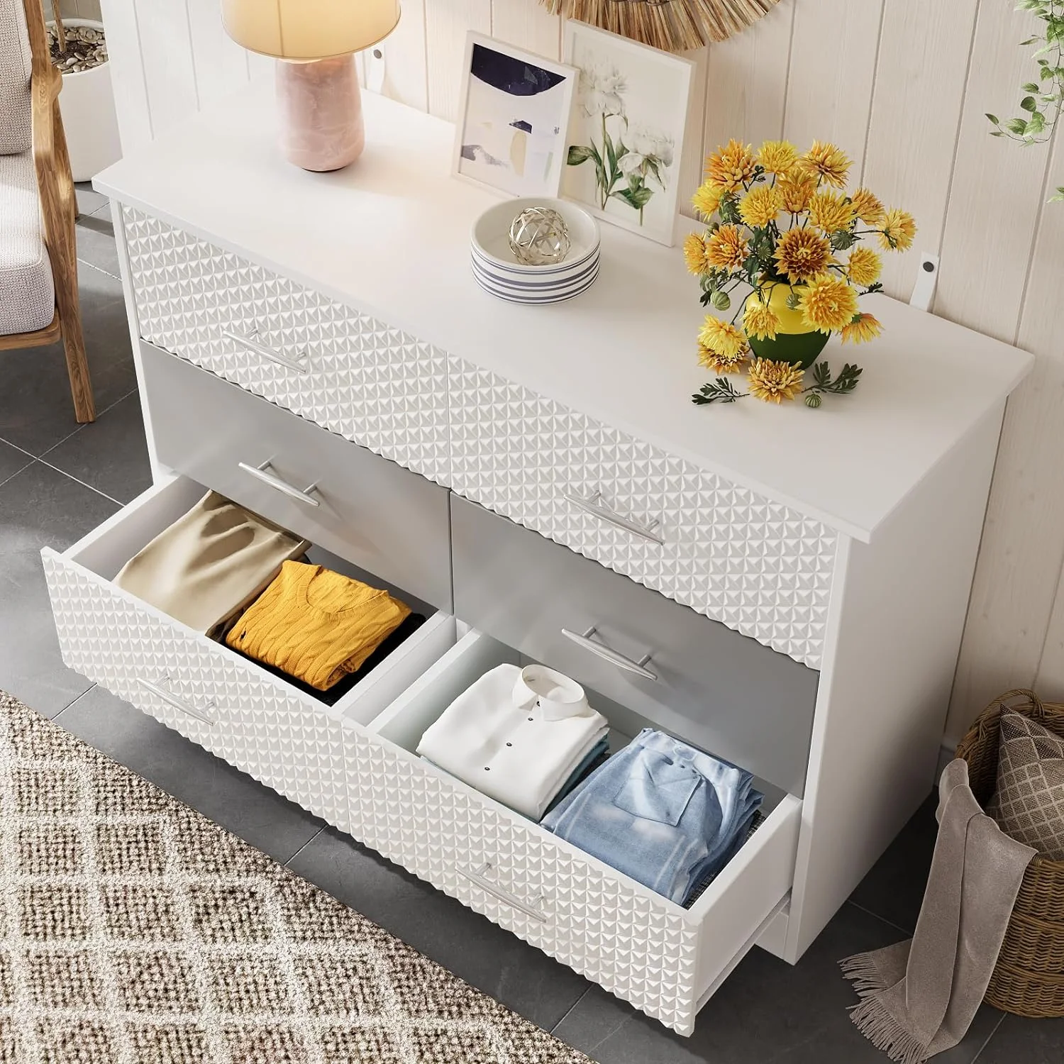 2 Pieces Bedroom Sets White Full Size Wooden House Bed with Desk and 6-Drawer Chest