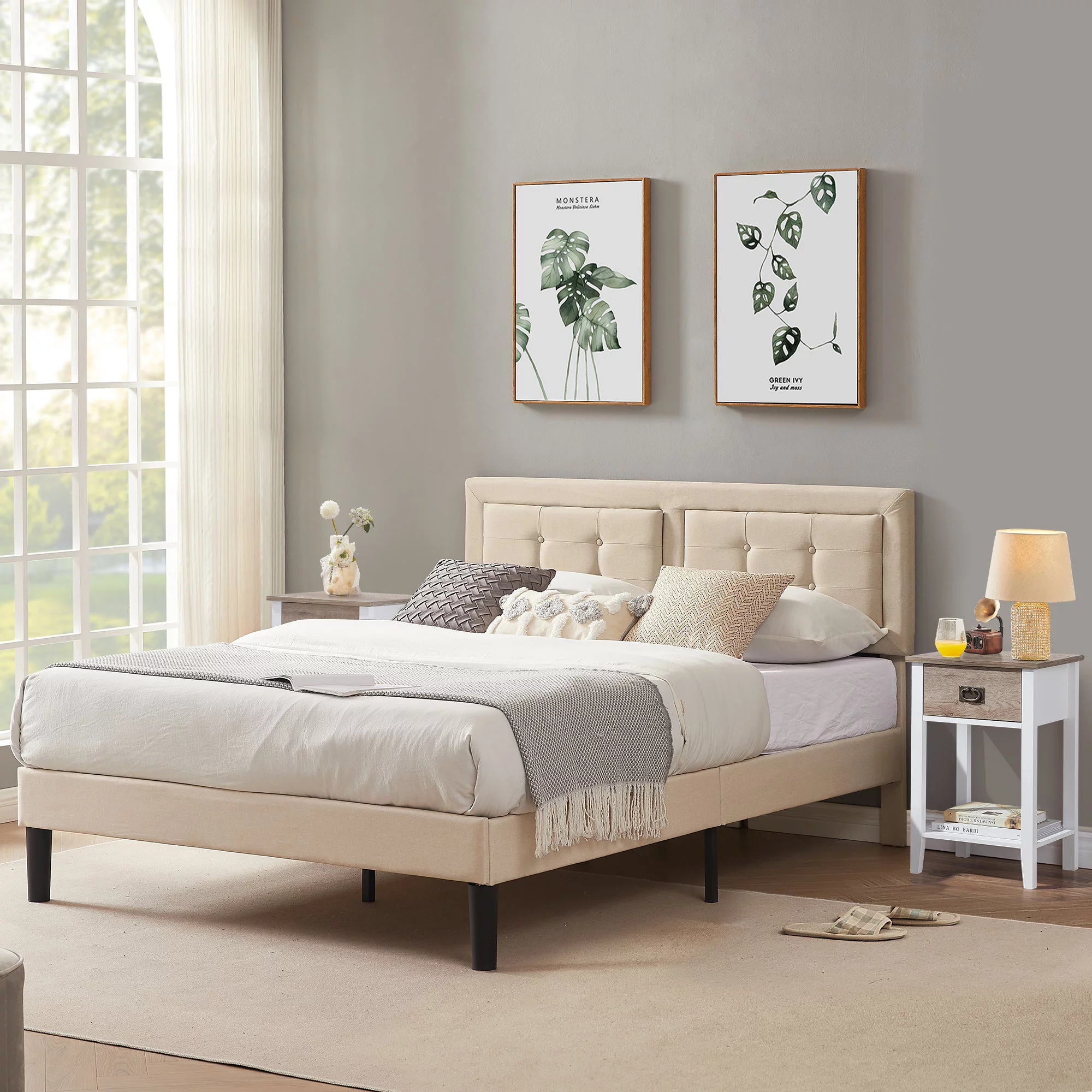 VECELO 3-Piece Bedroom Set Include Upholstered Bed Frame and 2 Nightstands, Full Size, Beige