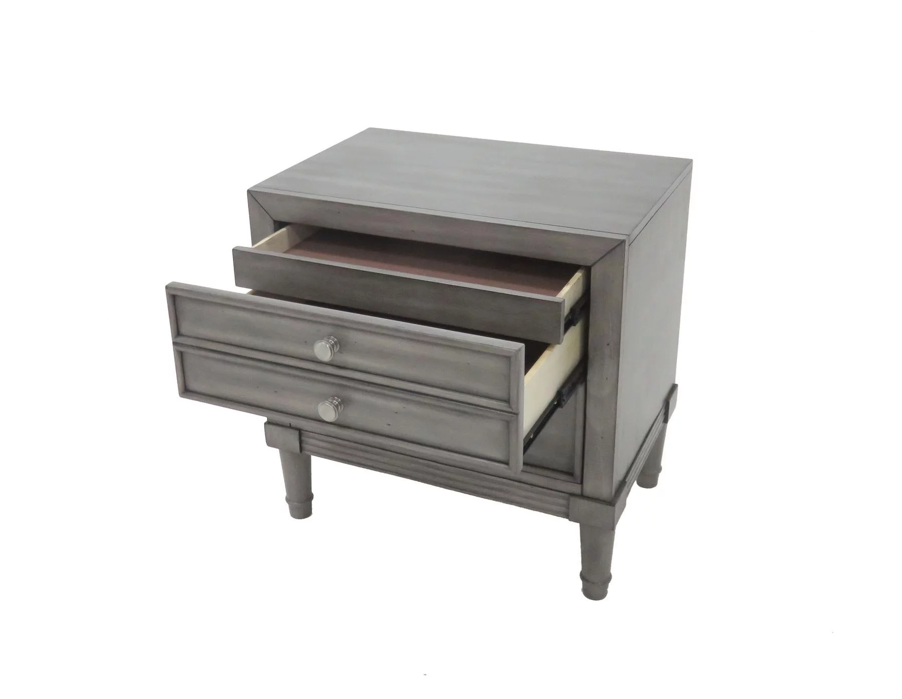 Classic Vintage Style 3Pc King Size Panel Bed Nightstands Set Antique Gray Finish Bedroom Furniture Solid Wood