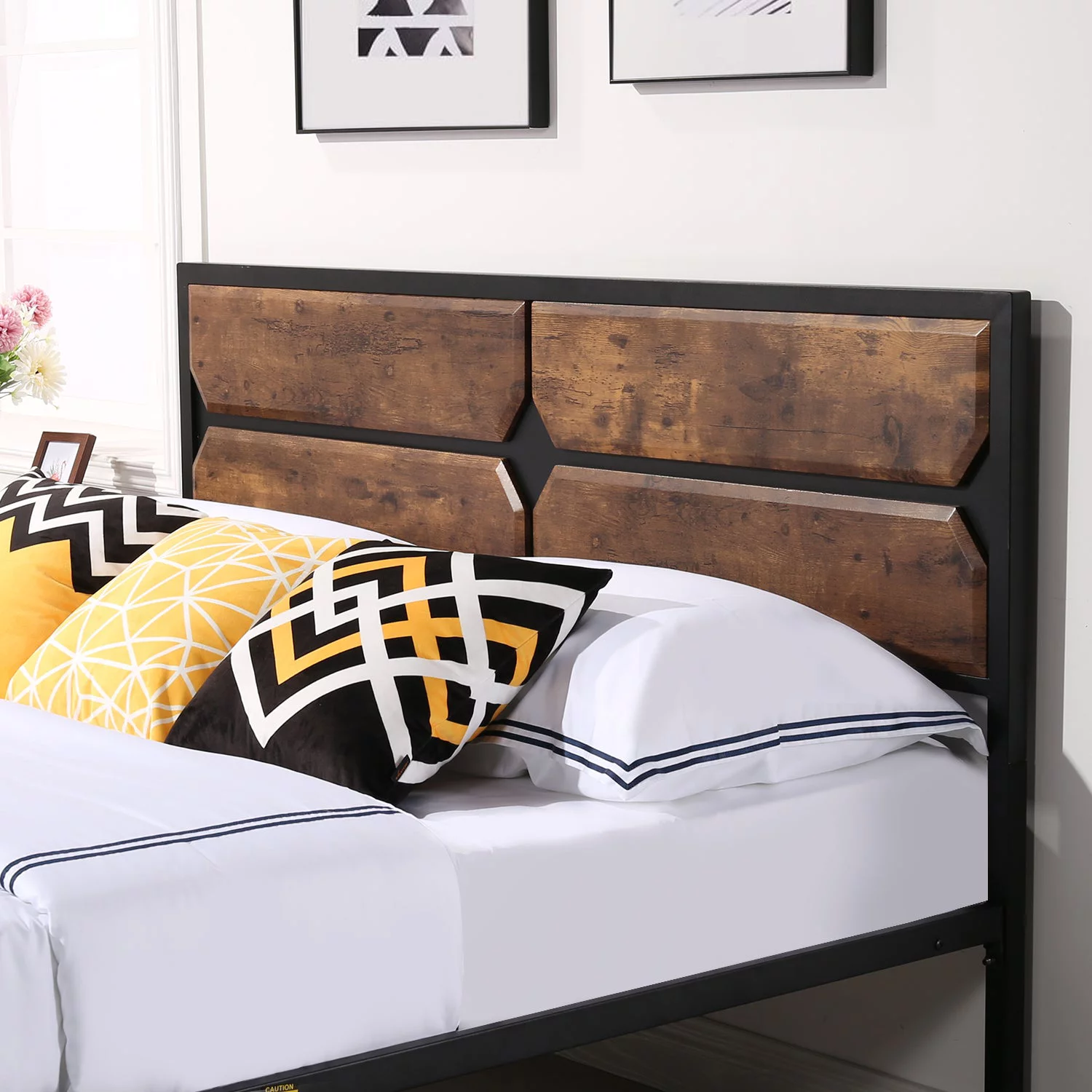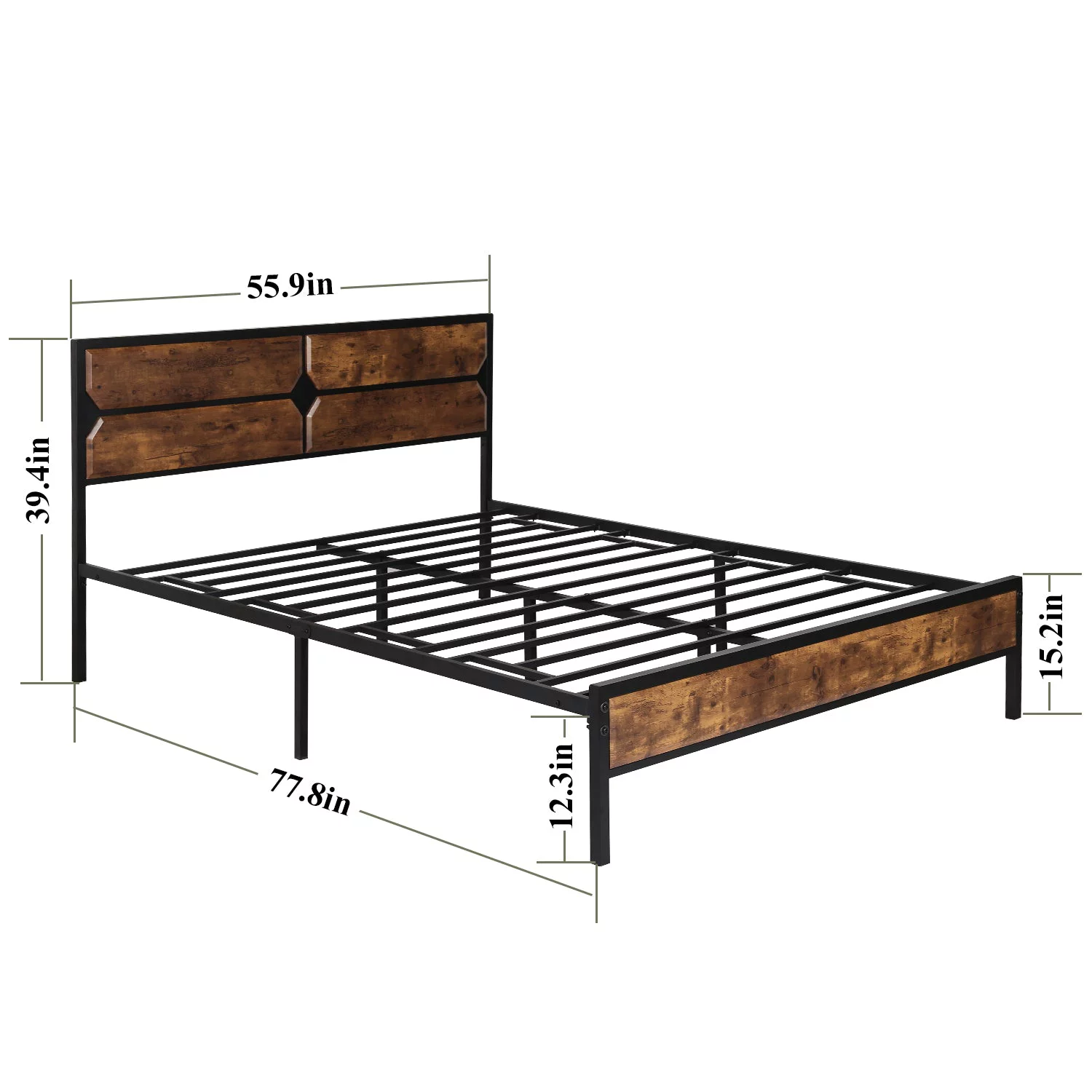 VECELO 3-Piece Bedroom Set with Full Metal Bed Frame and 2 Red-brown Nightstands (Set of 3)